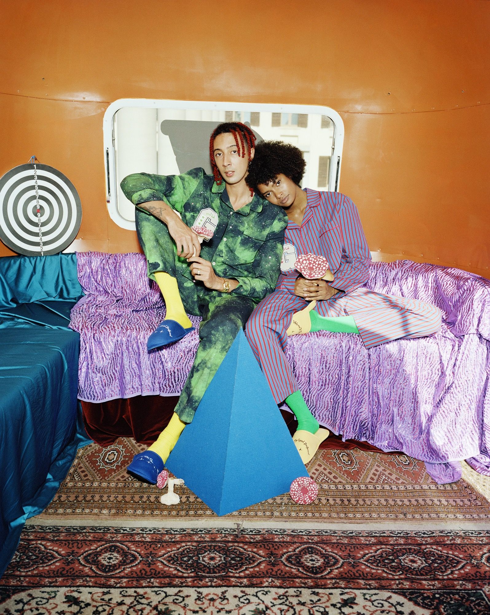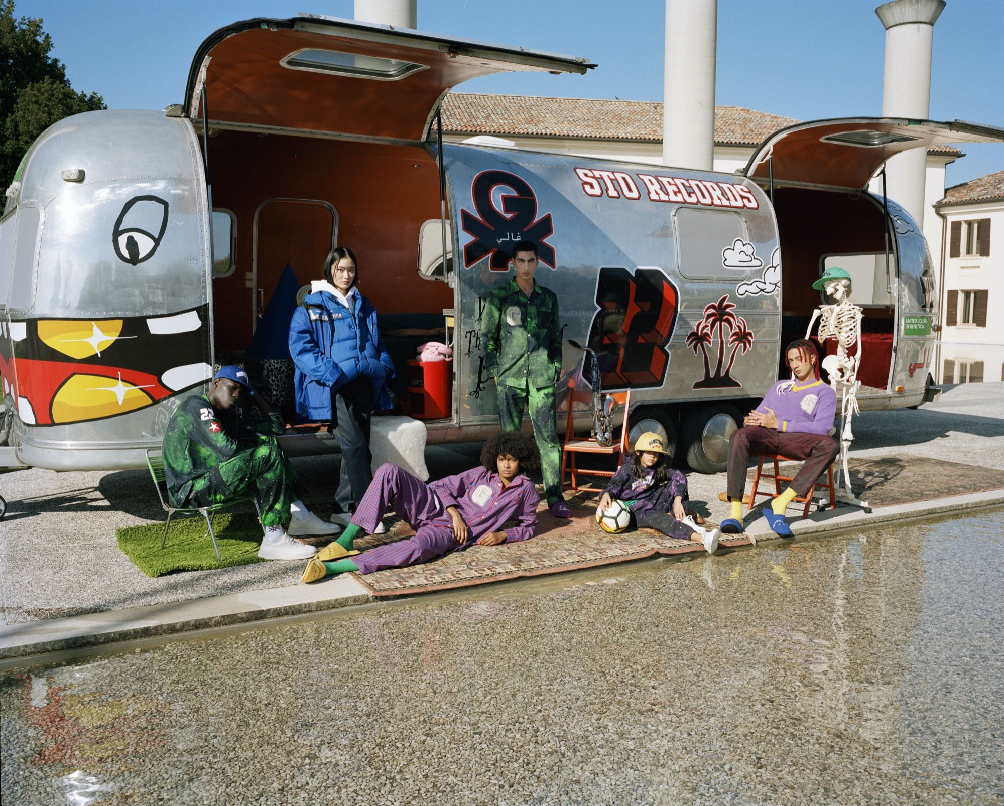 Trovano spazio nella collezione una giacca due pezzi che unisce un piumino a un giaccone impermeabile accompagnata da grafiche che riprendono il mondo del team F1 di Benetton. Nel jogger viene evocato invece il concetto di viaggio, mentre il tema della galassia è presente in item come il pigiama, la maglia di nylon e la hoodie. Non mancano ovviamente i riferimenti all'estetica dei college americani, che dopo la varsity jacket in edizione limitata è presente in un maglione con uno scollo a V e la G di Ghali, elemento presente anche su altri item: dalle calze ai cappellini, fino alle pantofole. Completano la collezione capi kid e neonato con stampe colorate.