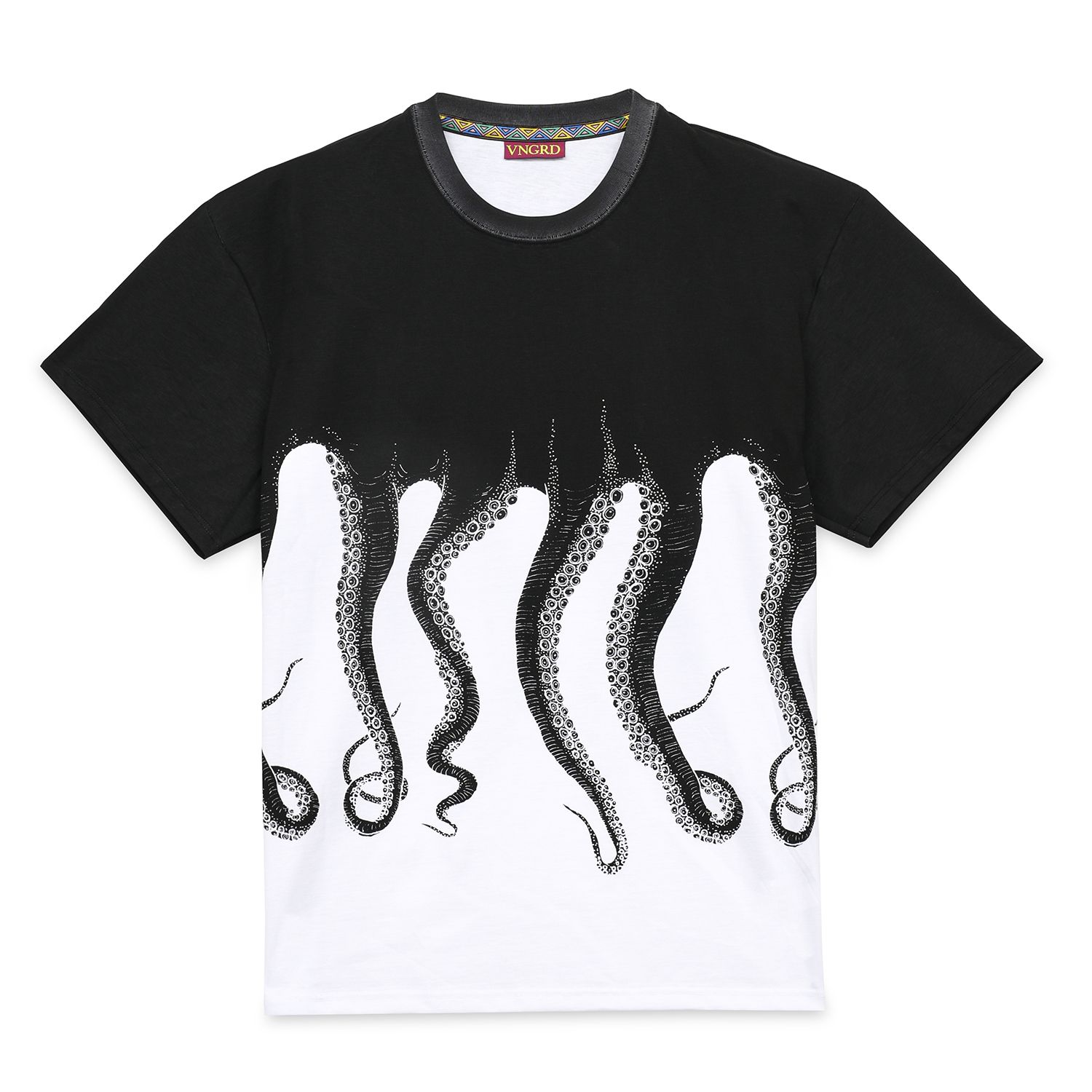 VNGRD è un marchio nato nel 2005 che ha segnato l’inizio di un nuovo capitolo per tutti gli appassionati di steetwear, nonché la naturale espressione creativa di un gruppo di designer e artisti che avevano vissuto per anni al cuore dell’underground milanese. Guidato dalla direzione creativa di Giorgio Di Salvo tramite un approccio al design naïve e il rifiuto di obbedire alle usanze commerciali di quegli anni, VNGRD ha velocemente acquisito uno status di culto, accumulando collaborazioni con brand come Stüssy, SUPER, FUCT e Slam Jam, ricevendo il riconoscimento - tra gli altri - di Kanye West e gettando i semi che avrebbero fatto nascere il brand Octopus. Il motivo con i tentacoli è infatti nato come una grafica di VNGRD nel 2006, diventato poi un marchio a sé nel 2012 con l'obiettivo di diffondere ovunque il motivo a tentacoli. Per celebrare il rapporto speciale con il brand, Octopus ha realizzato una produzione limitata di capi originali Octopus VNGRD, fedeli alla prima release del 2006 nei minimi dettagli, e un coffee table book edito Rizzoli New York, intitolato VBGRD, che racconta del legame profondo tra le due realtà.
