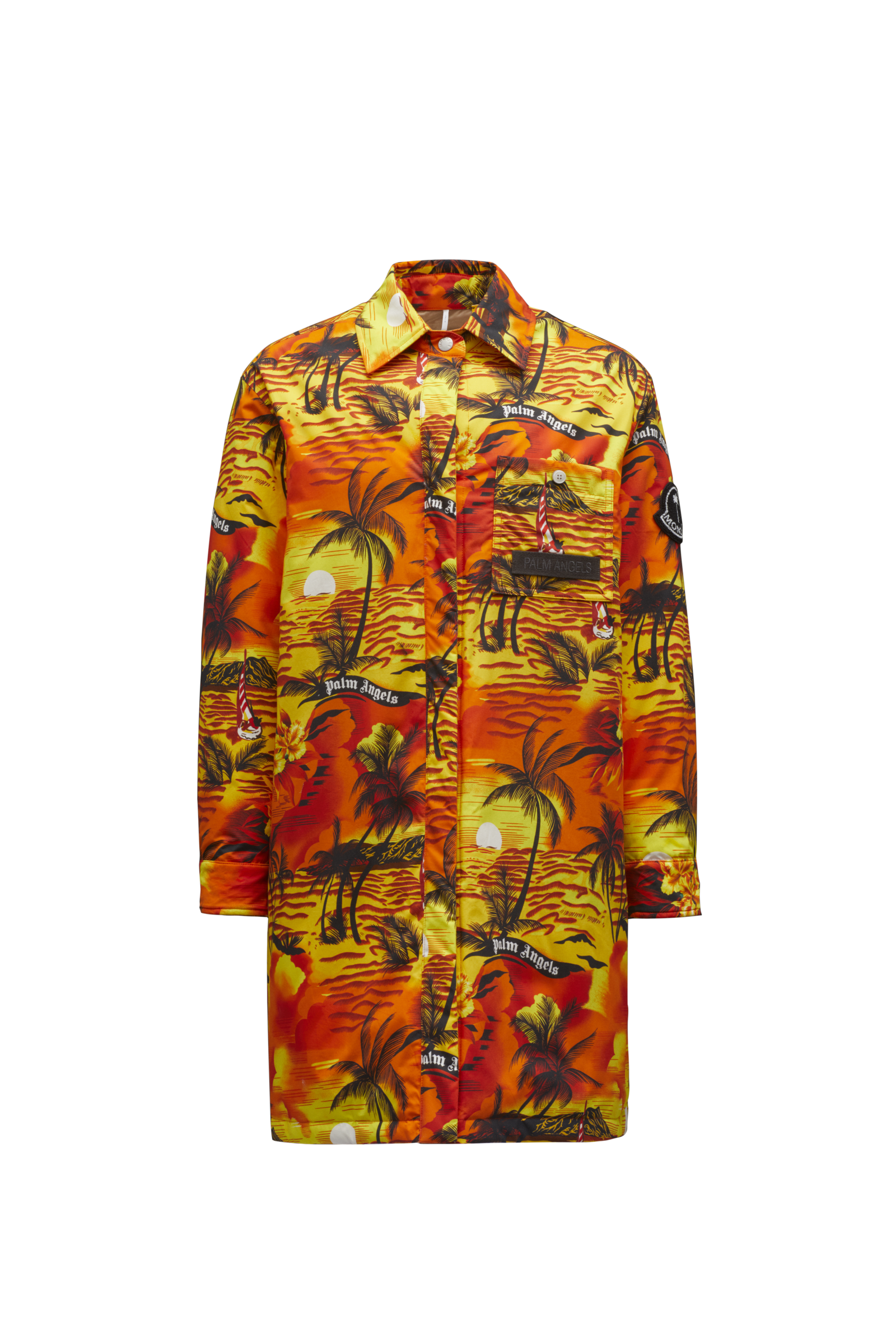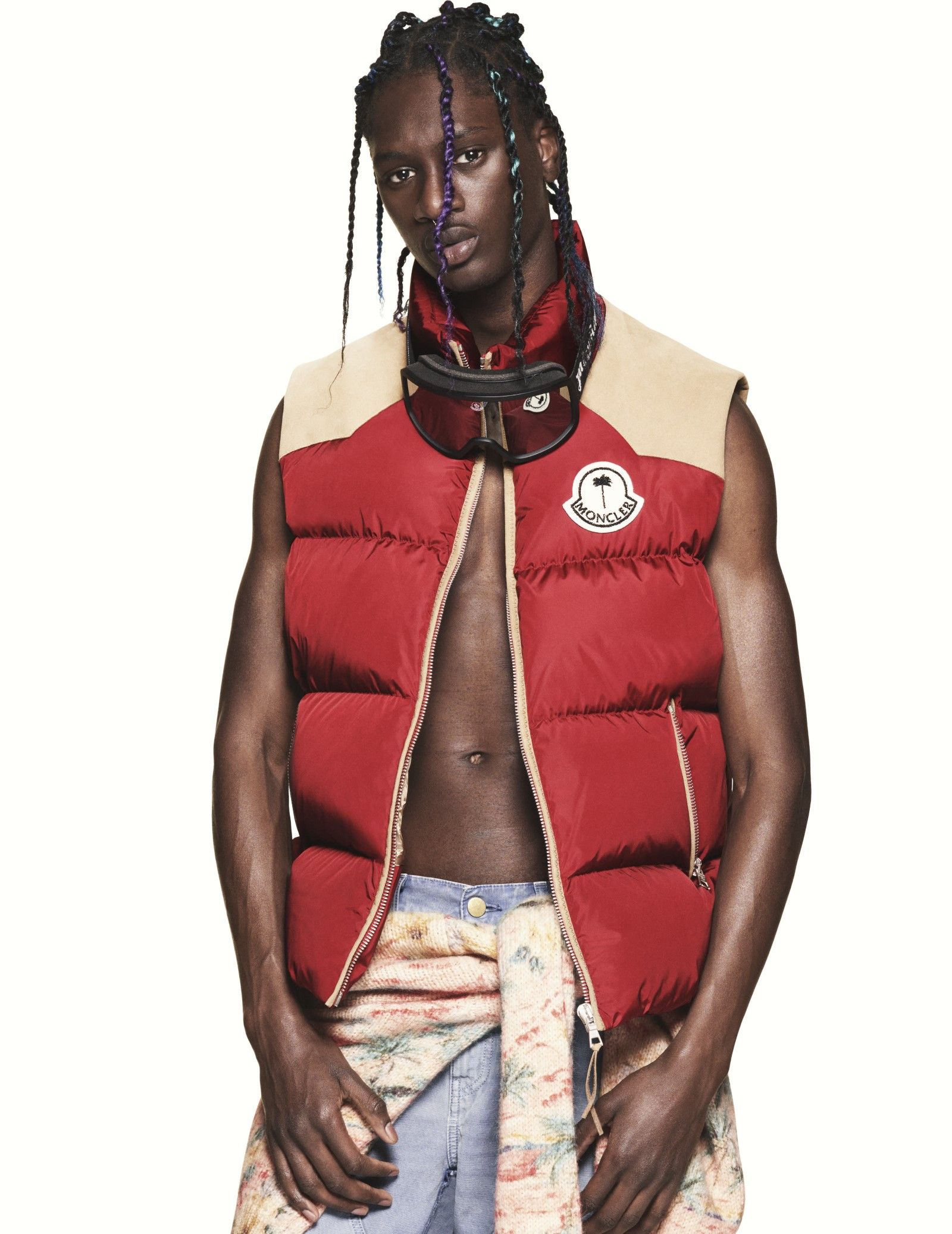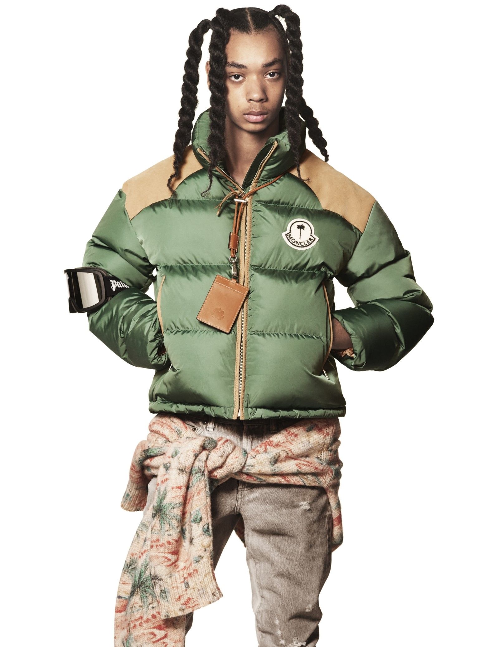Il risultato è una collezione straordinariamente colorata in cui tutti le signature di design di Palm Angels (le stampe massimaliste, l’occhio all’estetica americana, l’interesse tutto italiano per costruzione e materiali) si mescolano senza soluzione di continuità con il classico DNA Moncler trovando terreno comune nella ridefinizione di quell’area di confine dove la funzionalità incontra il lusso e l’espressione culturale. In questo caso il lavoro di Ragazzi si è svolto sugli archetipi del vestire: il piumino, gilet, la camicia hawaiana, il cardigan ,il maglione, la tuta, la felpa e i Moon Boot. Ognuno di essi è stato sovvertito e ripensato: se il piumino di volta in volta si accorcia, cambia texture, si arricchisce di inserti di suede oppure si trasforma in una borsa; la camicia hawaiana si allunga e diventa un cappotto; i pantaloni di acetato possiedono pinces e le felpe orli a taglio vivo.