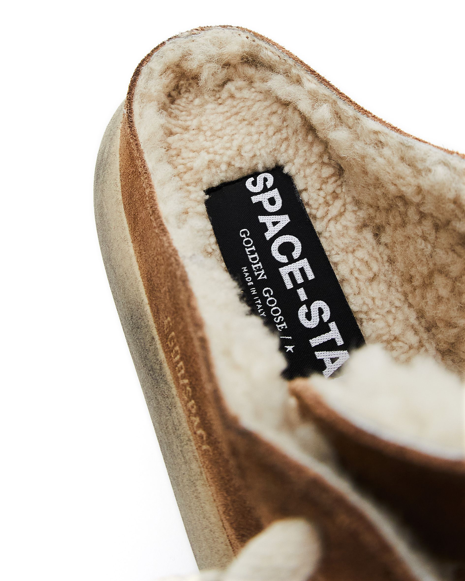 Grazie alla suola extra-cushion e a una soletta interna in memory foam, Space-Star garantisce un senso di leggerezza, mentre la Fodera in morbido shearling, è disponibile in un’ampia gamma di materiali: dal camoscio al nylon, dal cavallino animalier al glitter. Con l’iconica stella Golden sui lati, ogni scarpa è caratterizzata dalla firma lived-in del brand, che la rende immediatamente riconoscibile e unica. Space-Star è disponibile anche nella versione sabot, adatta sia per uso outdoor sia indoor.