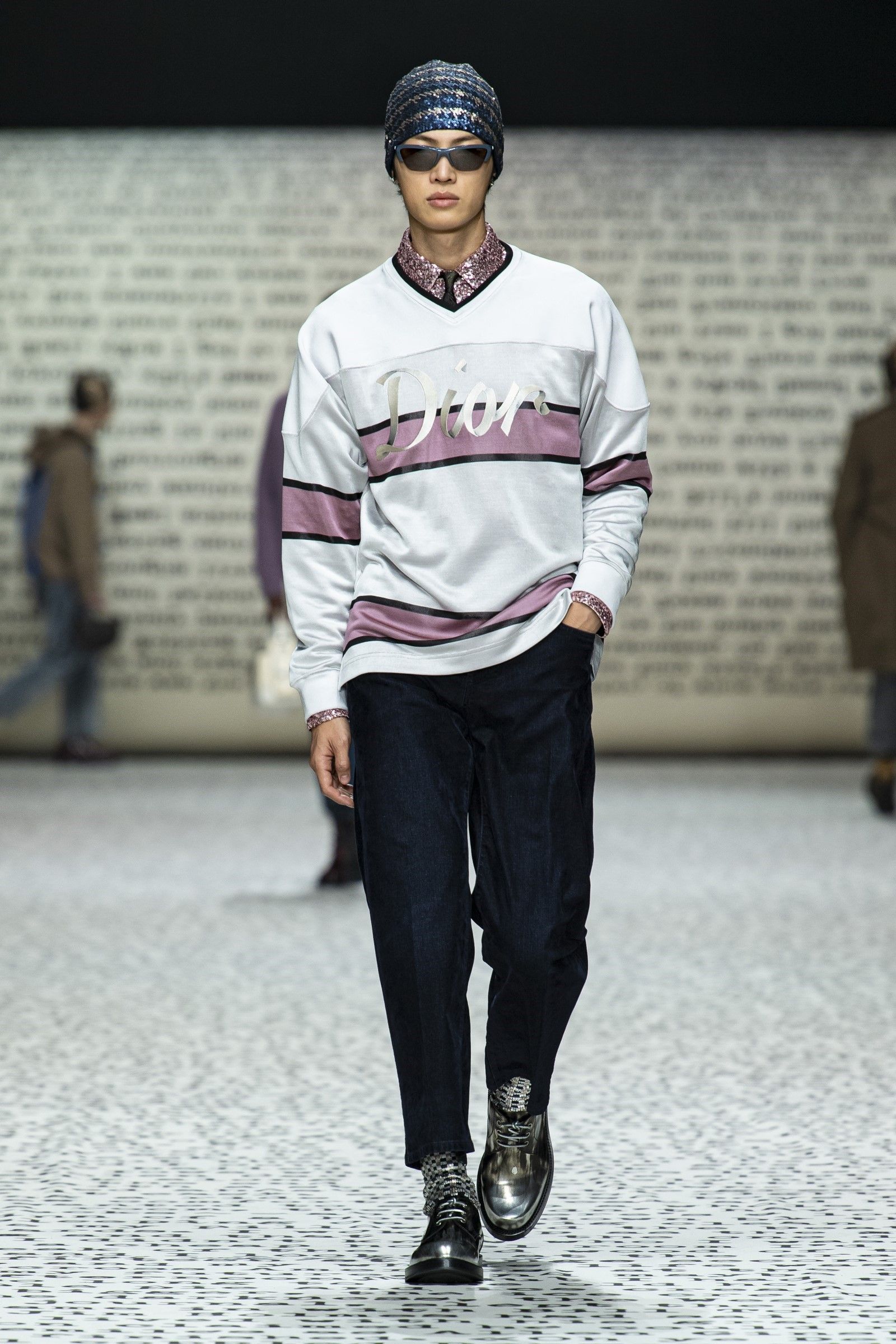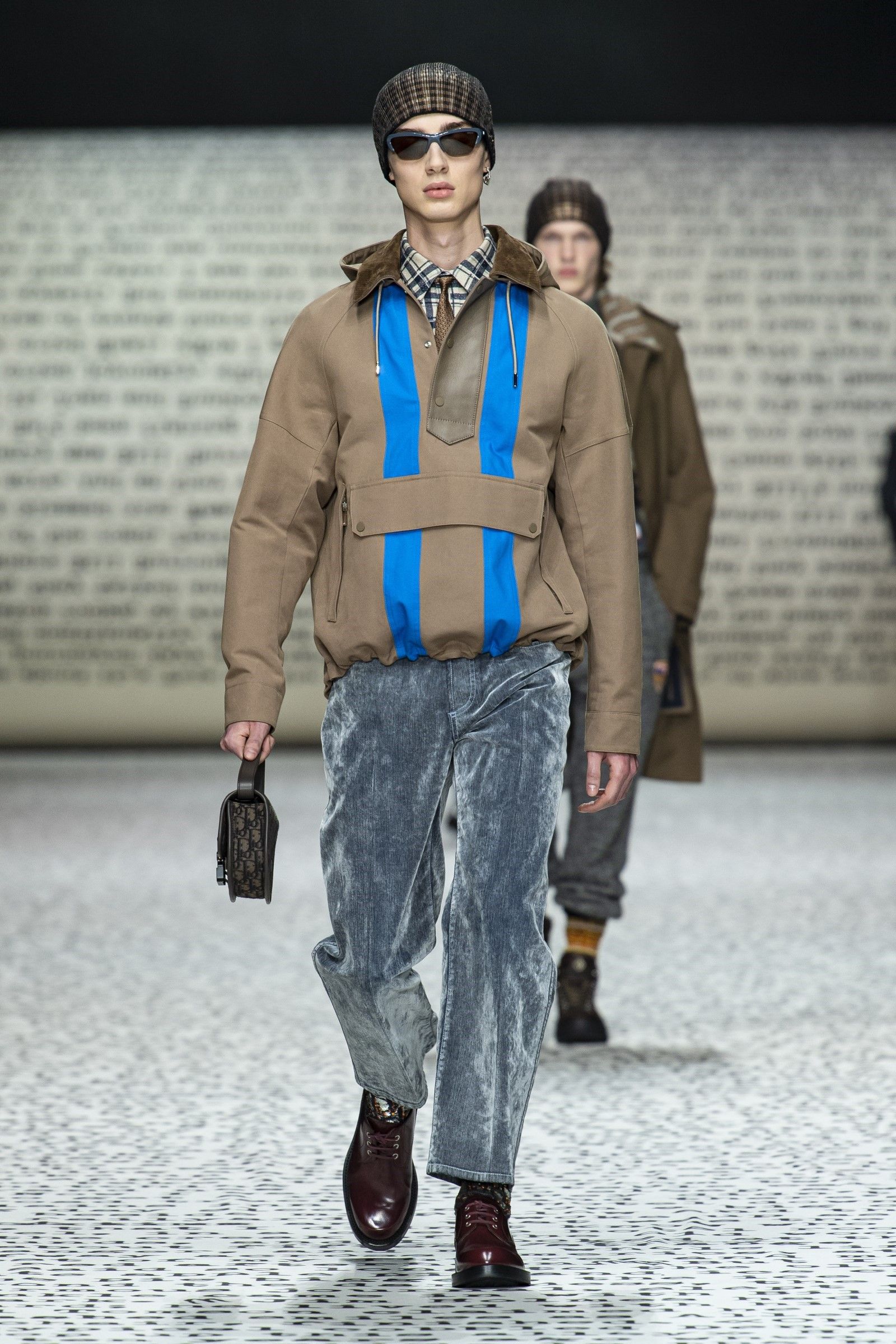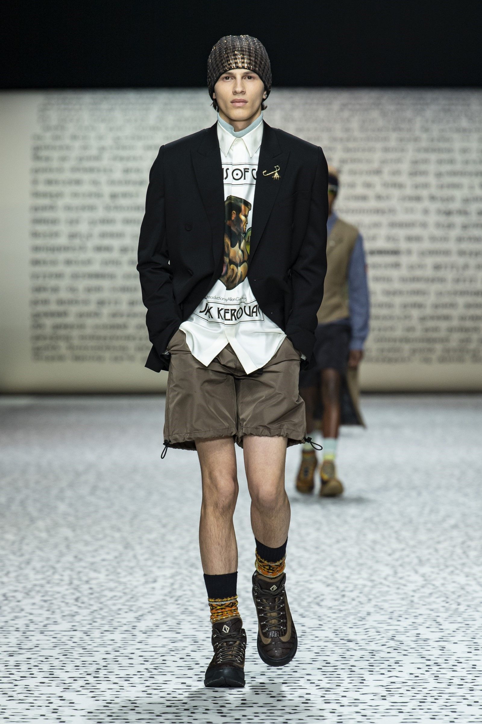 «I giovani sono interessati alla carta stampata», ha detto Kim Jones a WWD dopo il suo ultimo show di Dior a Londra. «Sono sempre di più i giovani che si stancano del digitale e vogliono vedere le cose nella vita reale, che cosa nasconde la prossima pagina – e non solo ciò che si trova su Google». Parole che sono emblematiche di una collezione che non solo celebra la carta stampata nel suo stesso set (una gigantesca riproduzione del manoscritto di Sulla strada di Kerouac) ma che racconta anche una subcultura che la moda non frequentava da qualche anno: la Beat Generation. Proprio il legame allo stile anni ’50 della Beat Generation, così come l’insolito approfondimento dedicato a una raccolta bibliologica di prime edizioni di Sulla Strada possedute da Kim Jones hanno posto enfasi sul medium analogico richiamando un’altra recentissima subcultura, estintasi poco prima del boom dello streetwear promosso da Jones stesso con Louis Vuitton x Supreme, che sono gli hipster.