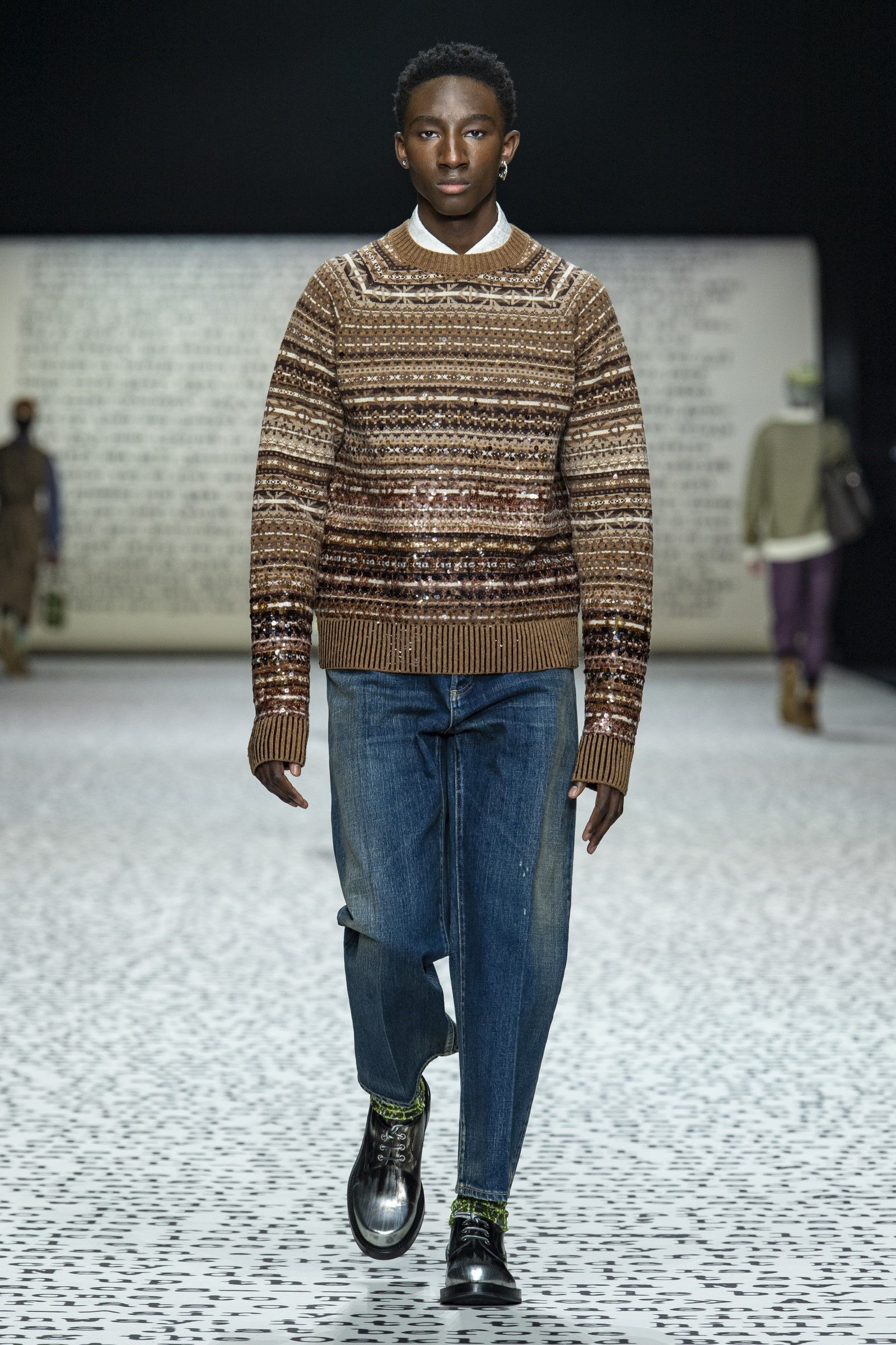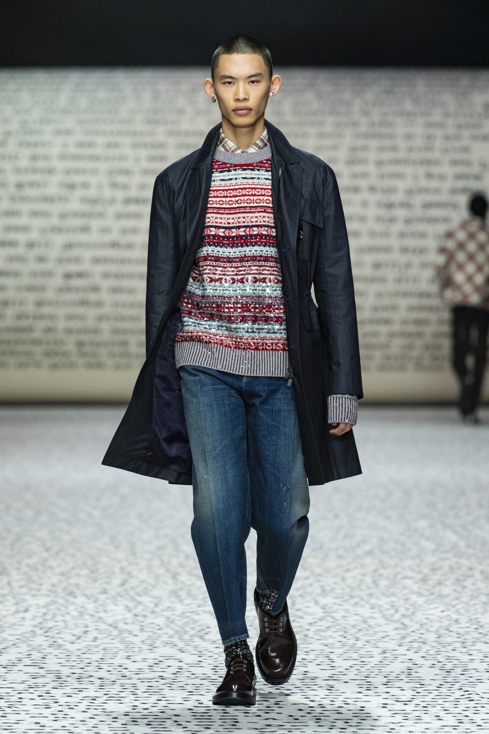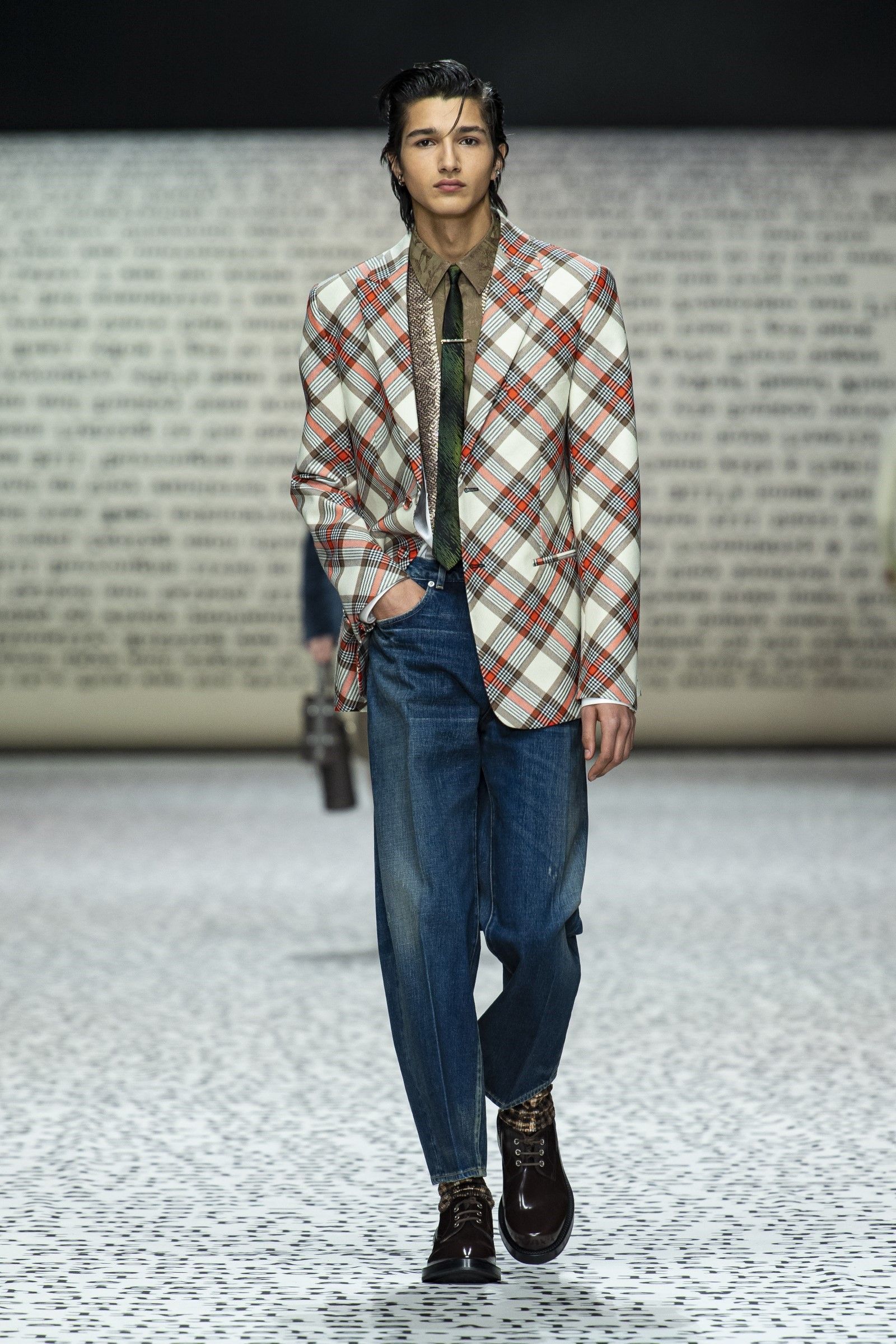 «I giovani sono interessati alla carta stampata», ha detto Kim Jones a WWD dopo il suo ultimo show di Dior a Londra. «Sono sempre di più i giovani che si stancano del digitale e vogliono vedere le cose nella vita reale, che cosa nasconde la prossima pagina – e non solo ciò che si trova su Google». Parole che sono emblematiche di una collezione che non solo celebra la carta stampata nel suo stesso set (una gigantesca riproduzione del manoscritto di Sulla strada di Kerouac) ma che racconta anche una subcultura che la moda non frequentava da qualche anno: la Beat Generation. Proprio il legame allo stile anni ’50 della Beat Generation, così come l’insolito approfondimento dedicato a una raccolta bibliologica di prime edizioni di Sulla Strada possedute da Kim Jones hanno posto enfasi sul medium analogico richiamando un’altra recentissima subcultura, estintasi poco prima del boom dello streetwear promosso da Jones stesso con Louis Vuitton x Supreme, che sono gli hipster.