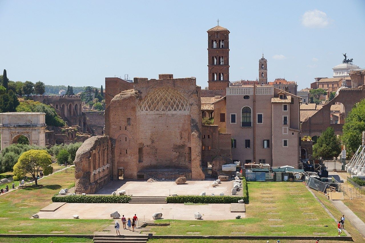 Il tempio è forse uno dei monumenti più iconici del Parco Archeologico del Colosseo, il più grande edificio religioso di Roma antica disegnato dall’imperatore Adriano in persona. Nell’antichità, il tempio era dedicato, oltre che a Venere, anche al culto di Roma Eterna – e per questo Silvia Venturini Fendi lo ha definito in una dichiarazione «la culla spirituale della nostra città». I lavori di restauro, durati 15 mesi, hanno coinvolto oltre 60 professionisti e si sono concentrati sugli aspetti strutturali e decorativi ma anche su un sistema di illuminazione che valorizzi le rovine monumentali dell’edificio nel contesto del panorama cittadino.