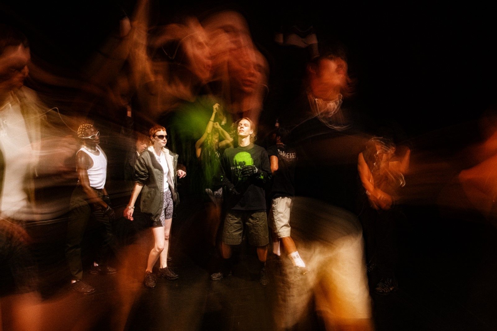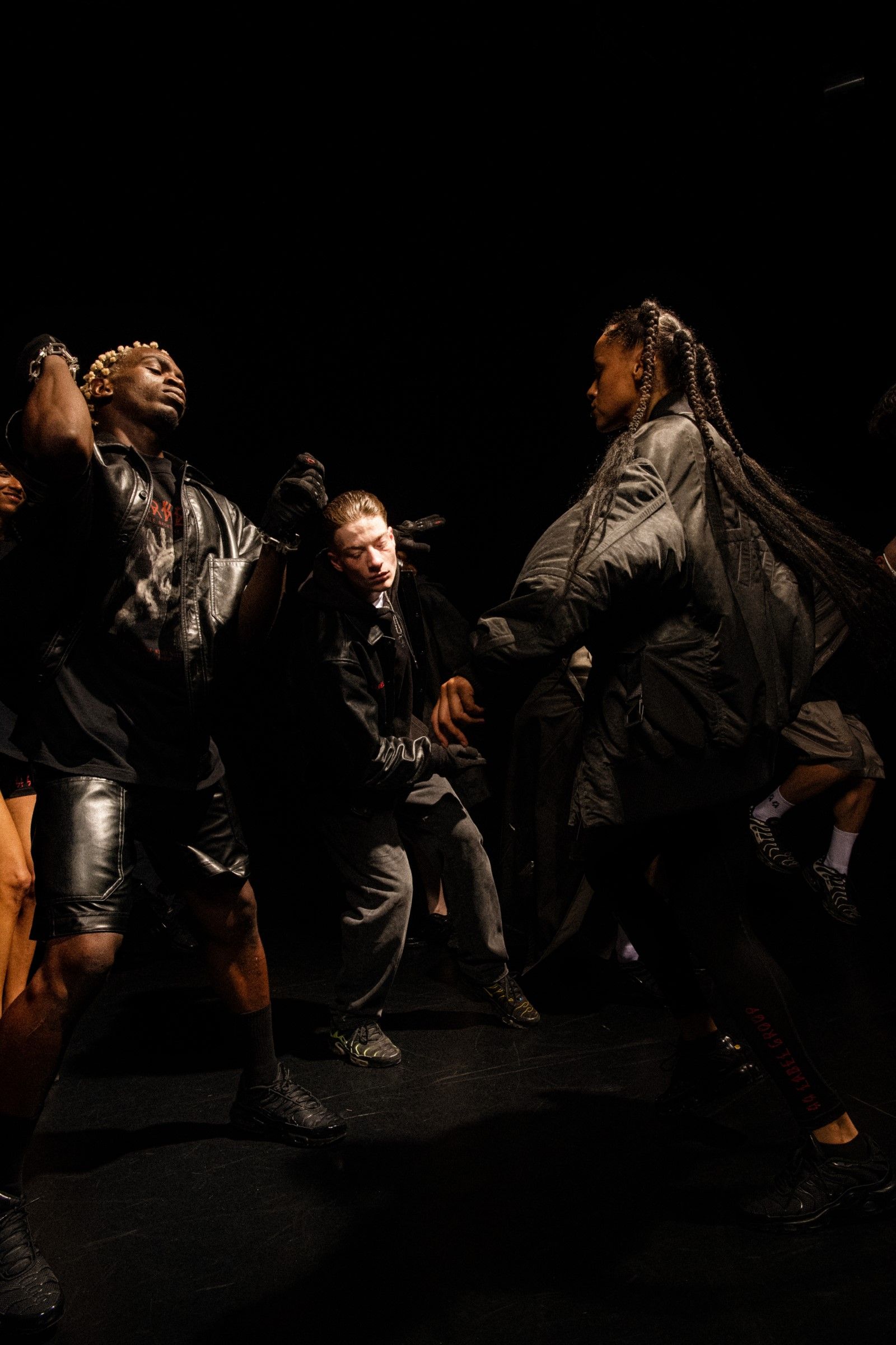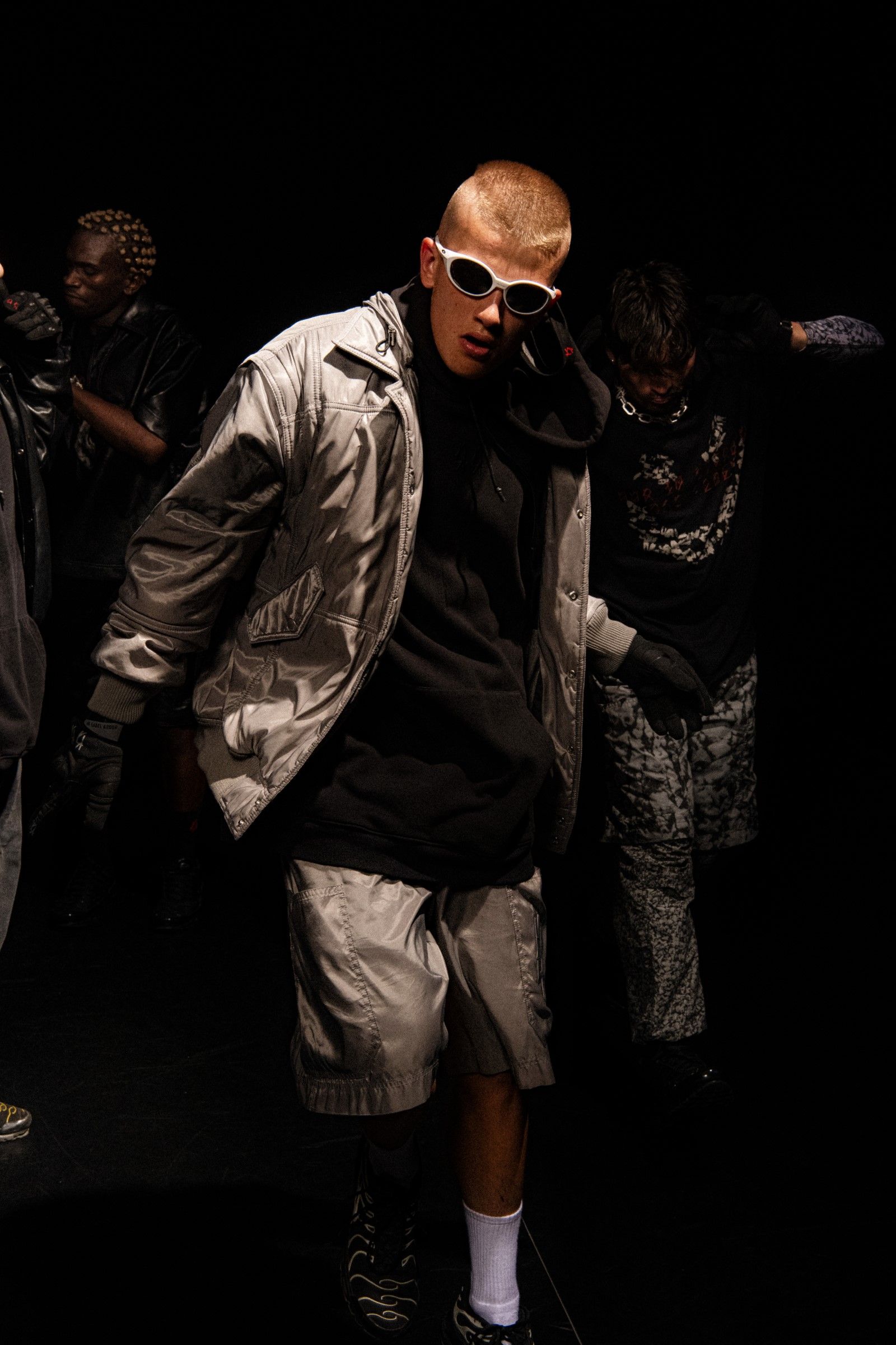 «Penso che che il clubbing dia alle subculture un modo per esprimersi», ci ha spiegato Kobosil. «Può riguardare i sentimenti del momento o a volte la politica con una certa immagine o testo su una maglietta, per esempio. Molte tendenze sono nate nella scena del clubbing. Può anche essere semplice come una catena dal negozio di ferramenta intorno al collo». Naturalmente, differenze d’ispirazione a parte, esiste una sorta di divisa, di linguaggio comune per il clubwear – un linguaggio che esclude la moda scomoda e attillata dei completi maschili, dei tacchi a spillo e della formalità e che ripiega invece sulla funzionalità - «per me, personalmente, si tratta di pantaloni cargo, tante borse e una t-shirt oversize».