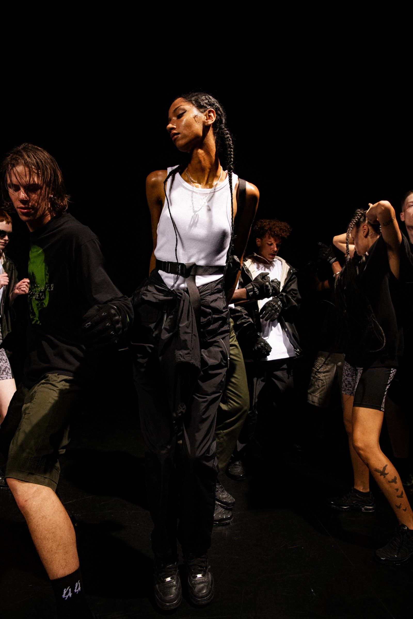Una funzionalità che però non è solo espressione di tecnicismo ma trasmette messaggi personali, politici, artistici: «La maggior parte delle persone sceglie il proprio outfit per evocare sensazioni, atmosfere ma anche per aderire a qualcosa di più collettivo e questa è la maniera in cui la moda influenza il clubbing». Ovviamente, però, trattandosi di un progetto personale, autoriale tanto quanto lo è la sua musica, 44 LABEL GROUP scaturisce dall’esperienza di Kobosil, è uno storytelling singolare e corale insieme – il nome del brand ad esempio «è il vecchio codice postale del quartiere dove sono nato [Neukolnn a Berlino, ndr] e dove abito ancora».