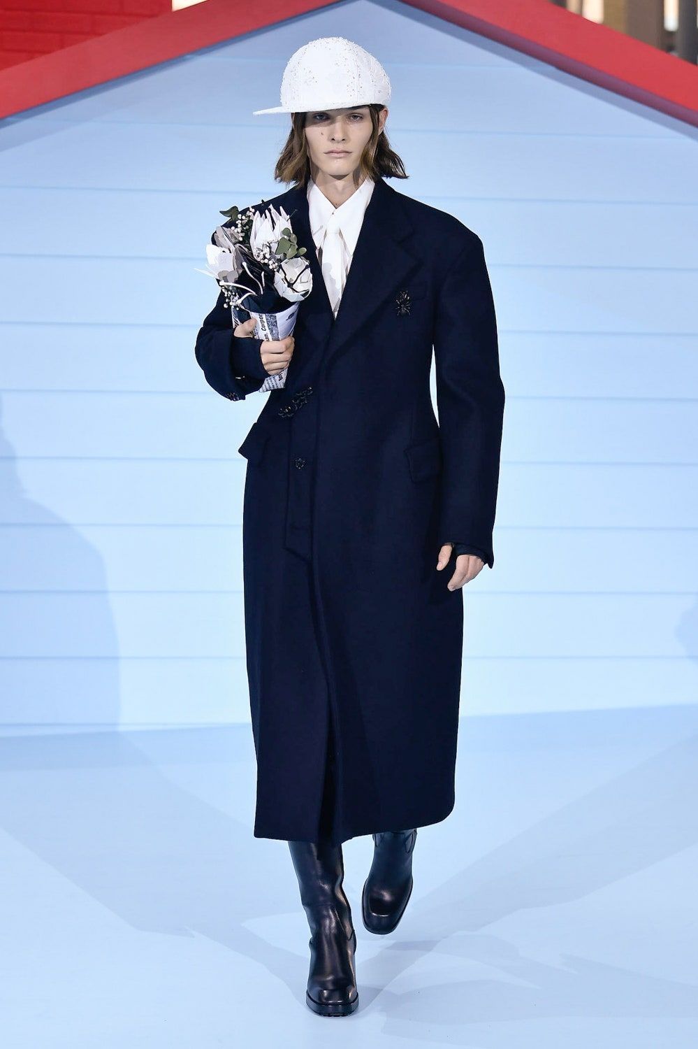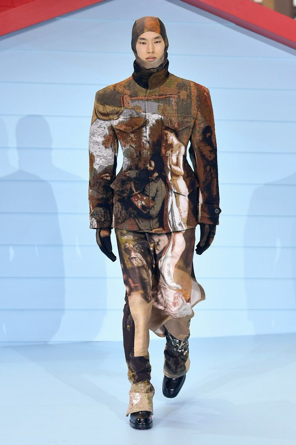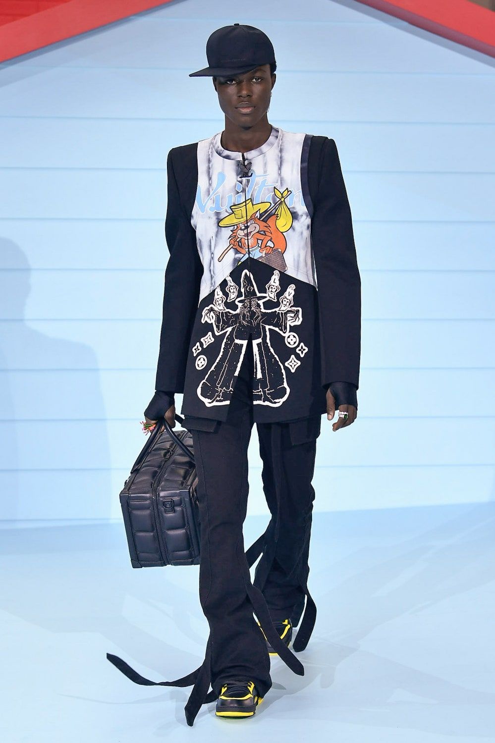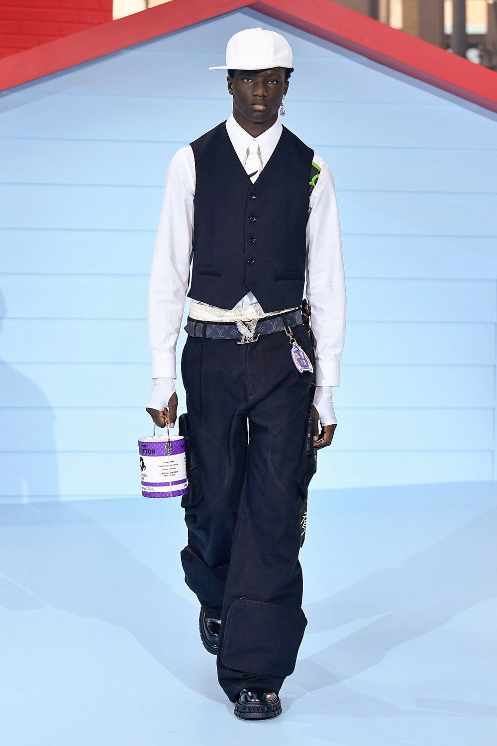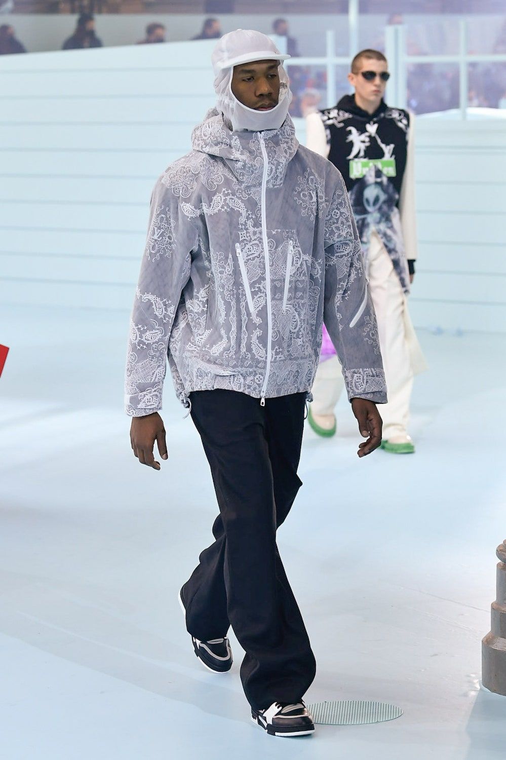 Per quanto riguarda i vestiti, questa collezione è stata forse una delle più tecnicamente sofisticate del Louis Vuitton di Virgil, creata con alla base quell'onnivoro di sincretismo culturale che mescola la cucitura boro giapponese, i quadri di De Chirico e Courbet, il tie-dye che diventa un monogramma a rilievo, il surrealismo di Magritte, l’ispirazione tratta dall’arredamento parigino con la trasformazione dei pizzi in decorazioni e ali meccaniche. La riscrittura dei preconcetti alla base del vestire, degli archetipi fissi simboleggiati ad esempio dai completi maschili, passa anche dal discorso della moda genderless, con lunghe gonne e caftani che entrano a far parte dell'uniforme maschile, sia quella smart che quella casual.