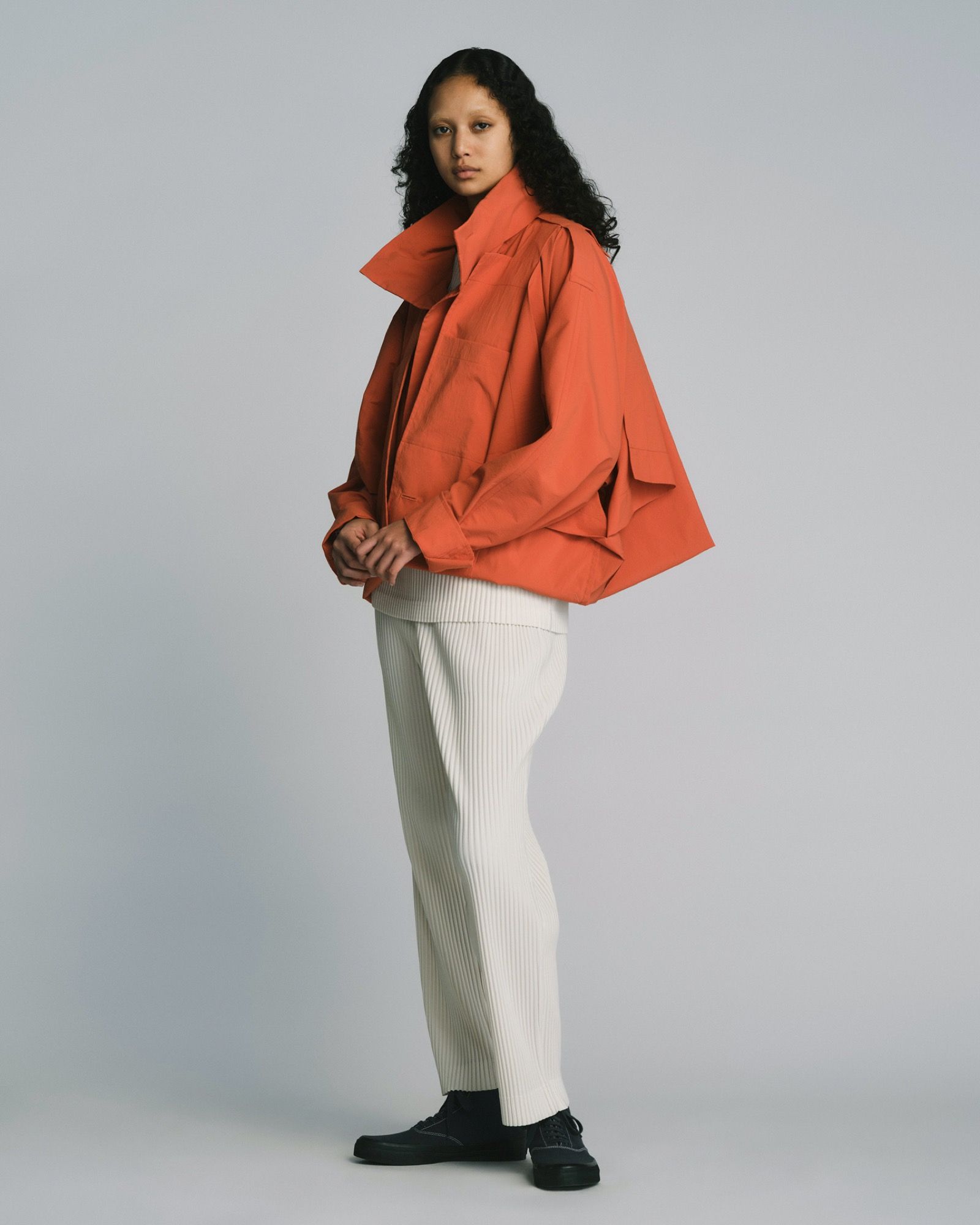 Un tessuto un telaio una struttura: nasce cosi la collezione HOMME PLISSÉ ISSEY MIYAKE AUTUNNO INVERNO 2022 «A WORK OF ARC» . La collezione adatta elementi della sua costruzione alla realizzazione di abiti: pieghe come archi su una tela plissettata danno origine a una nuova esplorazione delle forme tridimensionali. Studiando il rapporto tra il modo di piegare, cucire e plissettare la collezione sviluppa silhouette originali che avvolgono il corpo ed evocano la presenza di una scultura così viva che sembra come stesse per muoversi.