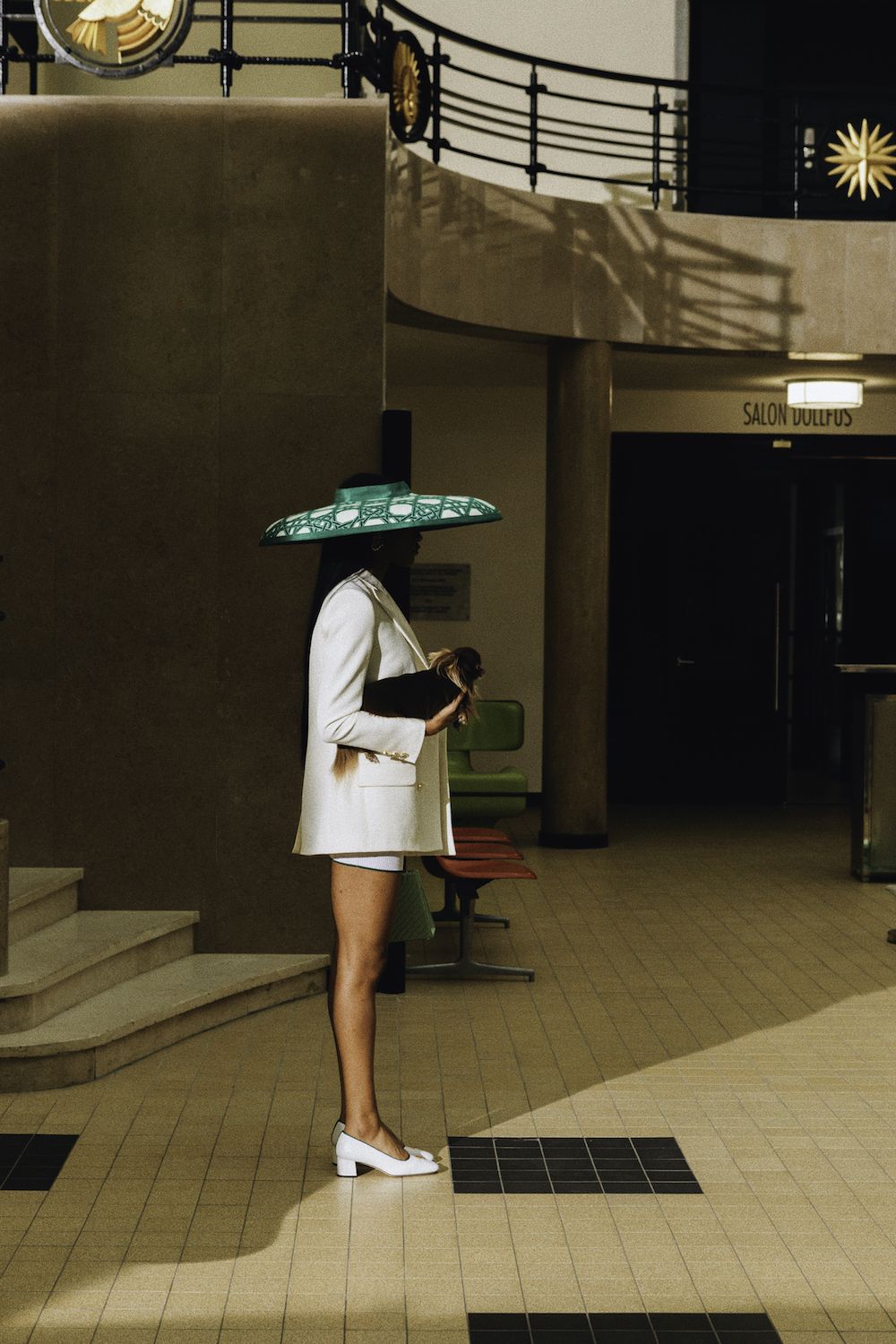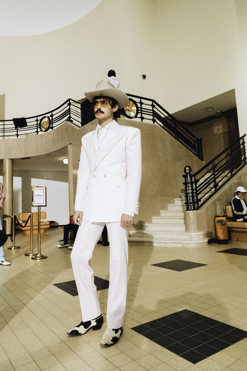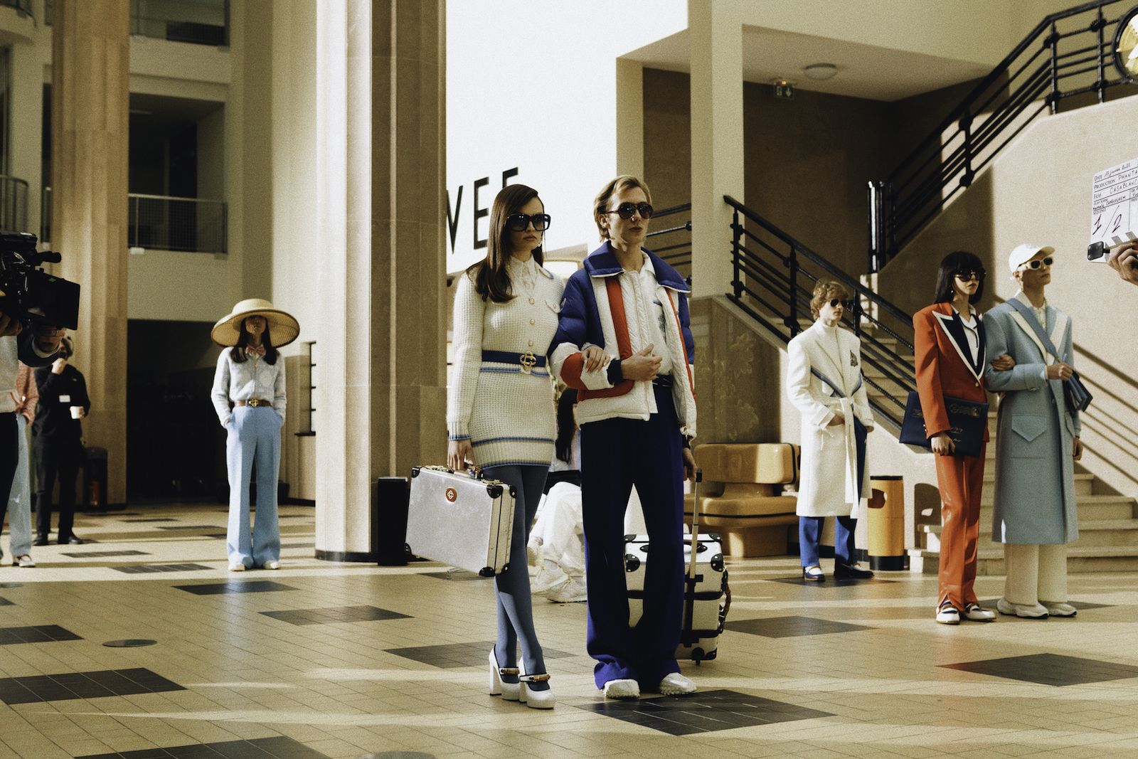 Nel video della campagna con l'attrice Emma Mackey, l'audacia e l'altitudine del viaggio, così come il linguaggio del design architettonico di Parigi, vengono celebrati attraverso location iconiche, come l'aeroporto Le Bourget, il ristorante Le Train Bleu e la Maison Darre - una panoramica della città a cavallo tra classicismo e contemporaneità. Capi sartoriali si arricchiscono di stampe preppy e cappelli a tesa larga, occhiali oversize, stivali western in un connubio perfetto che ben rappresenta il lusso contemporaneo e che allo stesso tempo ci teletrasporta negli anni '70. I capi in seta caratteristici di Casablanca si arricchiscono di stampe aeronautiche nel tricolore francese, che percorrono tutta la collezione, culminando nel capospalla trapuntato in raso, pezzo clou della collezione. Elementi ricamati a mano come perle, cristalli, paillettes, piume e perline possono essere visti su twin-set, maglieria, abiti e sartoria, a rappresentare il cielo notturno sfumato così come lo si vede dalla finestra di un aeroplano.