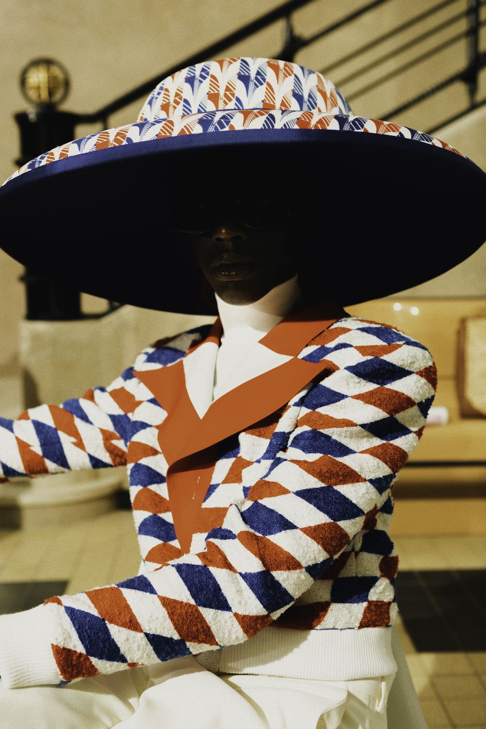 Accenti blu e oro riecheggiano il romanticismo degli hotel di lusso parigini, assumendo la forma di mantelle ricamate in lana, abiti da donna e maglie a intarsio. Proprio come la sottigliezza e la grazia delle relazioni diplomatiche, Casablanca onora la poesia che ci circonda ma raramente percepiamo.