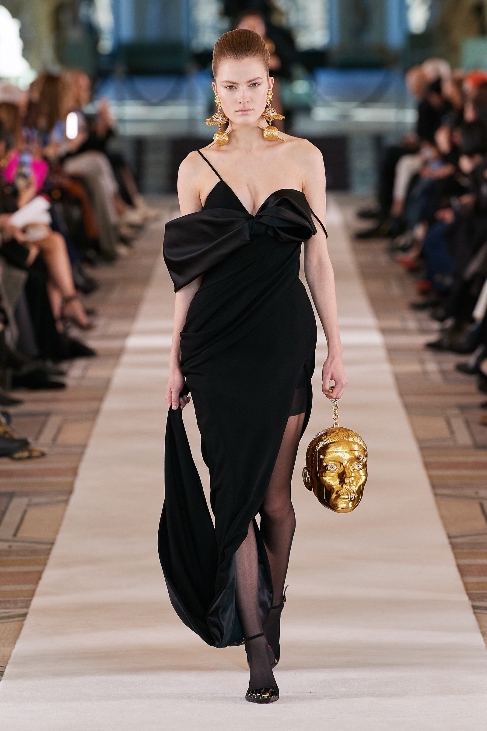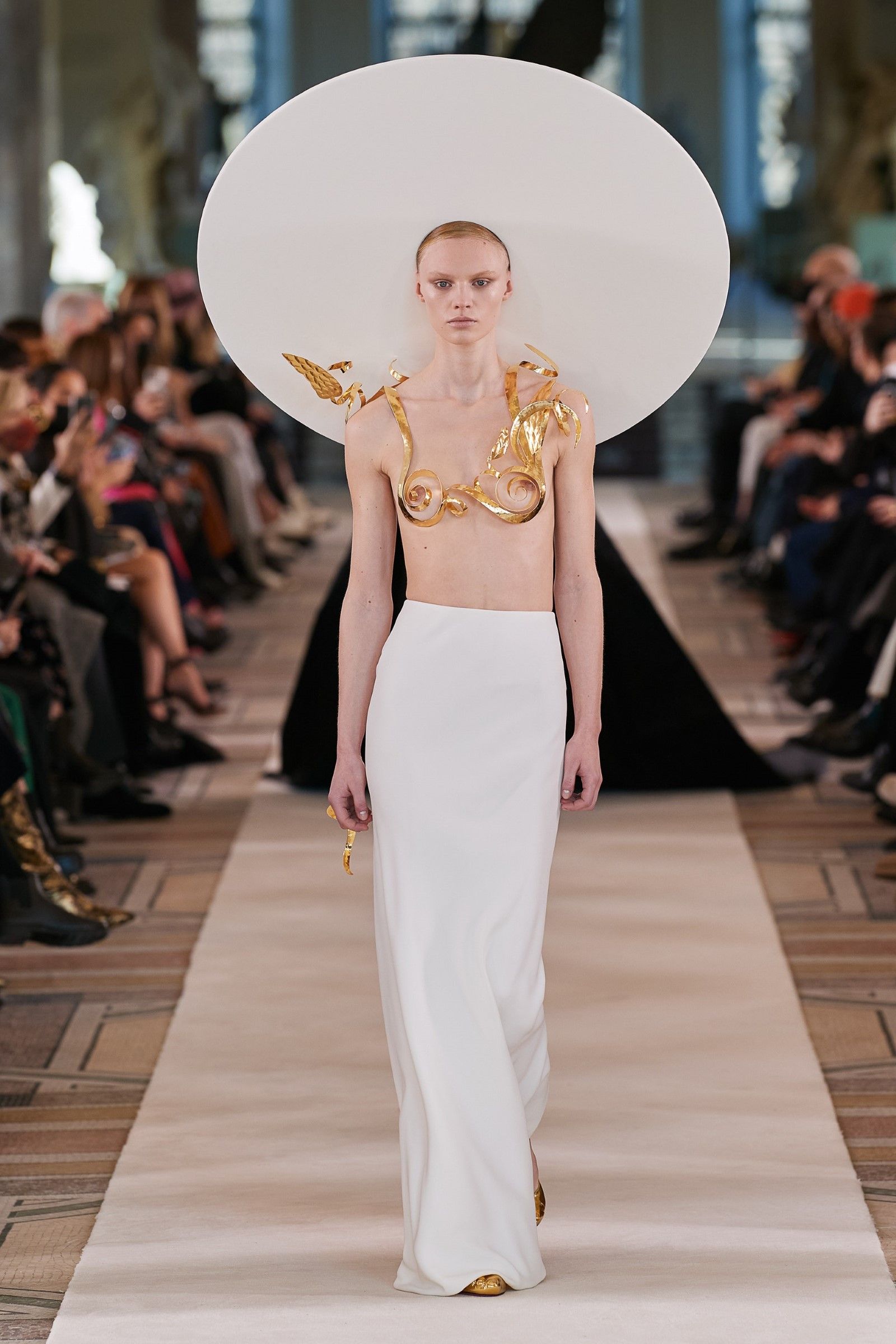 Grande conferma è stato Daniel Roseberry che da Schiaparelli si è inventato una forma di massimalismo concettuale mai vista prima e che unisce la grande propensione al riduzionismo della moda contemporanea con un amore sfrenato per l’eccesso più oltraggioso, quello che fa male agli occhi e che ci siamo disabituati a vedere. Il messaggio di Roseberry è sempre più distillato e la sua sintesi sempre più interessante perché lavora su elementi dimenticati: l’iperdecoratività, l’oro, l’eccesso per l’eccesso e ovviamente i risplendenti anni ’80 in cui il più era il più e l’estetica fuori controllo era la normalità. Schiaparelli, seguendo l’insegnamento della sua fondatrice, sta recuperando il senso dello stupefacente, del meraviglioso nel senso etimologico della parola.