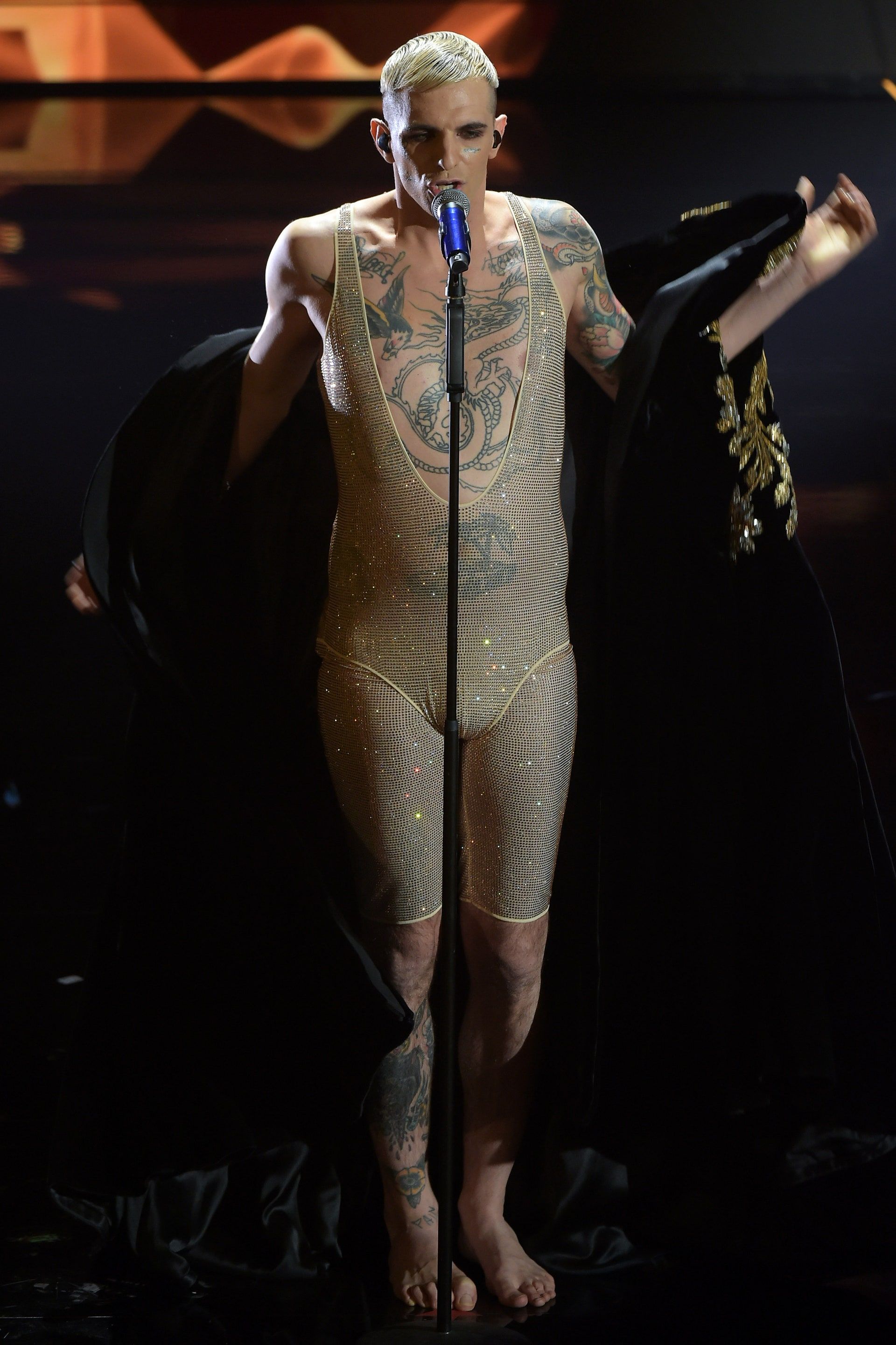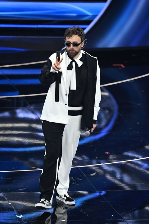 Di un completo sartoriale si dovrebbero solo ammirare la bellezza dei materiali e l’impeccabilità del taglio. Cosa che alcuni presentatori e cantanti hanno capito (vedi Fiorello in Armani e Carlo Conti in Ferragamo) e che altri, tragicamente, no. Il colpevole principale è Amadeus, grande mattatore sul palcoscenico, ma afflitto dal vizio delle giacche da tuxedo sbrilluccicanti. L'anno scorso, ci sono stati casi in cui i completi prendevano una piega volutamente ironica, come quello strampalato e bicolore di Dargen D'amico, ma altri in cui sovrastavano completamente la persona, come i bermuda in pelle Fendi indossati da Mahmood, che hanno fatto sembrare le sue gambe cortissime. Tre anni fa, Il Volo si presentò sul palco con un tris di completi grigi a fantasia damascata con una camicia più scura sotto la giacca che ci fanno dire, insieme a Barbara d’Urso: «Io rimango basita» - anche se quest'anno i tre avranno look pensati dal loro nuovo stylist Nick Cerioni che li riporteranno in questo secolo. Fausto Leali quasi li sconfisse lo stesso anno abbinando a un blazer blu elettrico, una camicia hawaiana, pantaloni neri e un paio di sneaker – un look che, non volendo dire di peggio, non aveva nè capo nè coda. Nel 2017, invece, per la sua vittoria, Francesco Gabbani indossò un completo ricoperto di stelle e un cravattino dalla forma fallica abbinandolo a stringate di vernice con lacci rossi mentre Alessio Bernabei al blazer pieno di paillettes accoppiò una raffinatissima scarpa in vernice senza calzini e con caviglia a vista. Il problema di tutti questi look? Voler strafare – quando sarebbe bastato un semplice e benfatto abito nero.