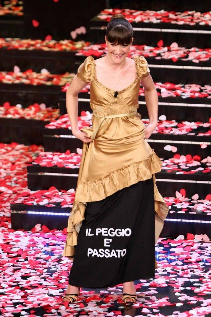 Categoria forse più ampia degli errori da non fare a Sanremo che riguarda tutti i look la cui energia è così caotica da risultare culturalmente radioattivi. La Clerici che balla il can can con una gonna di tulle su cui è stampato il tricolore italiano? Check. Giusy Ferreri vestita in un mini-tubino che sfocia in un paio di leggings di pizzo nero floreale con strascico da sposa in nero? Check. Qualunque cosa stesse succedendo con l’outfit di Gio Evan l’anno scorso? Check. Rimane indimenticabile Syria nel 2001 con un outfit che sfida ogni descrizione (erano pantaloncini? Era una gonna? E cos’era quello strascico?) mentre un’icona dimenticata è Federica Felini la cui conturbante bellezza venne immediatamente uccisa da un paio di pantaloncini alla zuava davvero inclassificabili. L’errore di tutti questi look è stato il voler unire troppi elementi e fantasie diverse ottenendo risultati che, nel best case scenario, lasciano profondamente perplessi e nel worst case scenario causano un bell’attacco epilettico a chi guarda.