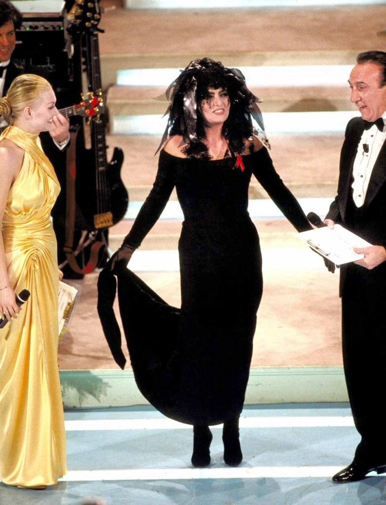 Primo sassolino da levarsi dalla scarpa: nel 2025 gli unici a poter indossare tute aderenti dovrebbero essere i supereroi Marvel. Fortuna che nella storia di Sanremo i look che includevano catsuit monocolore non siano stati molti – ma quelli che ci sono stati hanno avuto la forza di una bomba atomica. Il più recente è Achille Lauro, in una tutina che non era sgradevole in sé ma ricordava davvero troppo i costumi da spiaggia del 1910. Nemmeno Anna Oxa ha scherzato nel corso degli anni, anche se il look total red sfoggiato nel 1985 sarebbe perdonabile. Nulla batte l’esordio di Loredana Bertè nel 1986 comunque: tuta di latex e finto pancione da partoriente – outfit sicuramente progressista, sicuramente non di ottimo gusto ma anche del tutto incomprensibile. Si salva solo parzialmente Vittoria Belvedere che, nel 2003, indossò una sorta di tutina trasparente che nascondeva appena le sue grazie sotto una serie di paillettes – look impeccabile sul piano della moda ma responsabile forse di una serie di infarti all’interno delle fasce più conservatrici del pubblico.