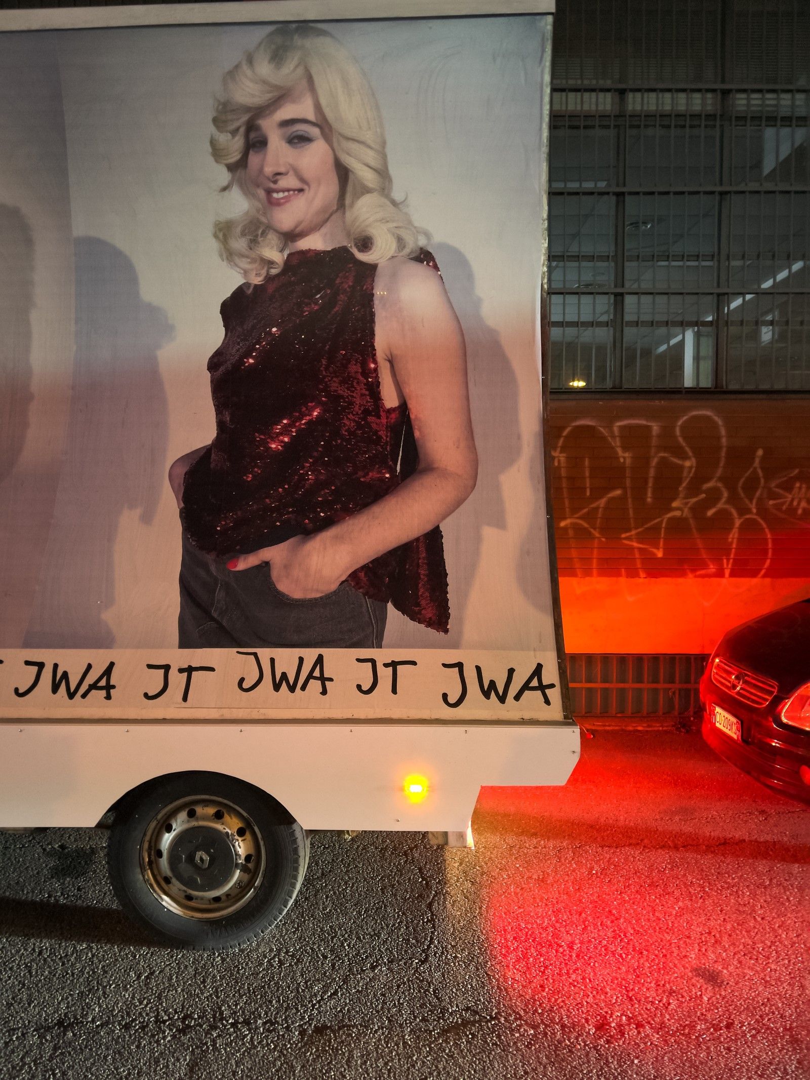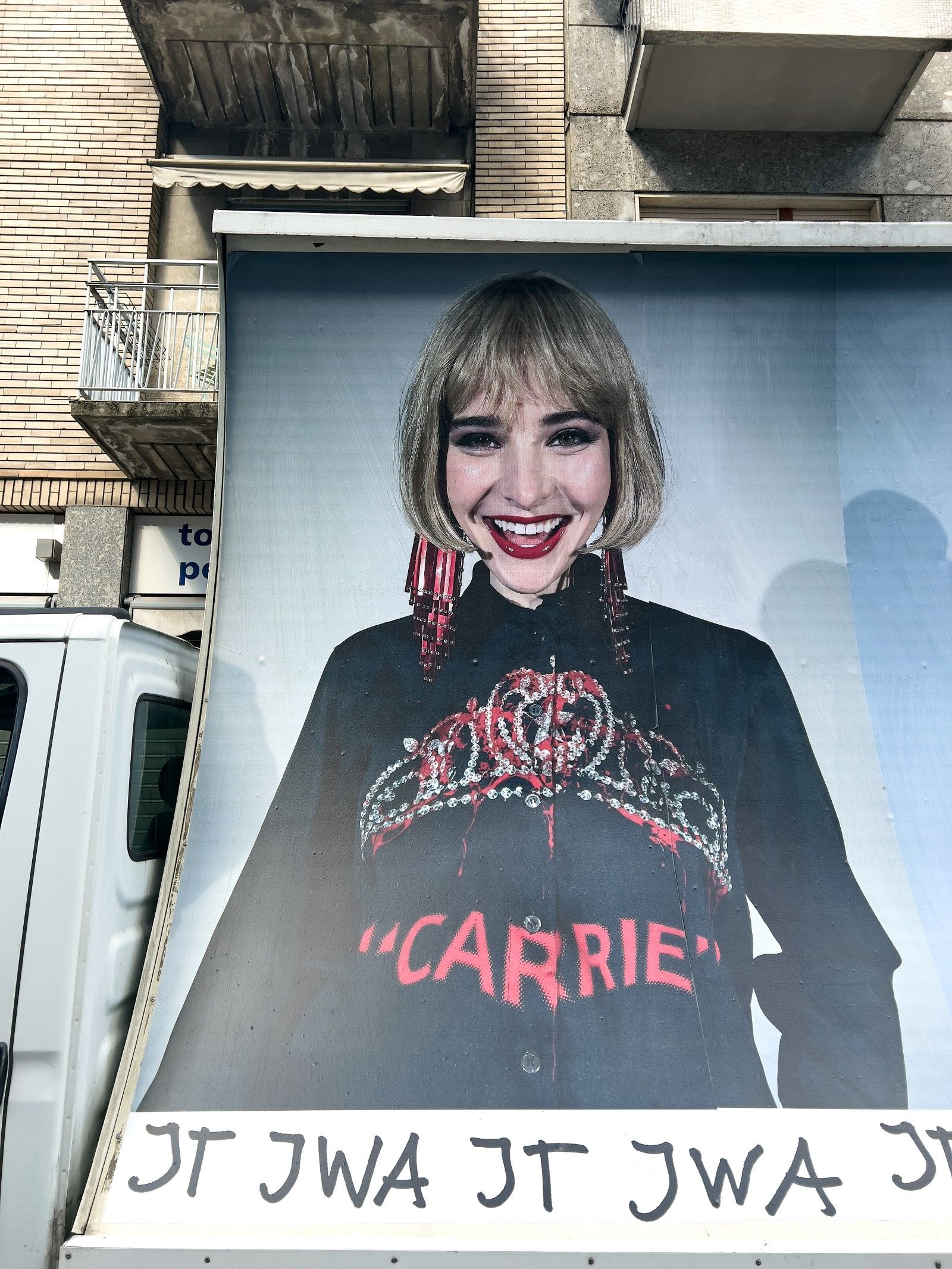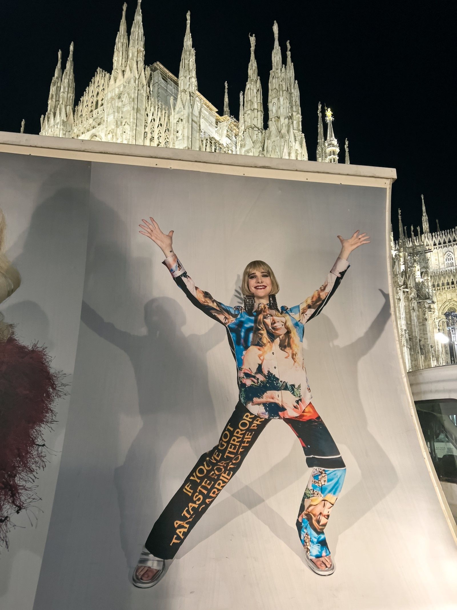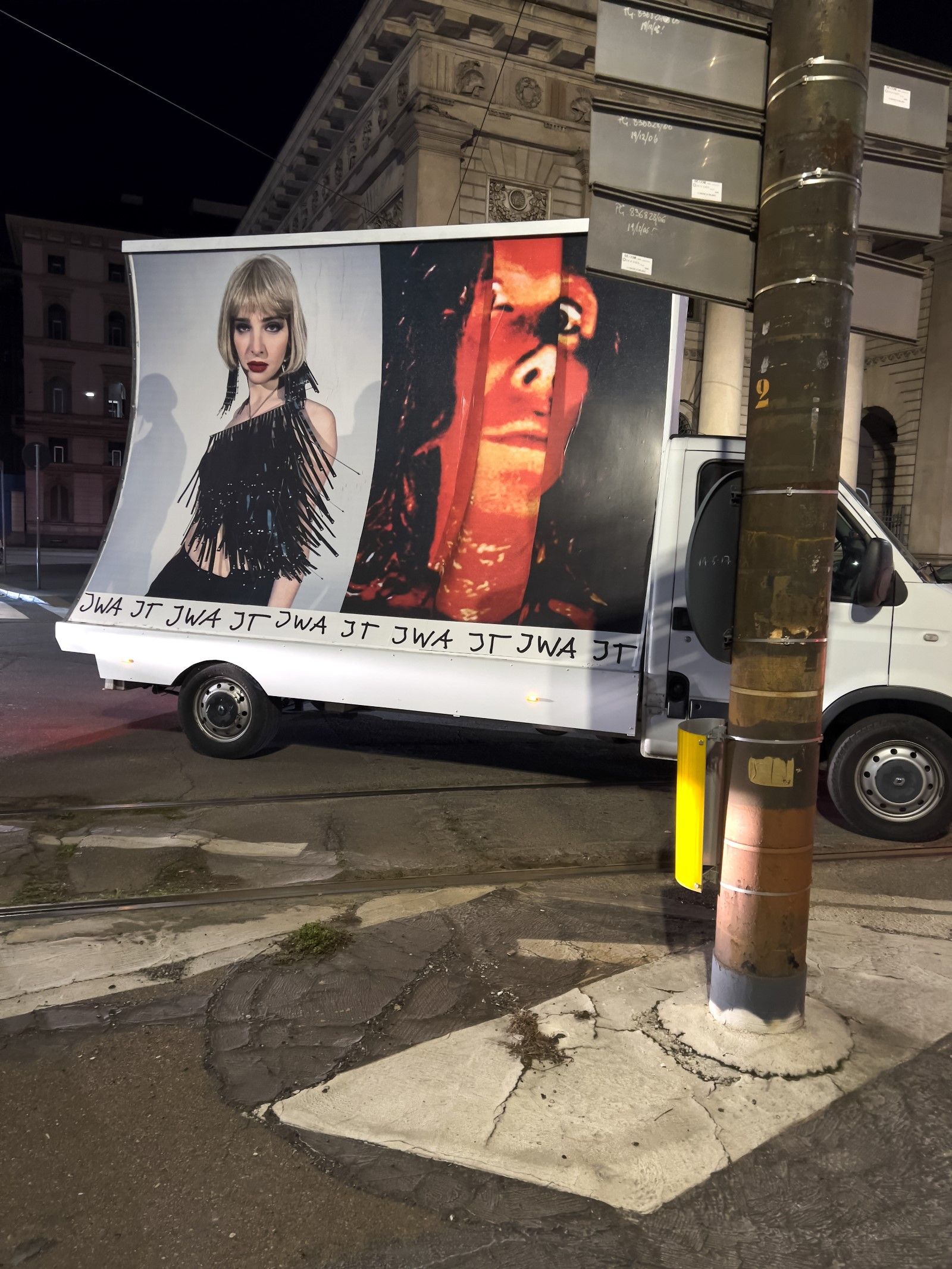 «Stampate come cartelloni pubblicitari e montate su furgoni, le immagini vengono poi riprese da Juergen Teller per le strade di Milano, nella terza e ultima azione che rende le immagini parti effimere ma ben visibili del paesaggio urbano. La moda che ha raccolto elementi dalla cultura popolare diventa essa stessa parte della cultura popolare. Il cerchio è chiuso e tuttavia lasciato aperto, in una fusione contorta di perversa ovvietà, perfettamente casuale».