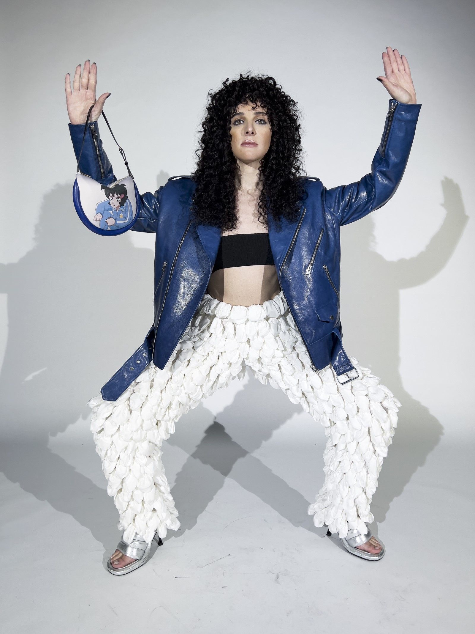 Il legame con il cinema e la tv, poi, è stato rafforzato con la presenza di reference al celebre horror Carrie di Brian De Palma e al cartone animato coreano Run Hany. Tanto il film che la serie animata appaiono su felpe, completi sportivi e soprattutto borse – e in mezzo a una serie di item che si ispirano agli oggetti associati a feste e divertimento come gli orecchini e i poi che ricordano i candelieri, i top e i sandali ispirati ai palloncini, i pantaloni con straschi e paillettes e materiali come seta e tessuti metallizzati.