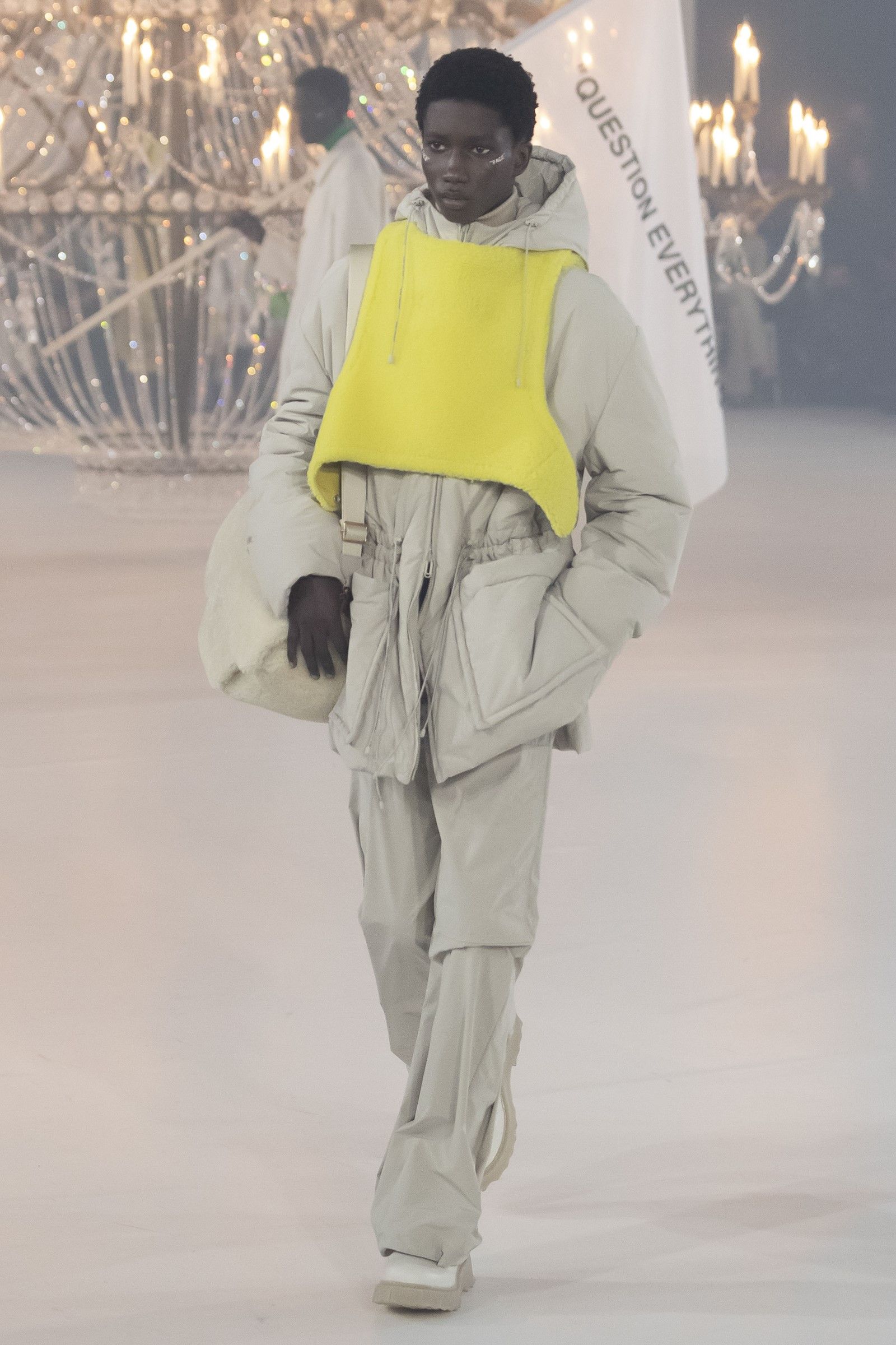Il motivo per cui Off-White™ può sopravvivere oggi, anche priva del suo direttore creativo, è proprio perché il brand funziona come un’emanazione diretta di Abloh, rappresenta una dimostrazione pratica del suo metodo: Virgil è sempre stato molto “autoriale” ma ha sempre evitato di essere l’unico e solo demiurgo delle sue collezioni, preferendo invece un approccio aperto e collaborativo che portasse i suoi creativi e i suoi altri team in posizioni tali, e con idee e spunti tali, da poter sviluppare da sé la propria immaginazione, lavorare con la propria personalità su un mindframe più ampio. La possibilità del dialogo e della collaborazione, oltre che una curiosità sempre accesa ed eclettica, sono le vere legacy del brand di Abloh che con questo show ha dichiarato al mondo di poter sopravvivere al suo creatore, oltre che di potere superare se stesso, portando l’estetica di Abloh verso nuovi territori e continuare a raccontare, con voce fiduciosa e sicura, e forse anche corale, la storia che Virgil aveva iniziato a Milano tanti anni fa. Un messaggio ripetuto anche dal frammento di intervista a Pharrell del 2020 in cui si diceva: