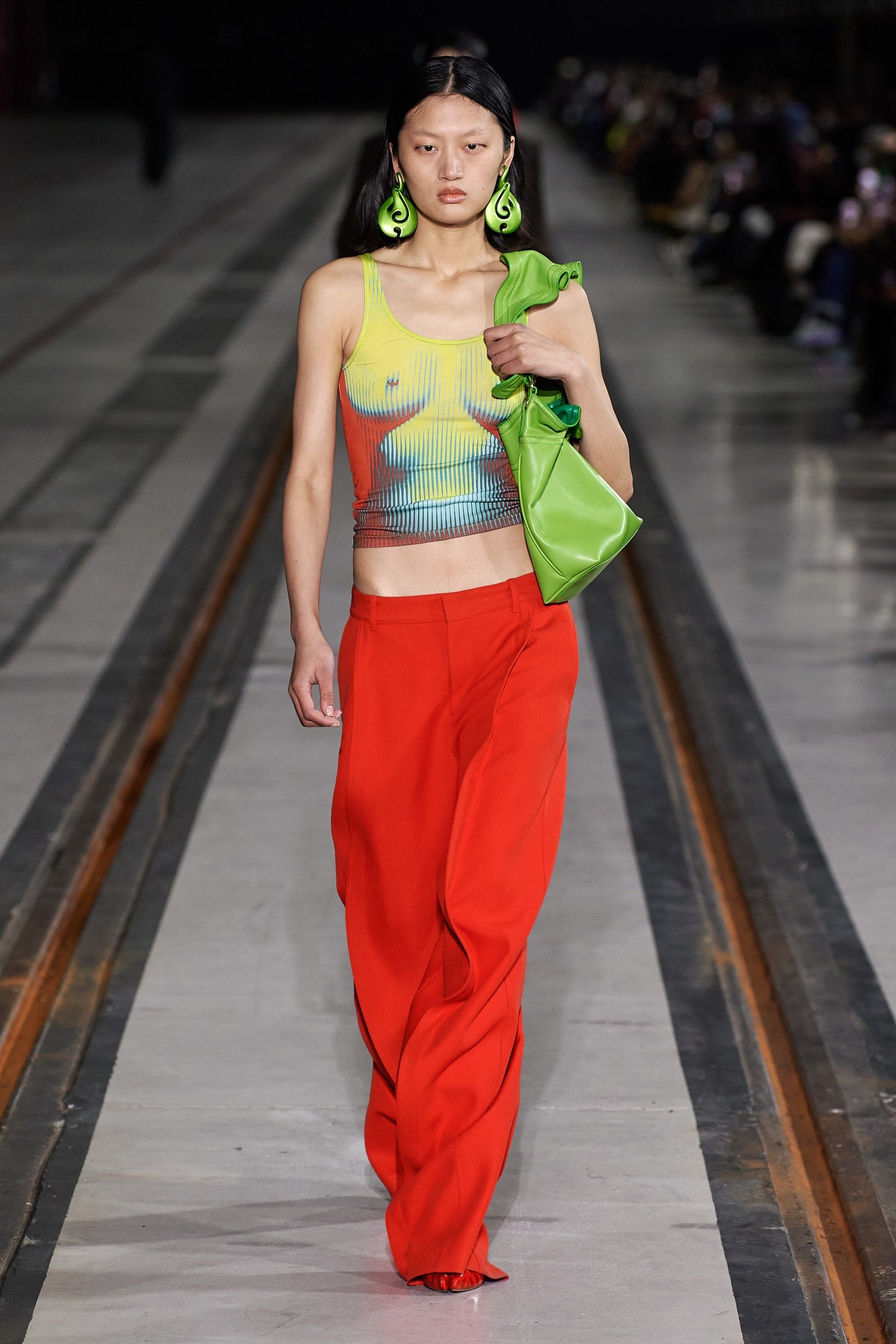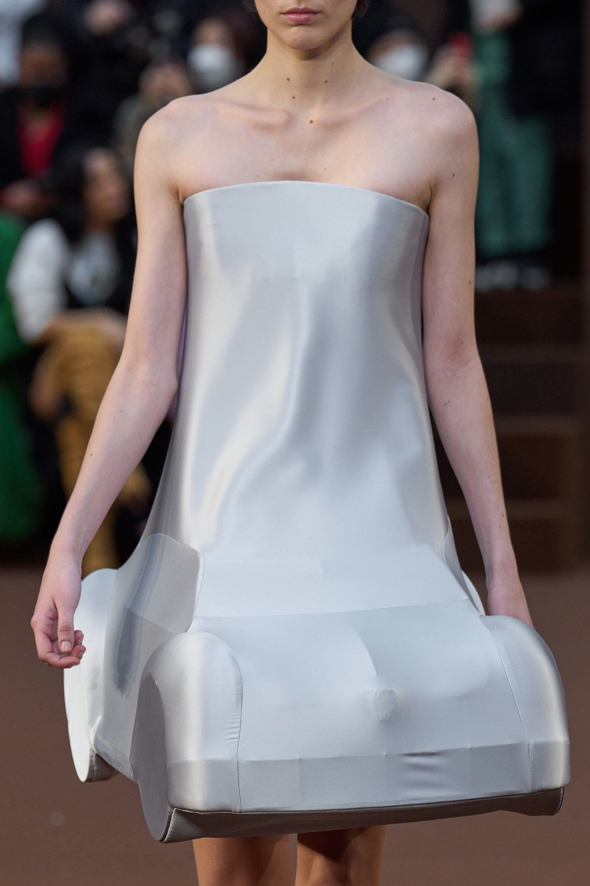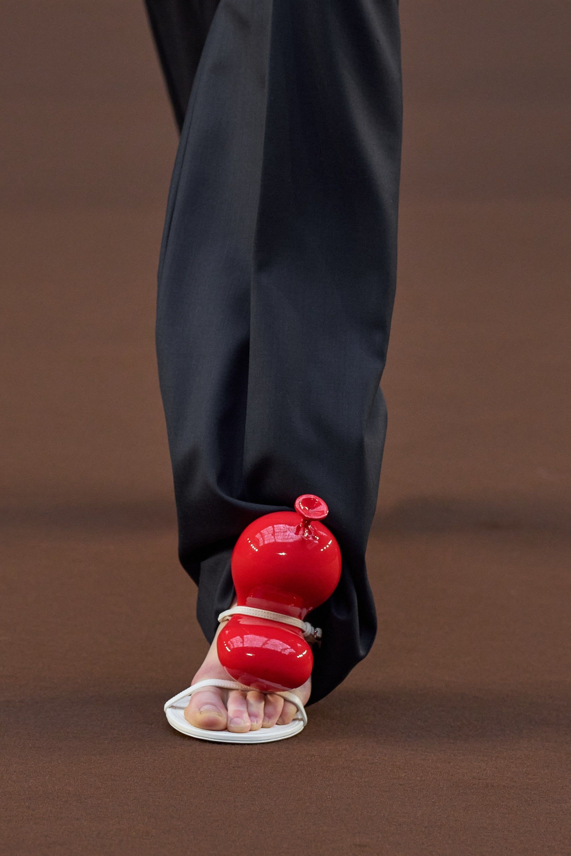 Mini abiti a trapezio con un'auto intrappolata nell'orlo, scarpe interamente affondate in una specie di galosce e un sacco di palloncini: rossi schiacciati tra le cinghie delle scarpe o marroni e beige tagliati come reggiseni. La sfilata di Jonathan Anderson per Loewe è stata simbolicamente costruita attorno alla ‘torsione’ di un palloncino - «Un palloncino crea tensione, scoppierà, non durerà per sempre», ha spiegato il designer - oltre che ad un tripudio di riferimenti artistici da Meret Oppenheim a Lynda Benglis, sino al partner di lunga data dello stilista Anthea Hamilton. «Non voglio che le cose sembrino stereotipate, non voglio che le cose abbiano un senso» è invece la premessa per la collaborazione tra J.W. Anderson e Run Hany basata sui cartoni animati di culto coreani degli anni '80 stampati su borse e top, un gioco attraverso colori e stampe che ricorda l’ultima passerella del brand a gennaio, in cui l’abbigliamento da calcio veniva interpretato in chiave "camp e teatrale" con tanto di mocassini a forma di bulbo, top che ricordano i muppet e pochette a forma di piccione. In Schiaparelli la via di fuga è il passato, il direttore creativo Daniel Roseberry che è stato in grado di rendere attuali i simboli della maison in una collezione costruita attorno alla figura della sacerdotessa pagana, un’immagine che si inserisce nel bagaglio simbolico della maison, legato ad astrologia e onirismo, in una processione di pianeti e rosari che diventano oggetti votivi destinati al culto del bello. «Dopo due anni passati a pensare al surreale, mi sono ritrovato invece a pensare all'empireo: Il cielo come luogo di fuga dal caos del pianeta» ha dichiarato Roseberry.