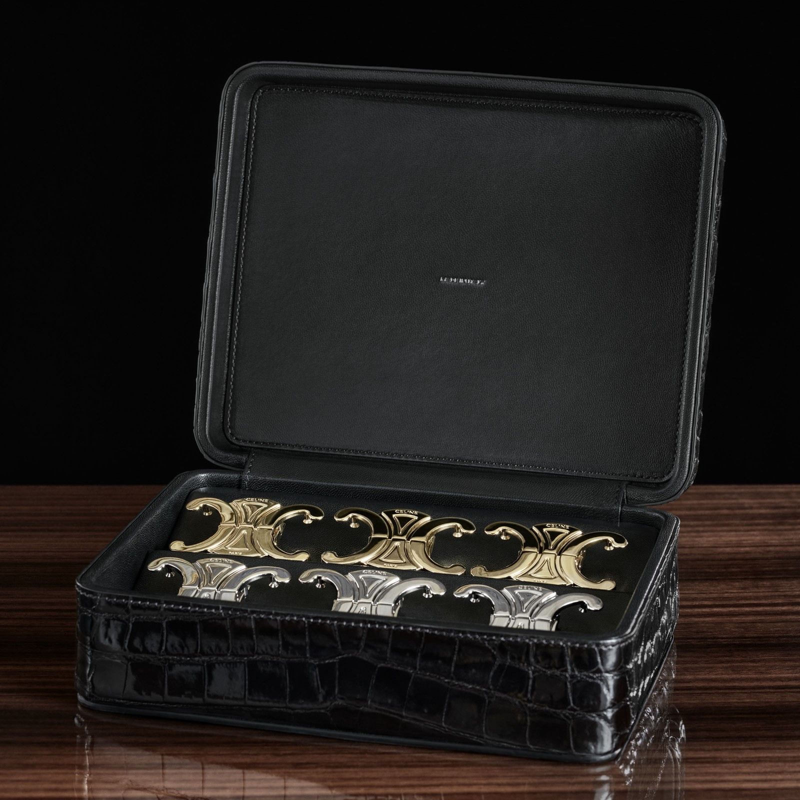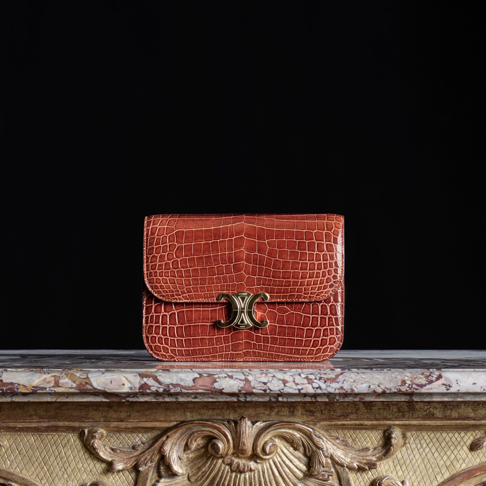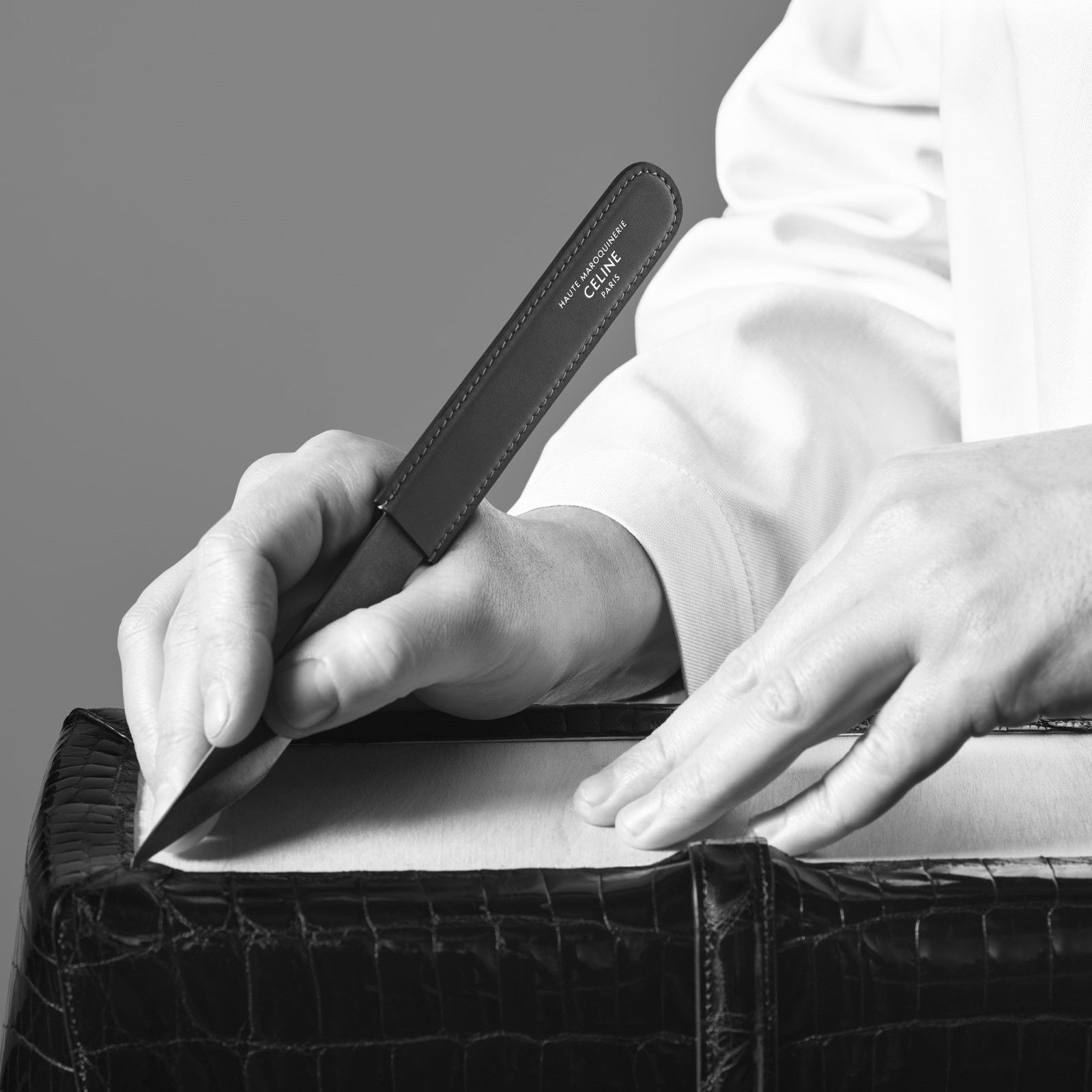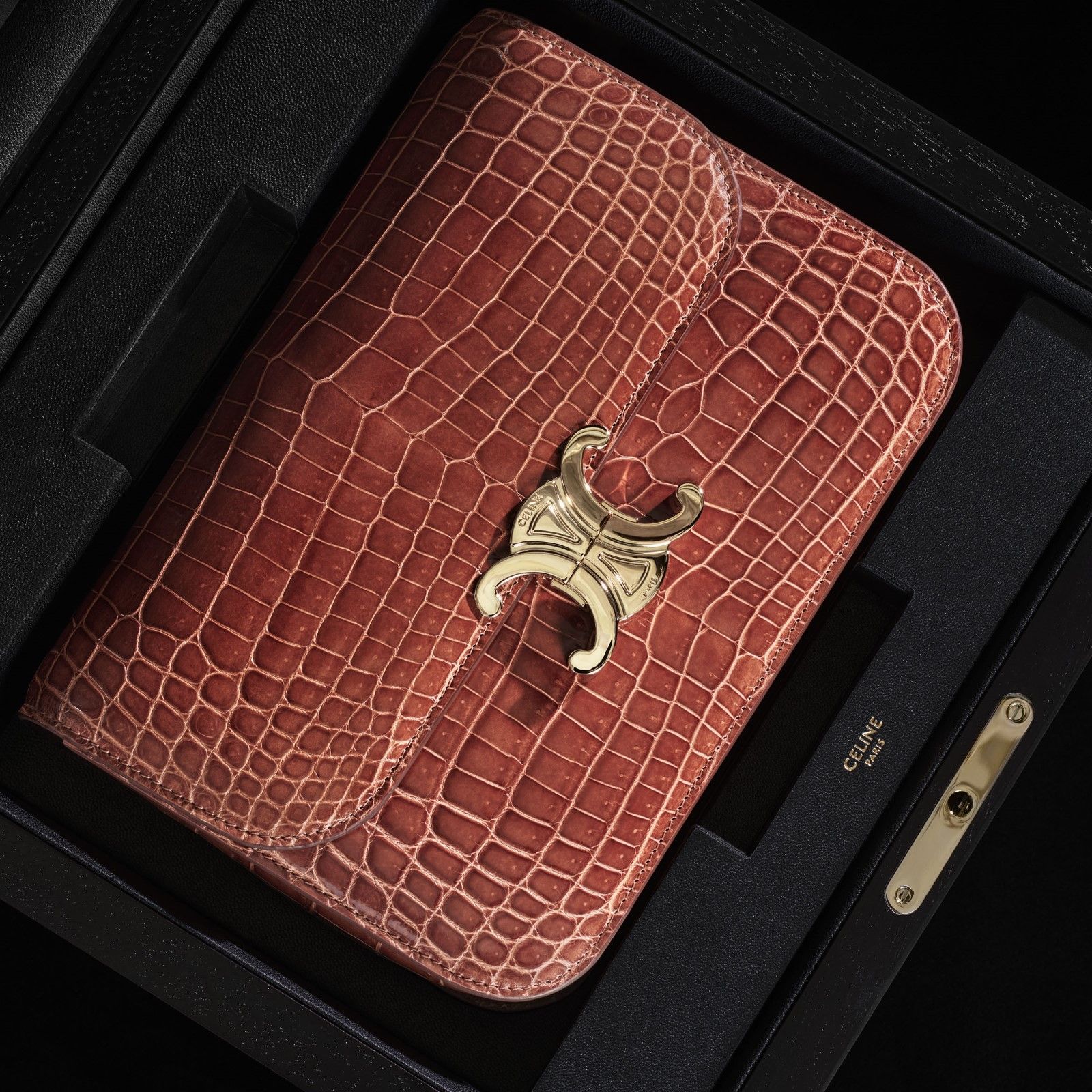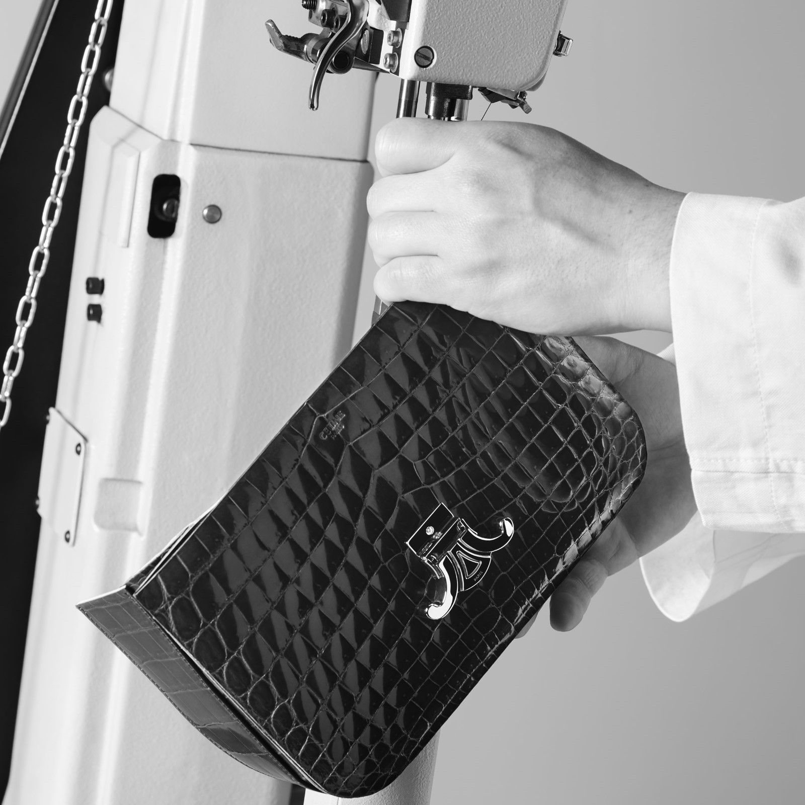 Hedi Slimane sa cos’è il lusso e la nuova linea di Haute Maroquinerie di Celine ne è una perfetta dimostrazione: una collezione di borse e piccola pelletteria prodotte esclusivamente su commissione e da un singolo artigiano. I pezzi della collezione sono composti tutti in pelle di coccodrillo ottenuta da fonti etiche e certificate, con fibbie in oro a 18 carati e diamanti, e custoditi in una scatola in legno di eucalipto laccato. L’idea principale dietro la collezione è quella di esaltare l’artigianalità e offrire «un rapporto con l’oggetto che è insieme culturale, personale e raro» accentuando, ad esempio, il valore della lavorazione manuale della pelle, levigata con pietra d’agata, e tagliata solo a ordine avvenuto. I due principali modelli della collezione, The16 e la Triomphe, richiedono rispettivamente diciassette e dodici ore di lavoro per essere assemblate a mano e includono dettagli come uno specchio foderato in coccodrillo dentro la borsa e le iniziali del committente goffrate nella fodera interna di pelle.