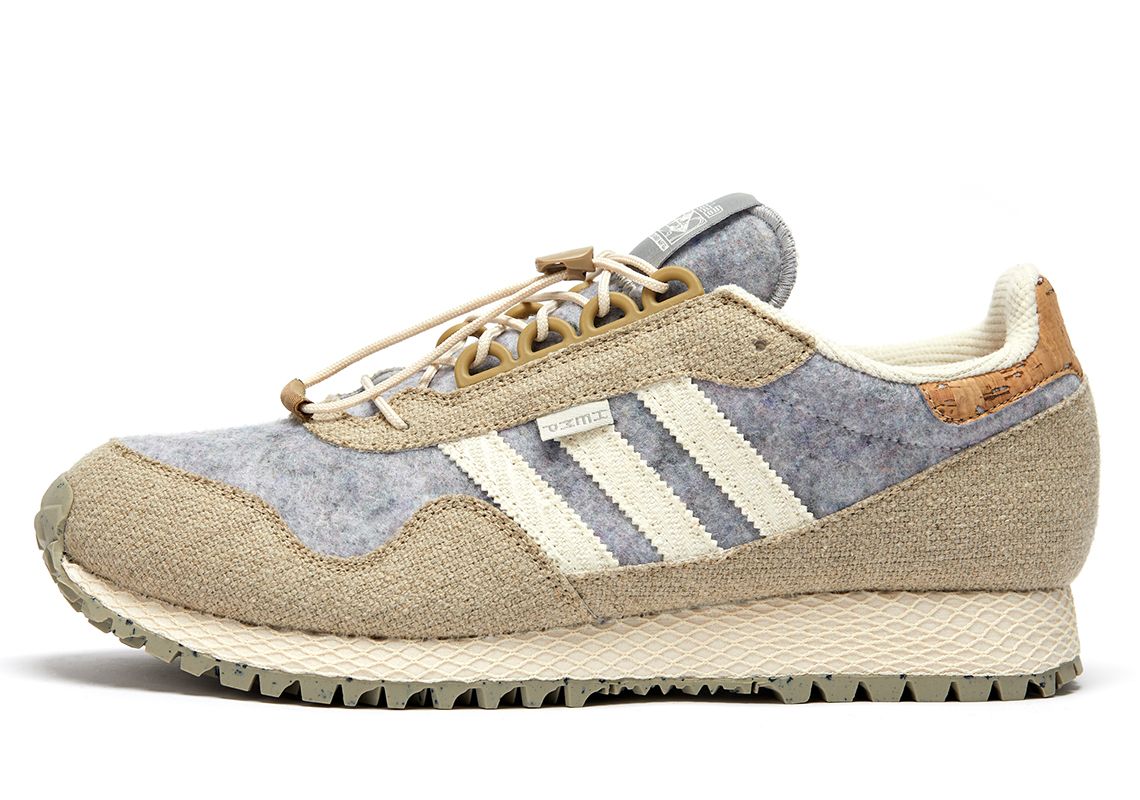 «Ho iniziato il processo di progettazione smontando completamente la adidas Gazelle e studiandone ogni componente, con il team siamo poi passati alla realizzazione dell'obiettivo di estendere il ciclo di vita della scarpa con componenti polifunzionali come ad esempio la linguetta del tallone che si può trasformare in un porta incenso. Inoltre, un altro punto fondamentale è stato il toggle sulle New York, che viene solitamente realizzato in plastica vergine, ma che in questo caso abbiamo lavorato in plastica riciclata ottenuta da scarti di bottiglie e di rifiuti ripesacti dell'oceano» - ha affermato Rebecca Miller, ex-footwear designer di Adidas Originals ed attuale footwear designer di Clarks Originals. Il risultato finale è una tomaia ibrida in canapa, sughero e lana riciclata, fodera in cotone riciclato, con lacci in cotone e fibra di Abaca e una suola in gomma anch’essa riciclata.