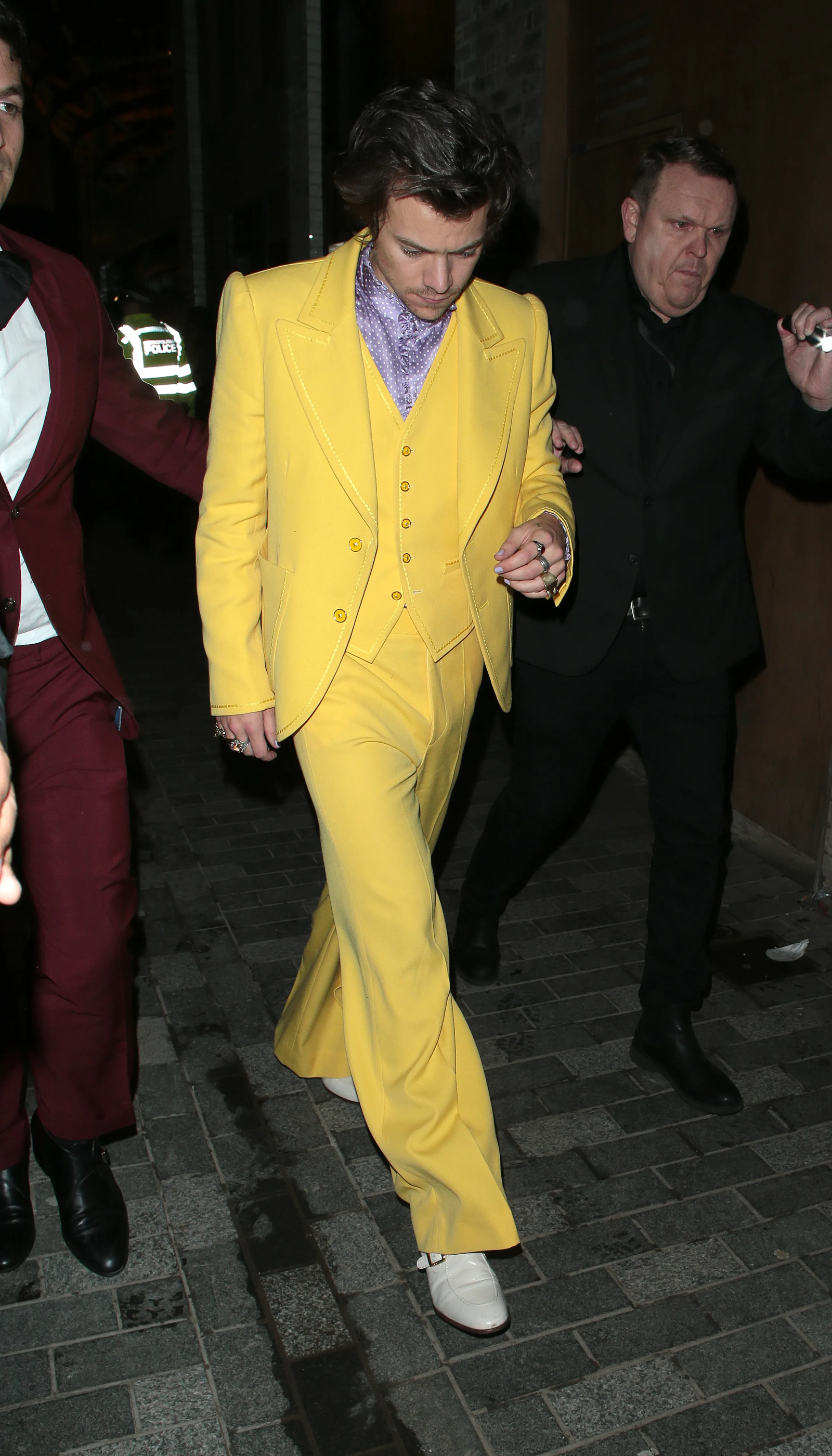 Escludendo pertanto la via dell’assolutismo che abbiamo visto essere il cavallo di battaglia del primo dandy, è possibile rintracciare quantomeno delle narrazioni in grado di replicare delle forme di dandismo. È il caso di celebrity che, seppur coadiuvate da figure come fashion stylist o editor, arrivano a inscenare una performance del dandy. Corpo, abiti e styling si fondono in una risignificazione dell’intero processo creativo del dandy che, pur non rispettandone i principi cardine, concorrono nell’esibizione di un prodotto finale plasmato sullo stesso immaginario. Quando nel 2020 Harry Styles si presenta ai Brit Awards in un completo giallo firmato Marc Jacobs - l’abito tre pezzi appartiene alla collezione womenswear primavera estate 2020 -, è legittimo leggere fra le righe una reference diretta al microcosmo del dandismo. Il cantante britannico è solito infatti proporre dei look Gucci che, da styling indirizzati ora sul camp ora sul glamour, finiscono con il recuperare tratti del dandismo.