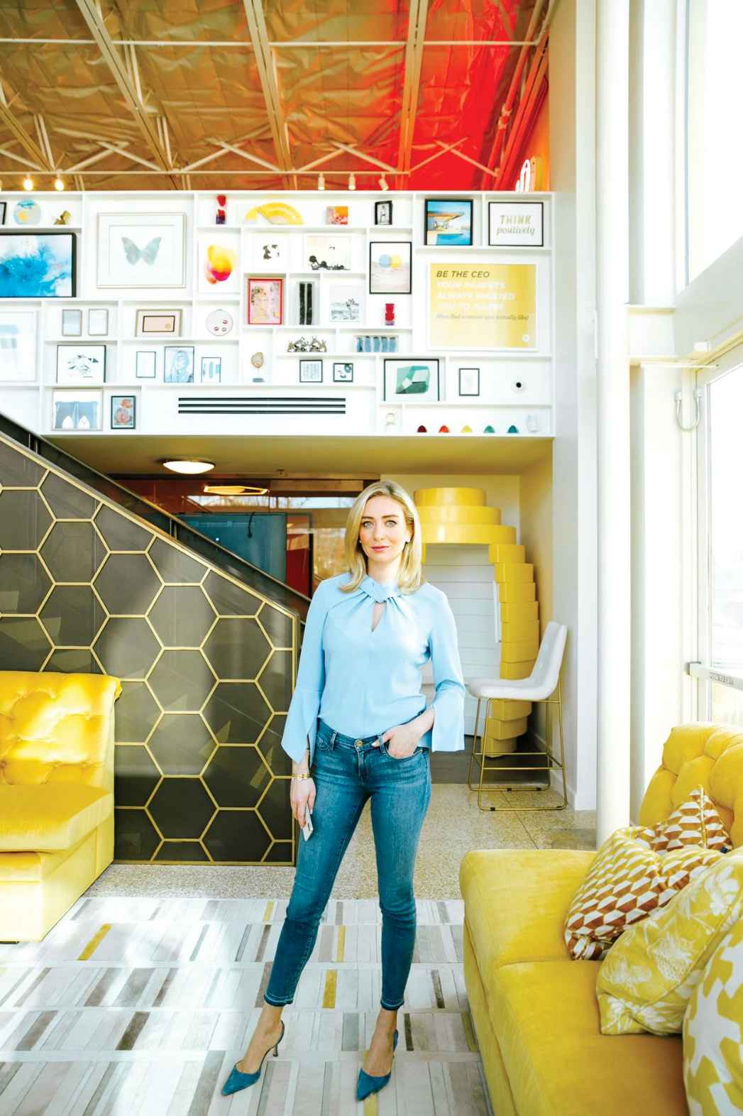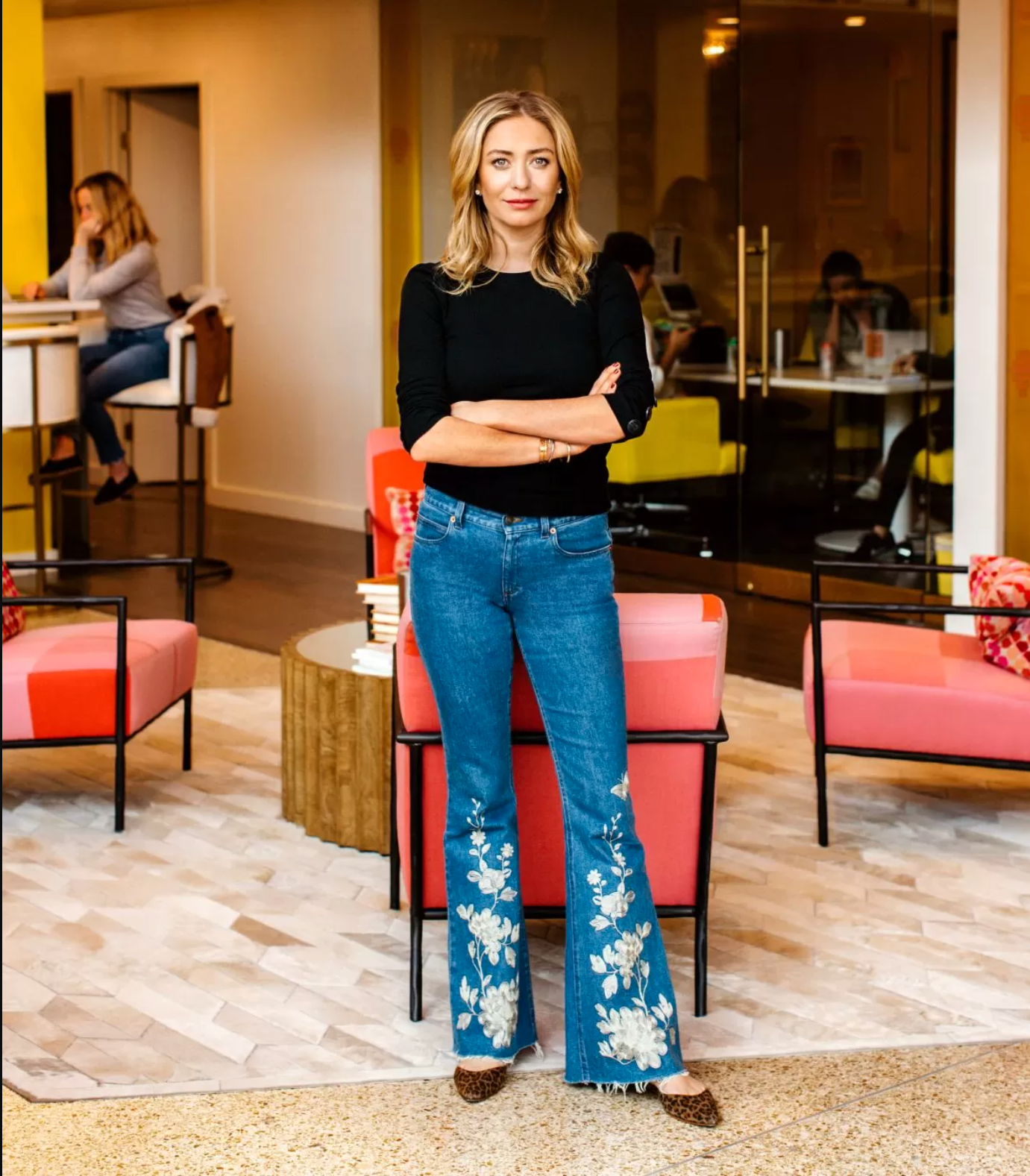 Completi classici ma in colori sgargianti come giallo e lilla, wrap dress in stampe colorate, jeans skinny e tacchi. Whitney Wolfe Herd non ha cambiato solo il mondo delle dating app, lavorando prima come vice presidente del marketing per Tinder e in seguito fondando Bumble, ma portando nel mondo del tech un guardaroba allegro, divertente, formale senza risultare ingessato. Come a dire che le donne imprenditrici fanno sul serio anche senza indossare un completo scuro, o che possono festeggiare la quotazione in borsa di un'azienda con in braccio il figlio di diciotto mesi, come ha fatto lei, che, tra le altre cose, è la miliardaria self-made più giovane al mondo.