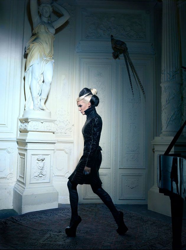 The Queen of Couture Daphne Guinness is photographed by Markus Klinko + Indrani at Le Carmen in Paris for the March issue of Hong Kong Tatler, styled by GK Reid.