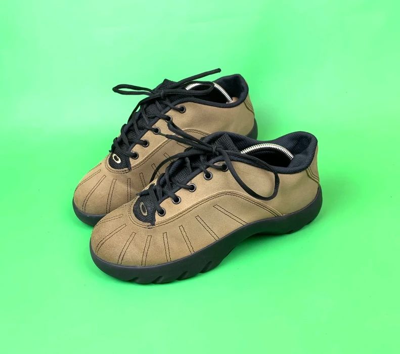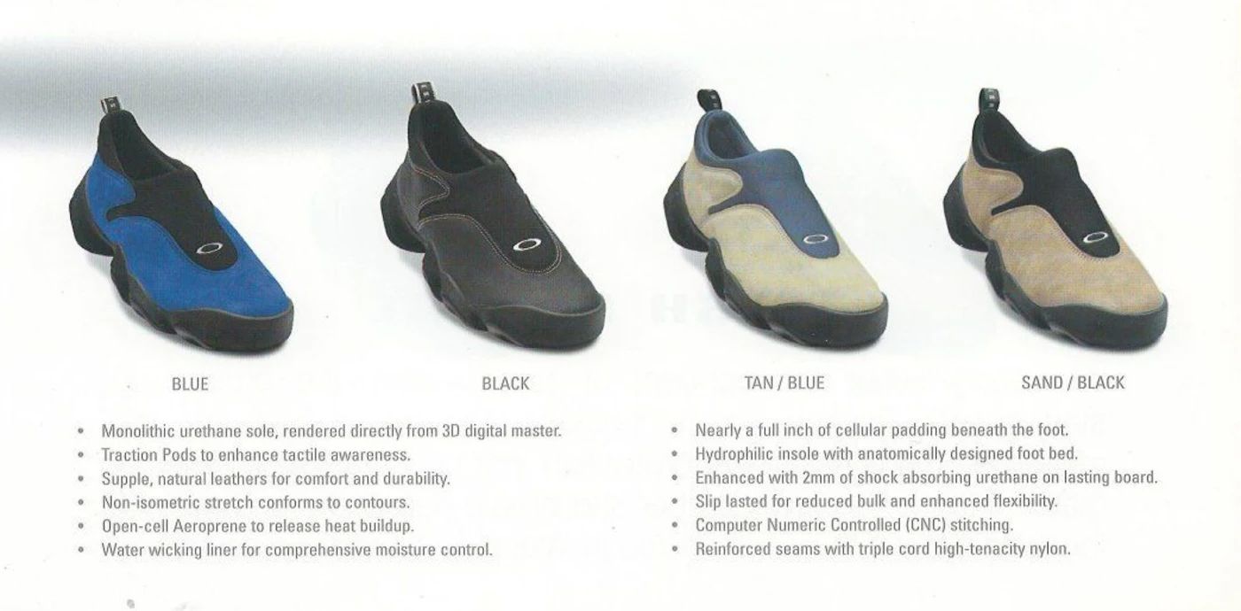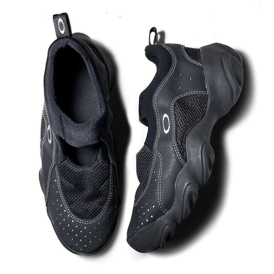 Sono passati circa vent’anni da quanto Ato Boldon si è presentato sul tracciato delle Olimpiadi di Sidney indossando un paio di Oakley Overthetop. la montatura diventata ormai iconica per il suo design tanto folle quanto rivoluzionario. Al di là della fama conquistata online, quel modello rappresenta però solo una piccolissima parte dell’enorme e sconfinato archivio di Oakley, un mondo in cui l’eyewear costituisce solo la proverbiale punta dell’iceberg. Nato nel 1975 dalla mente di Jim Jannard, ex venditore di componenti per moto, prima di vendere occhiali da sole Oakley vendeva manopole da moto con il nome The Oakley Drip durante eventi e raduni di appassionati. Fin da subito però la visione di Jannard è stata in grado di contraddistinguere l’ascesa di Oakley, guadagnando nel corso di pochi anni una visibilità tale da arrivare fino agli occhi, letteralmente, di Michael Jordan e Tom Cruise. «Di natura Oakley ha sempre potuto innovare perché non ha mai avuto paura di rischiare» ci ha detto Elia Fornari, vice-presidente di Brain Dead che con Oakley ha da poco lanciato l’Oakley Factory Team, il progetto pensato per rielaborare l’archivio del brand attraverso una serie di drop che hanno visto come prima protagonista l’iconica Flesh, silhouette nata a giugno del 2000 e diventata famosa soprattutto per il suo design ibrido che univa una sneaker a una scarpa da trekking.