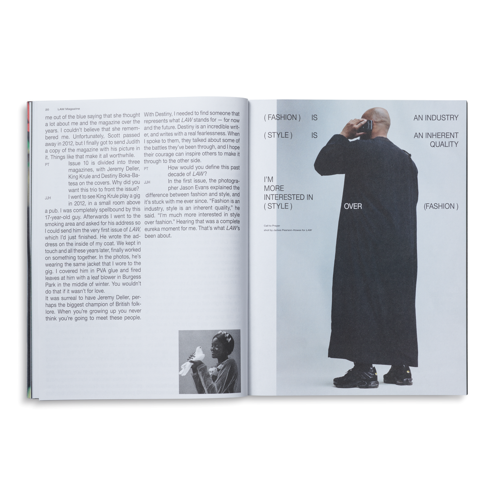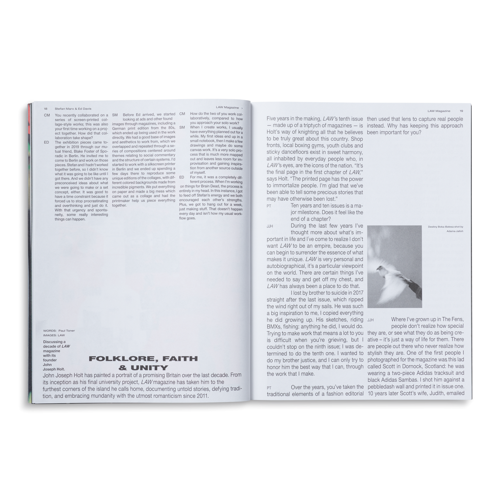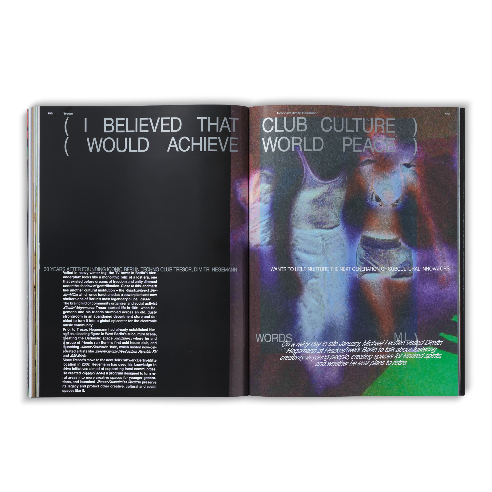 Il numero include anche interviste agli artisti Stefan Marx e Ed Davis, alla fotografa hip hop Sue Kwon che parlerà del suo ultimo libro Rap is Risen, al pensatore politico Mike Davis, alla musicista londinese Lauren Duffus, e a Dimitri Hegemann, founder di Tresor. Inoltre il magazine includerà due editoriali dedicati alla collezione SS22 di Carhartt WIP scattati a New York da Rahim Fortune e T-Bone Fletcher.