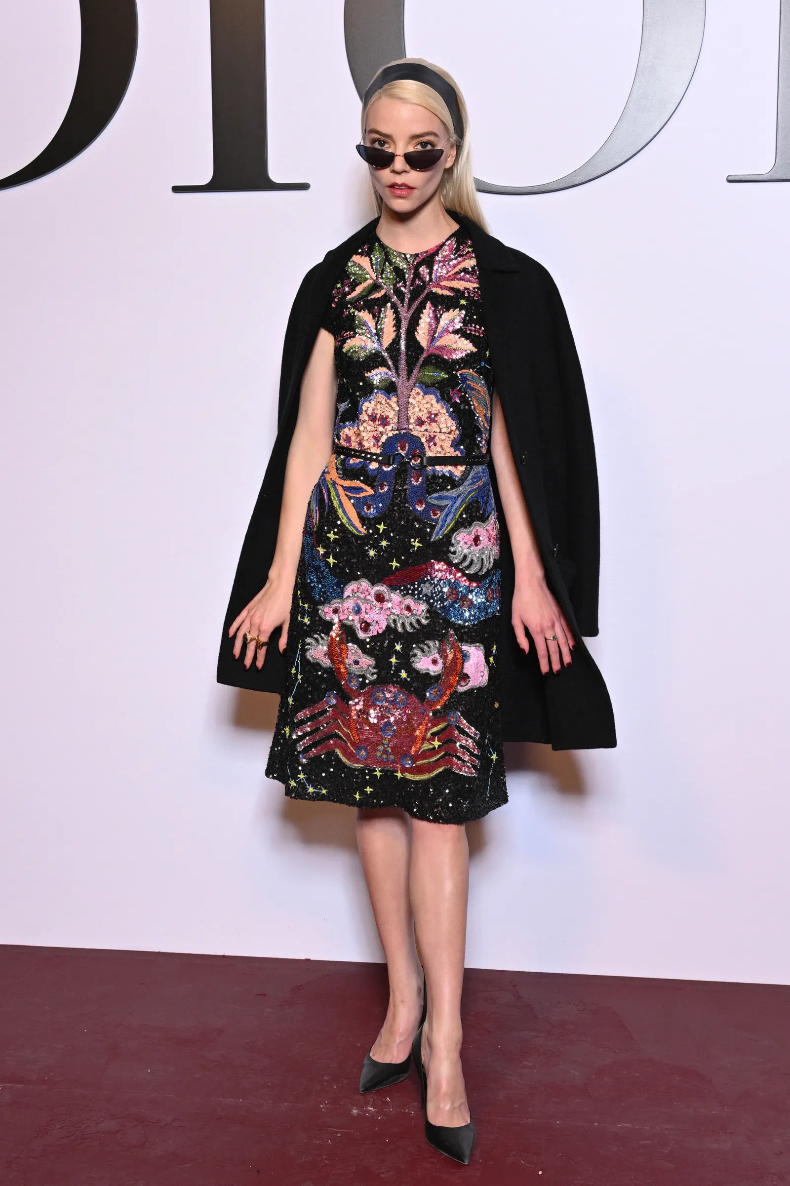 Per restare nel mondo della moda, invece, l’appeal dell’occhiale da sole al chiuso è rimasto quasi intatto dagli anni ’60 a oggi – tra le figure che li hanno indossati di recente, Anna Wintour a parte, ci sono Jacob Elordi agli ultimi show di Bottega Veneta e di Saint Laurent, Lewis Hamilton e Maluma allo show FW22 di Valentino; Salma Hayek e Isabelle Huppert da Balenciaga; Anya Taylor Joy all’ultimo show di Dior; Jared Leto in front row da Gucci, Kim Kardashian da Prada e molti altri. Proprio un occhiale da sole indossato al chiuso, quello di Tiffany & Co. che Pharrell Williams aveva all’ultimo show di Kenzo, ha pure suscitato una mezza polemica quando venne fuori che il modello era una replica (marketizzata come un custom model) di un paio di occhiali di smeraldo e diamanti dell’antico impero Mughal venduti da Sotheby’s.