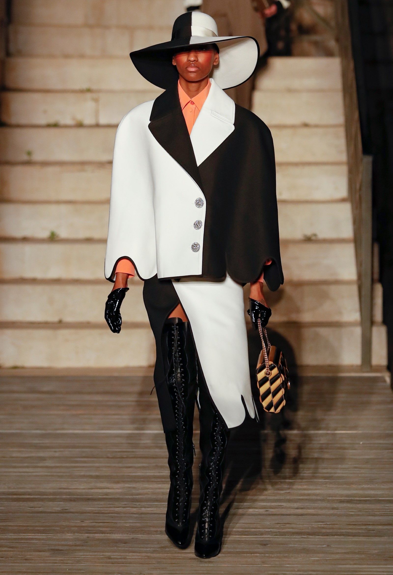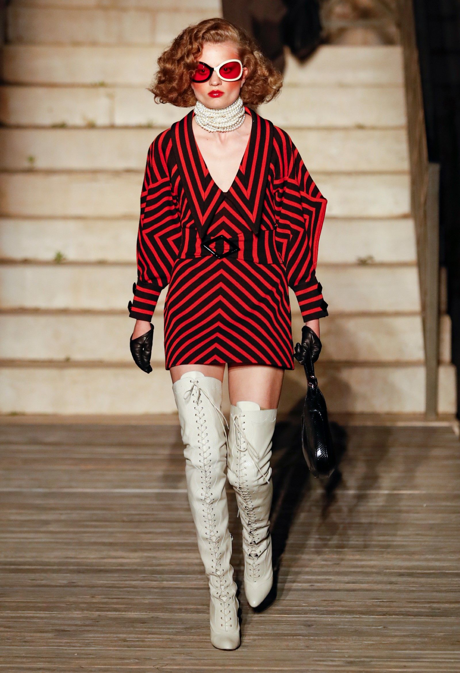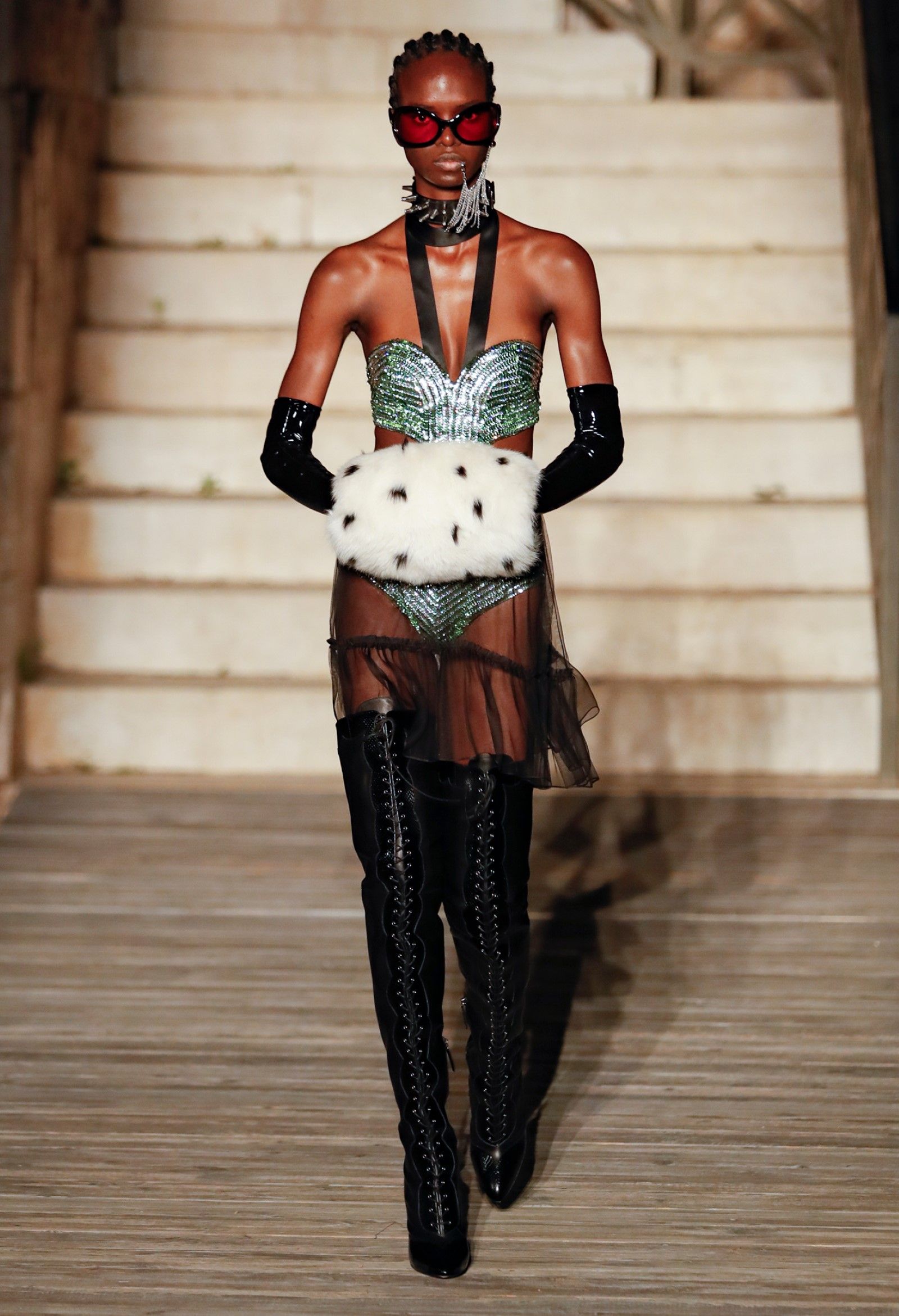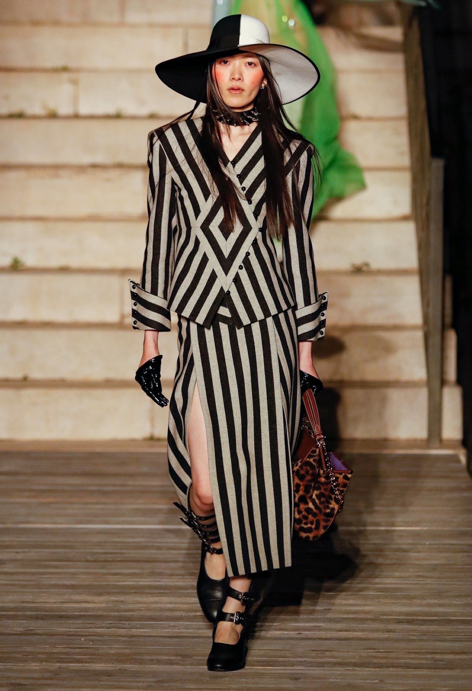 Scorrendo i look si può avere un’idea di questo campionario di personaggi romantici: principesse dalle lunghe gonne, nobildonne in cappe d’ermellino, arlecchini elisabettiani, figlie dei fiori vestite di jeans scintillanti, una modella aveva un abito nero che omaggiava icone horror anni ’50 come Morticia Addams e Vampira, un’altra indossava un costume a metà tra la Grecia e l’Impero Ottomano, c’erano starlet anni ’50 in lunghe gonne da sirena, ragazze nude sotto un velo che sembravano la Venere di Botticelli, rimandi a Crudelia DeMon, ai costumi cinematografici dei classici noir – un look nello specifico, il 29, abbinava un abito in stile anni ’20 con una corona con pendenti in stile bizantino che era curiosamente simile al camaleuco di Costanza d'Aragona, la moglie di Federico II che costruì proprio Castel del Monte, e che oggi è conservato a Palermo.