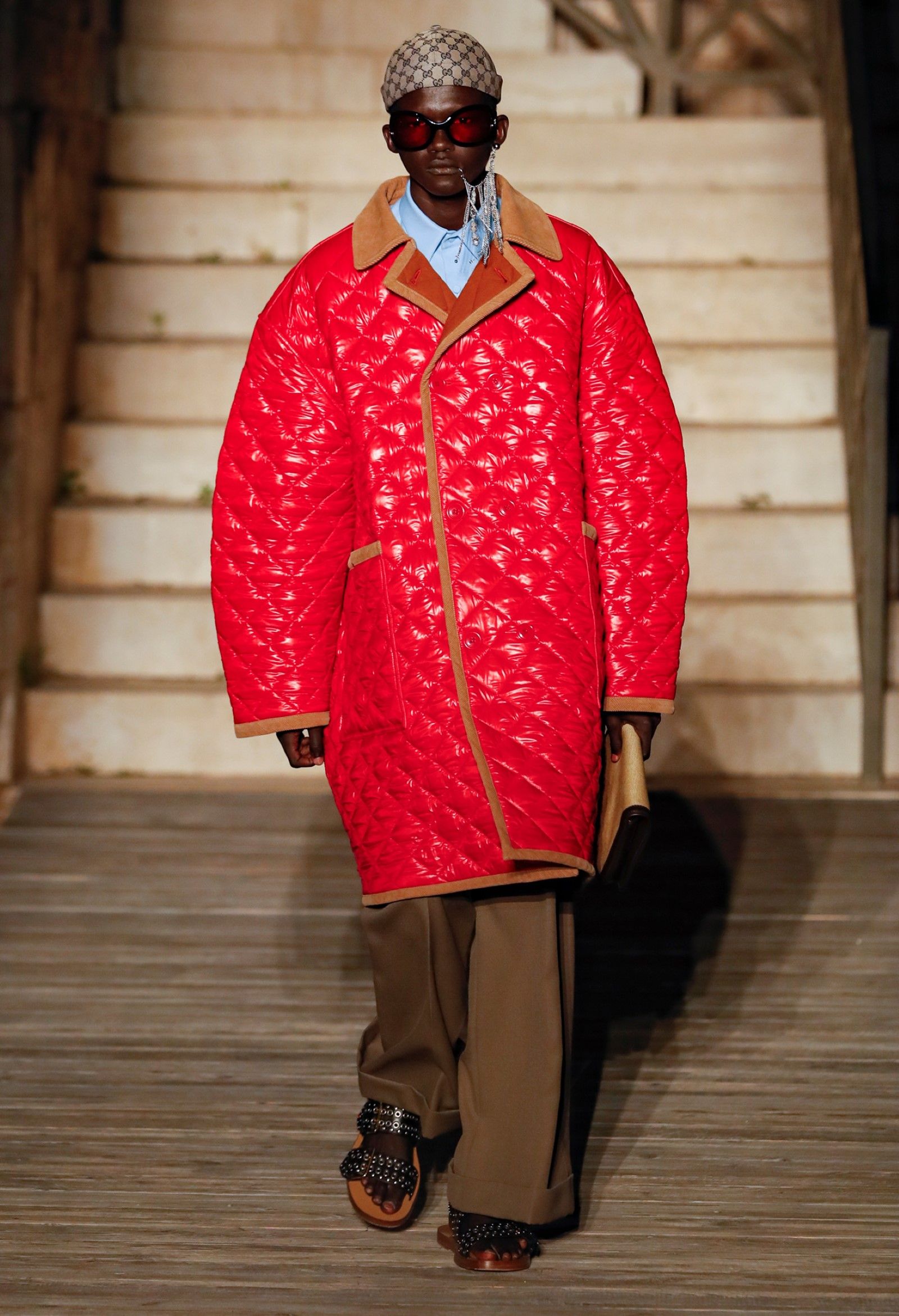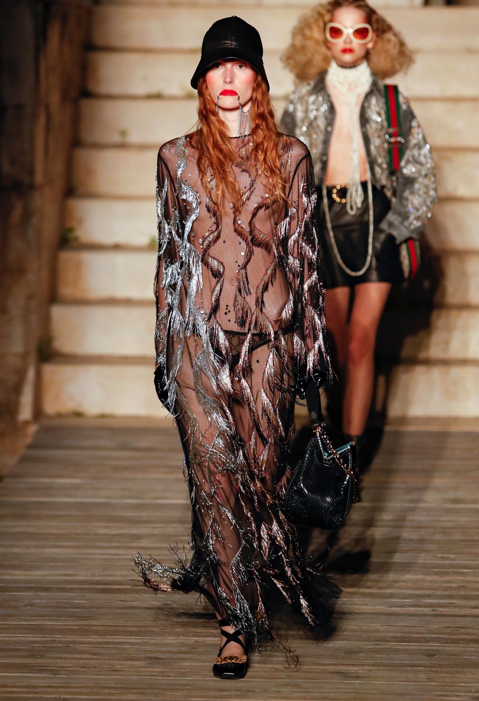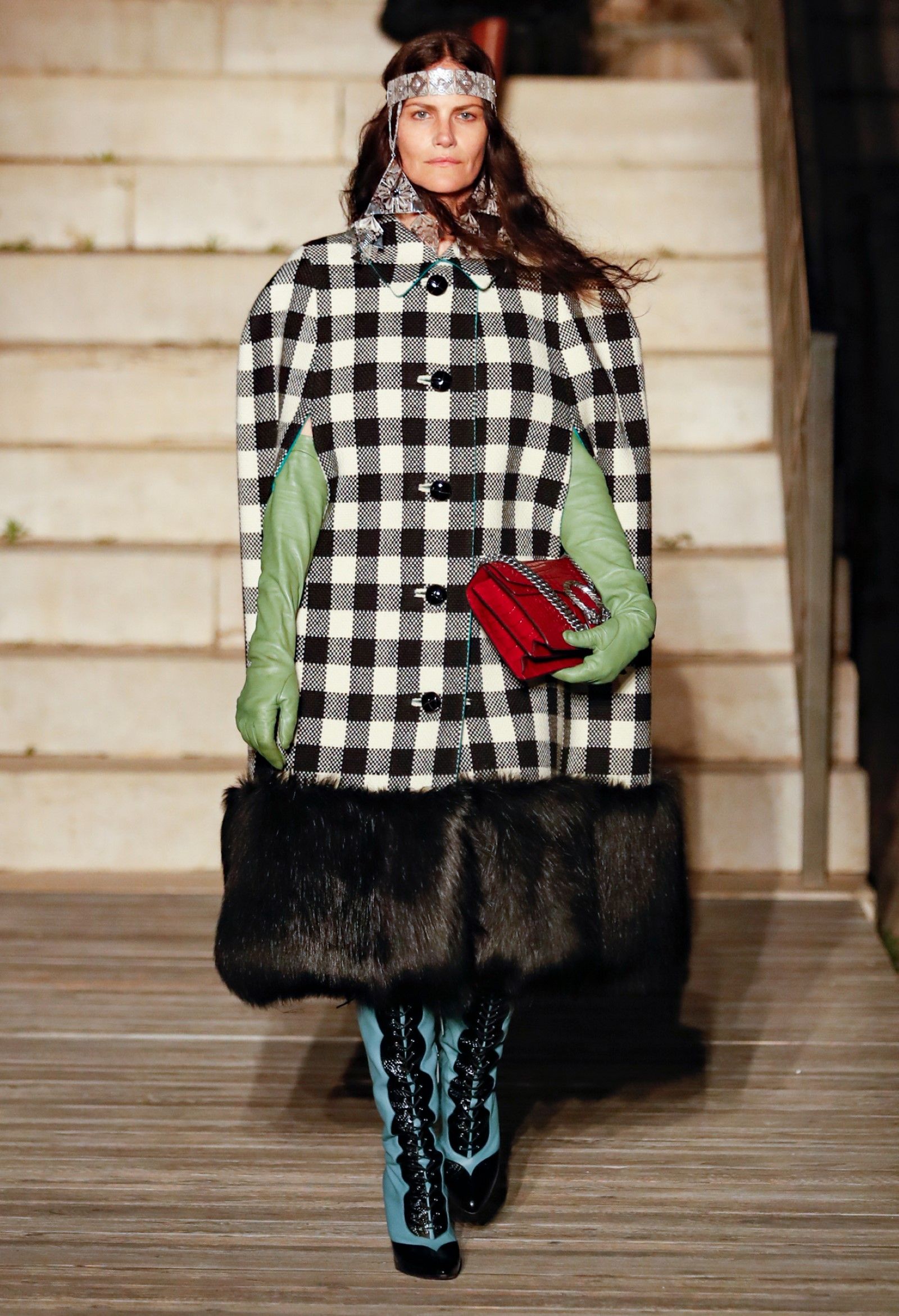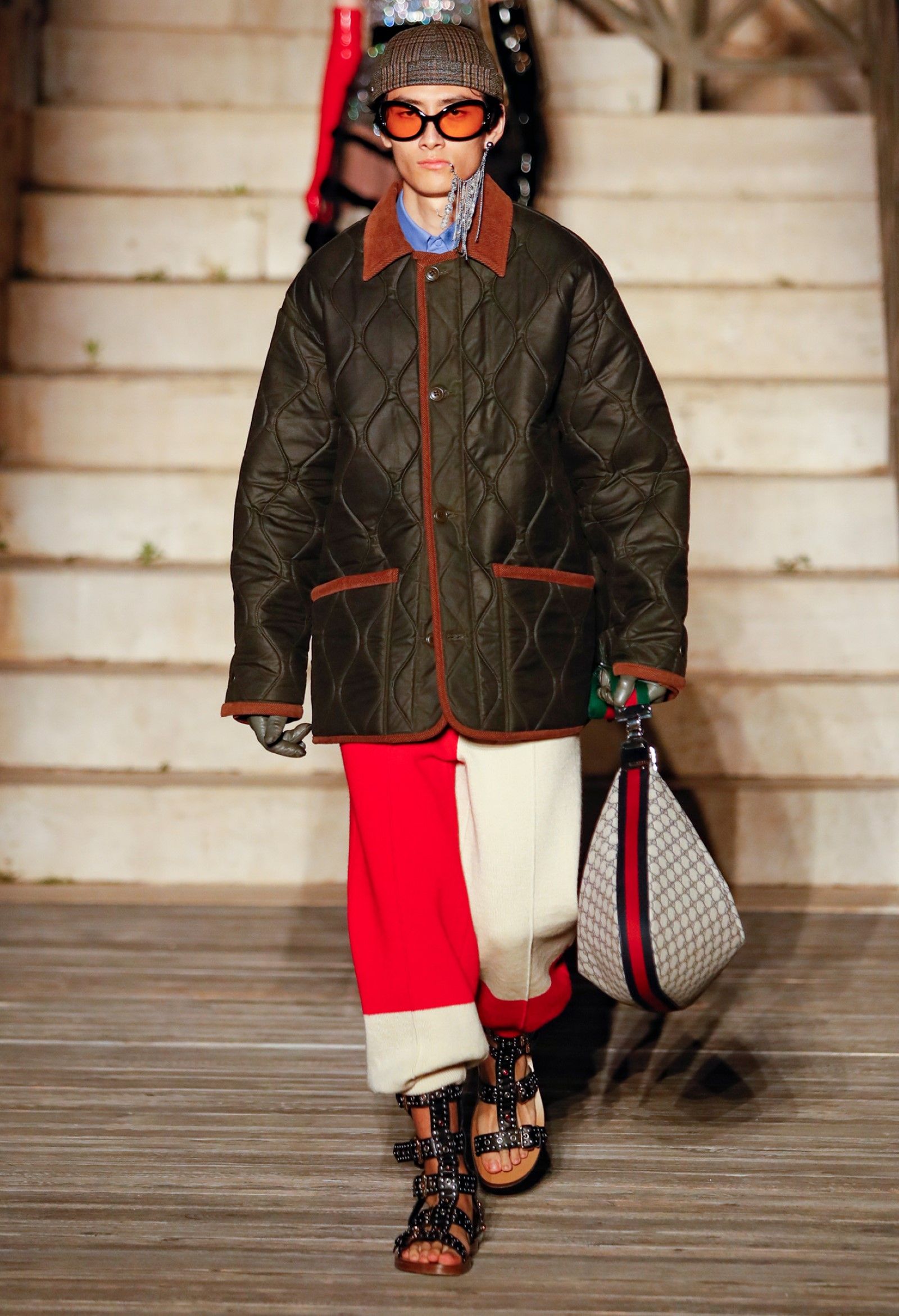 È chiaro, potremmo aggiungere, che Michele si è trovato pienamente a suo agio nel creare questa nuova collezione, sbizzarrrendosi insieme al suo team per esplorare non solo location diverse ma anche messe in scena spettacolari – che sono poi il fondale migliore per lo specifico tipo di reverie in cui Michele si è specializzato. Questa collezione, ad esempio, proprio come Gucci Love Parade, possedeva un respiro più ampio, un numero di look superiore al centinaio e un qualcosa di monumentale: tutti segni di una fantasia che si realizza non solo per merito della collezione in sé, ma anche della location, della vision che la ispira, della sintonia delle tanti parti mobili che stanno dietro al “momento” dello show come punto più alto della comunicazione/espressione del brand. Parlando con WWD, Michele ha paragonato la moda a «un grande coro», un richiamo alla collettività, ai vari elementi che, per citare il salmo, convenerunt in unum – esattamente come i molti astri diversi che compongono la medesima costellazione.