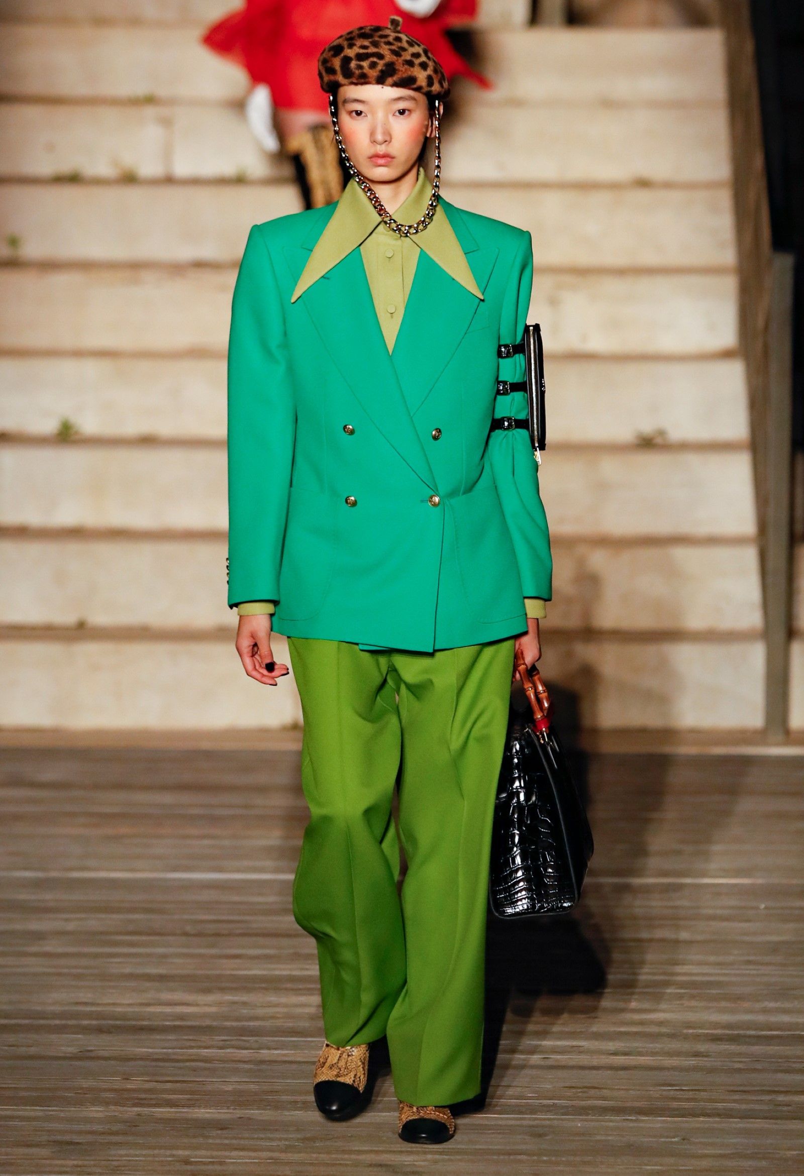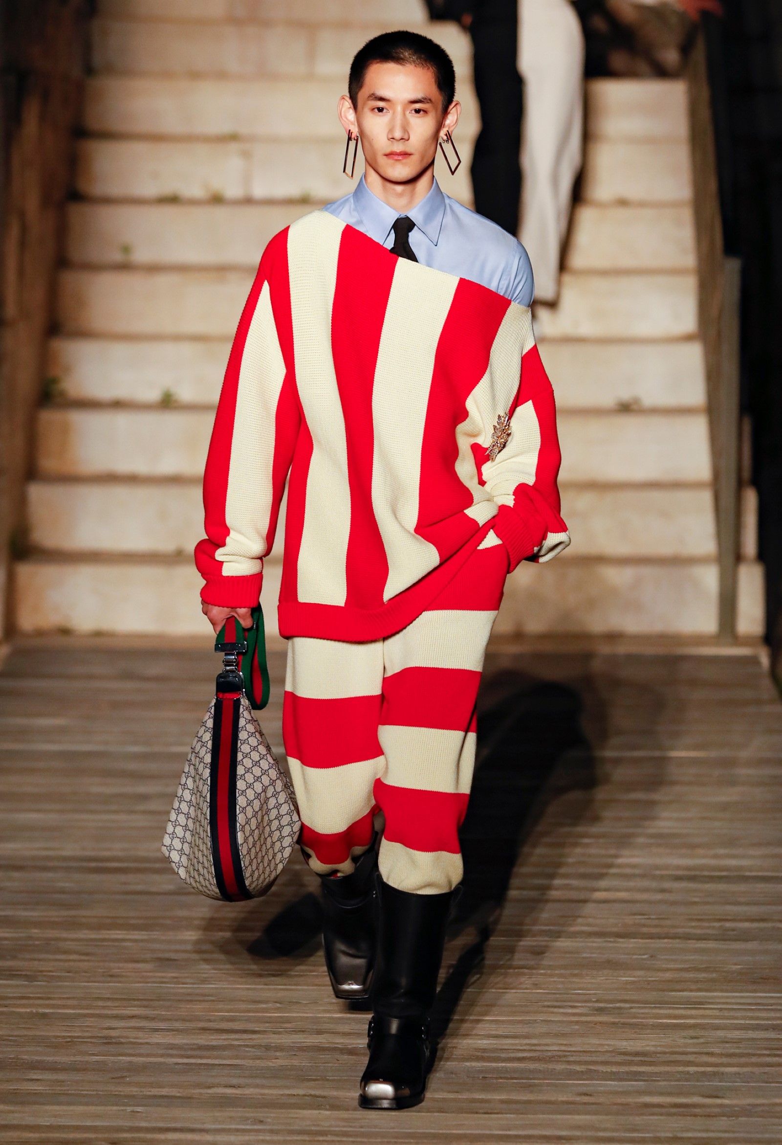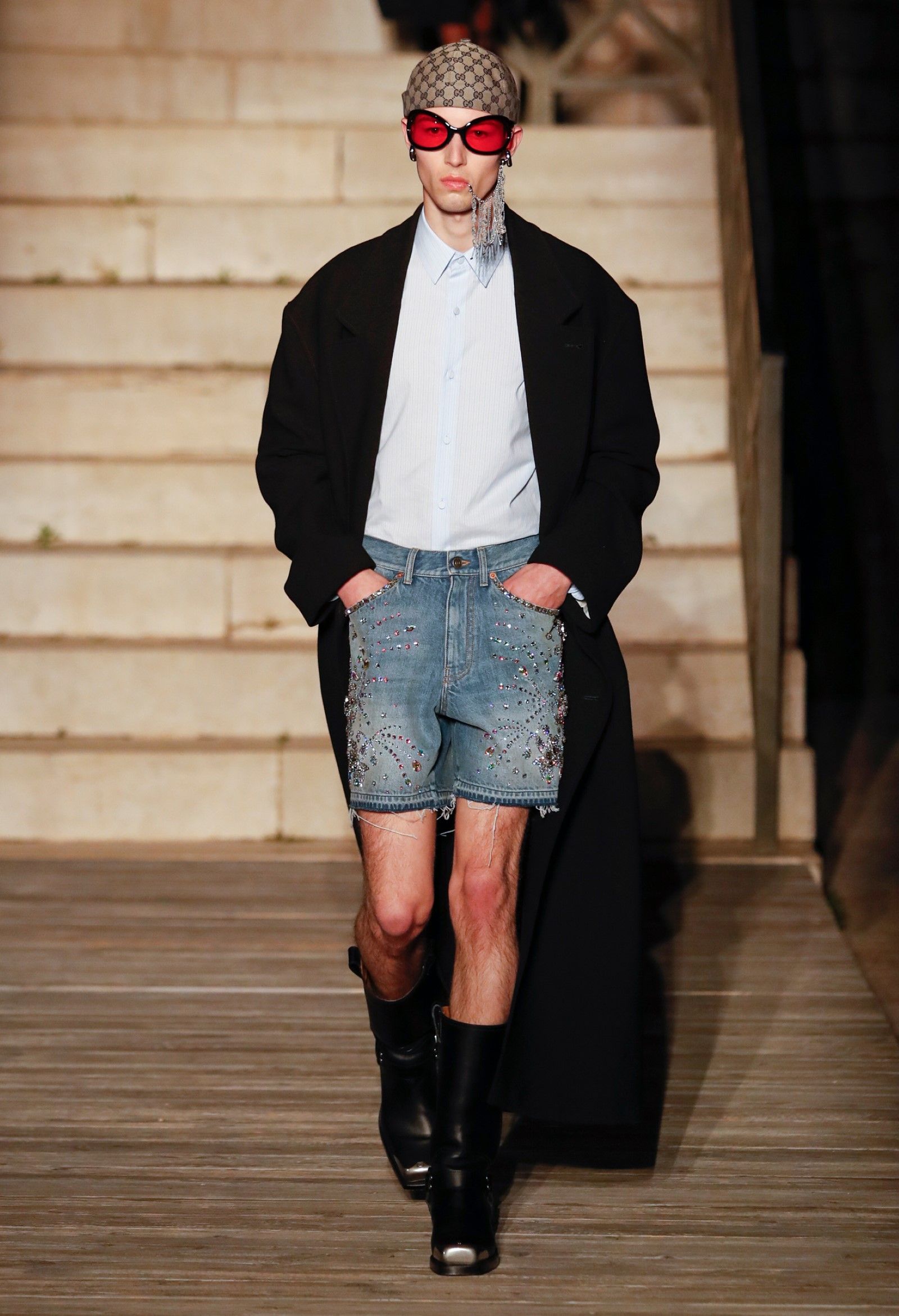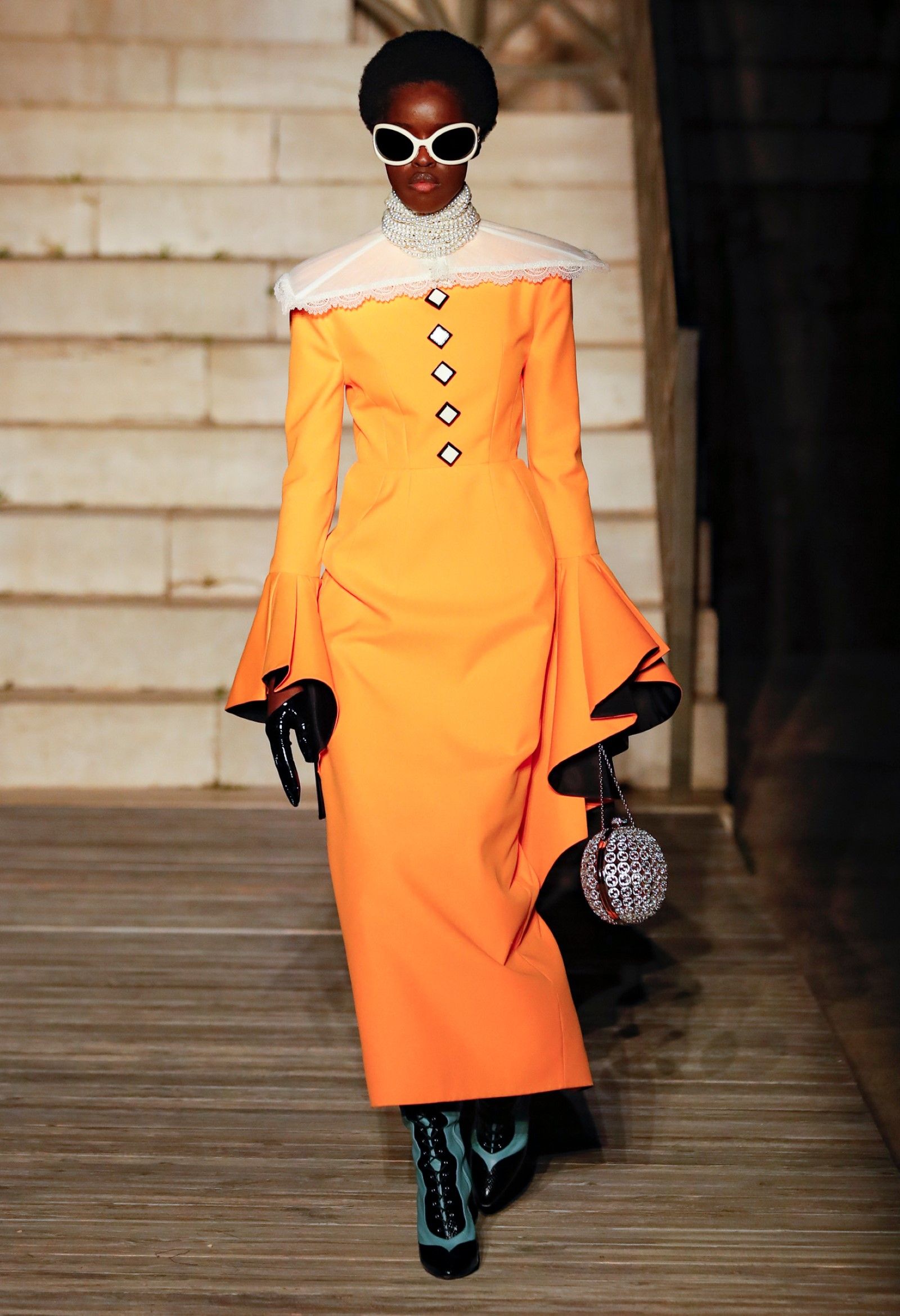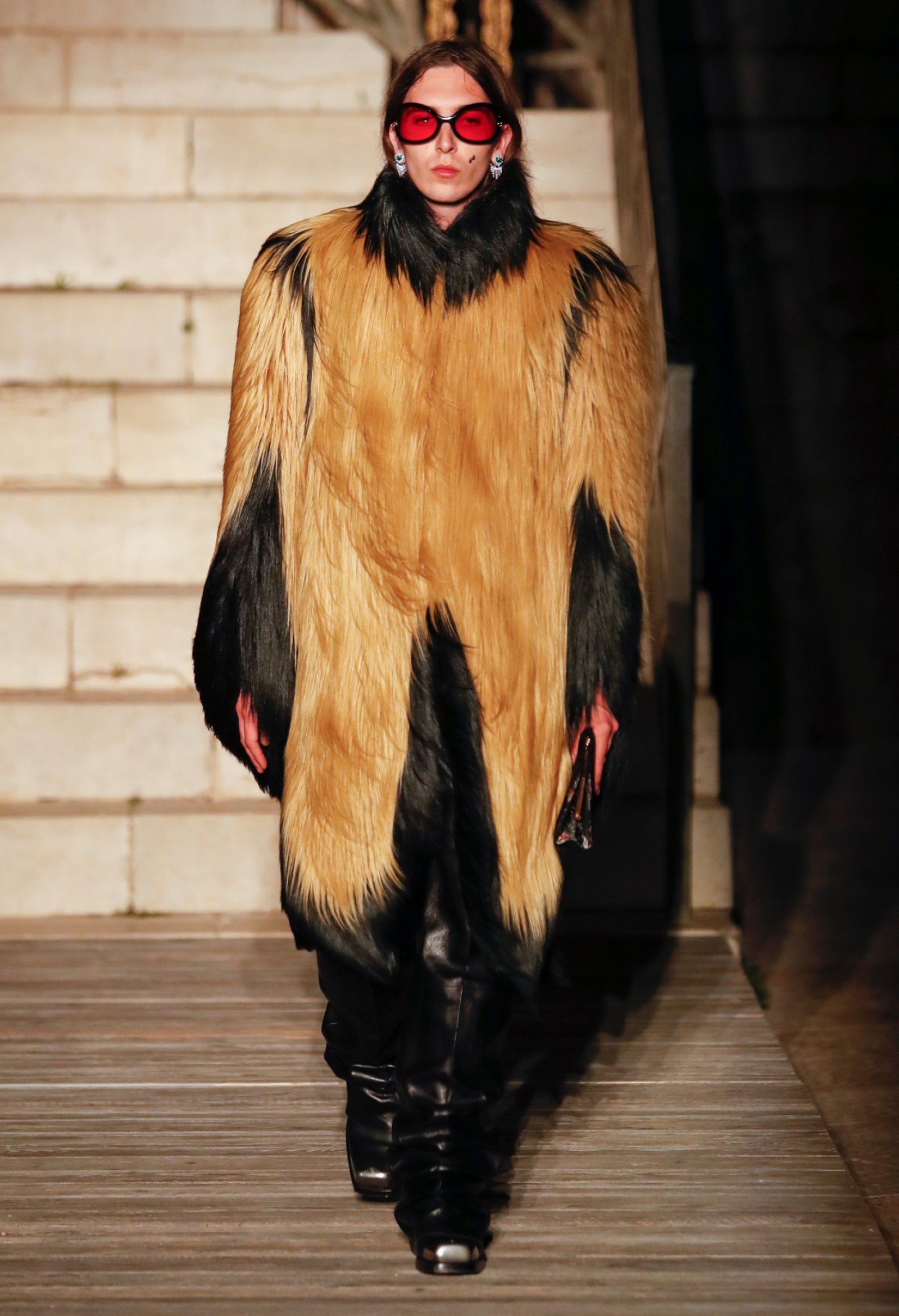È chiaro, potremmo aggiungere, che Michele si è trovato pienamente a suo agio nel creare questa nuova collezione, sbizzarrrendosi insieme al suo team per esplorare non solo location diverse ma anche messe in scena spettacolari – che sono poi il fondale migliore per lo specifico tipo di reverie in cui Michele si è specializzato. Questa collezione, ad esempio, proprio come Gucci Love Parade, possedeva un respiro più ampio, un numero di look superiore al centinaio e un qualcosa di monumentale: tutti segni di una fantasia che si realizza non solo per merito della collezione in sé, ma anche della location, della vision che la ispira, della sintonia delle tanti parti mobili che stanno dietro al “momento” dello show come punto più alto della comunicazione/espressione del brand. Parlando con WWD, Michele ha paragonato la moda a «un grande coro», un richiamo alla collettività, ai vari elementi che, per citare il salmo, convenerunt in unum – esattamente come i molti astri diversi che compongono la medesima costellazione.