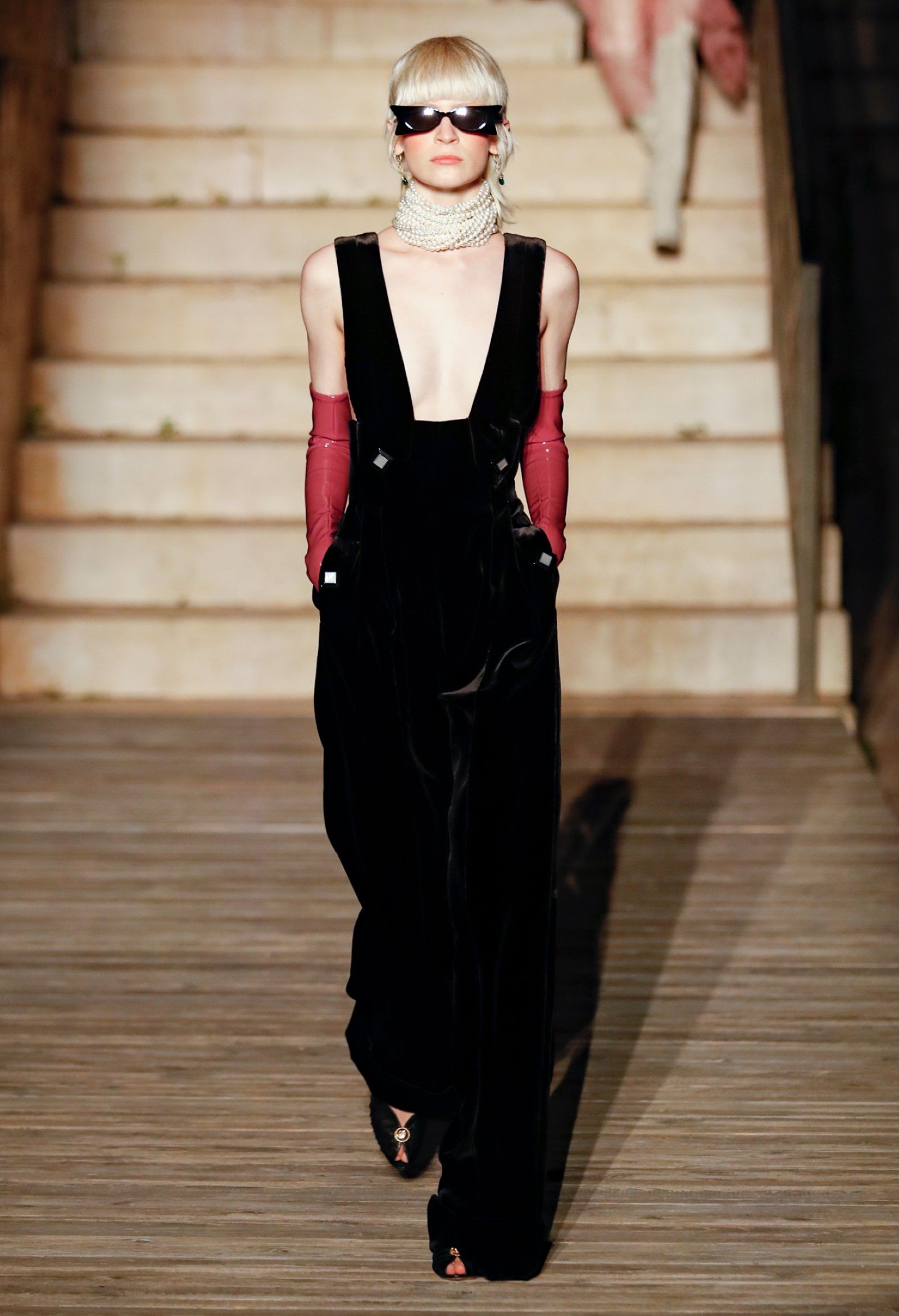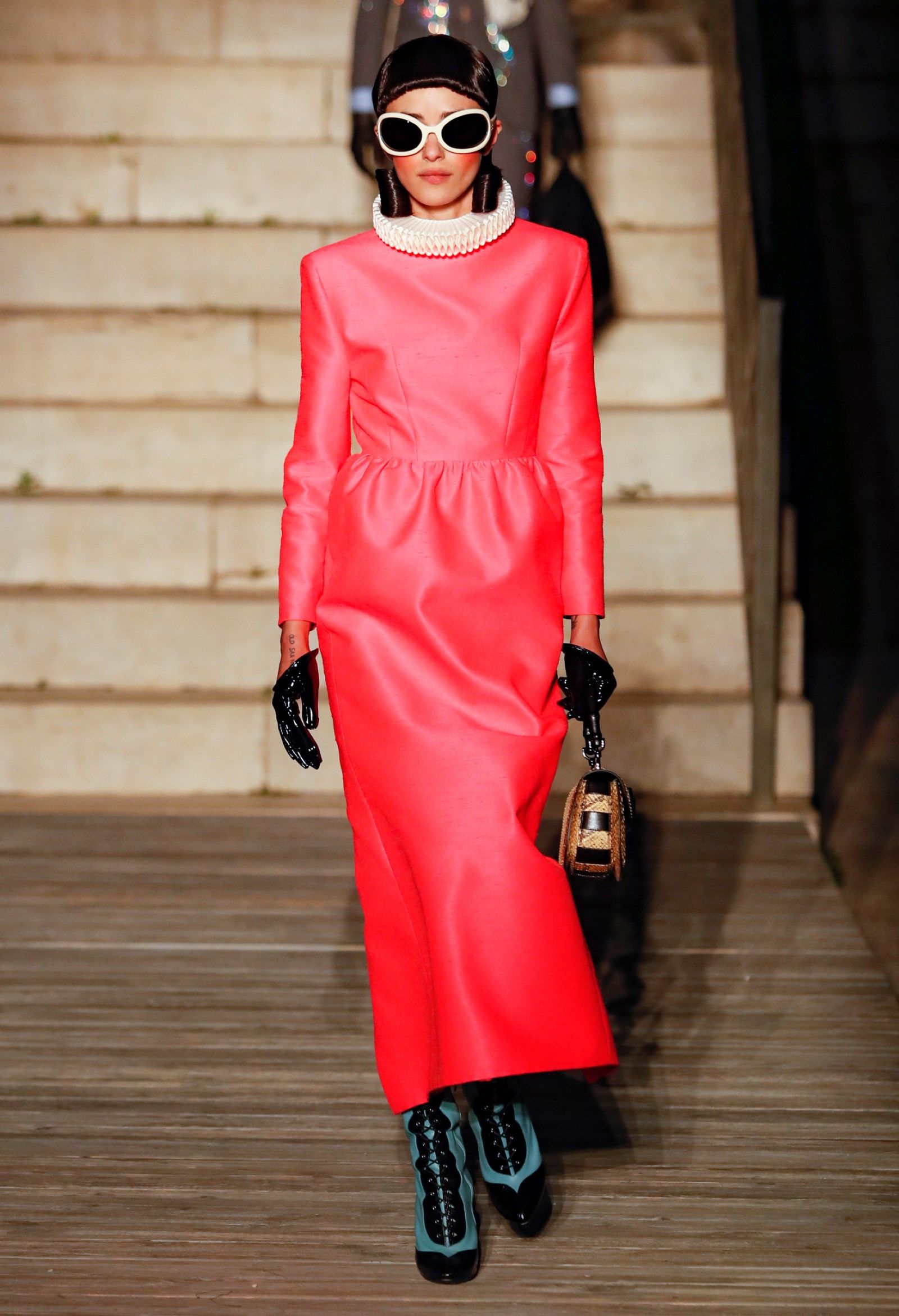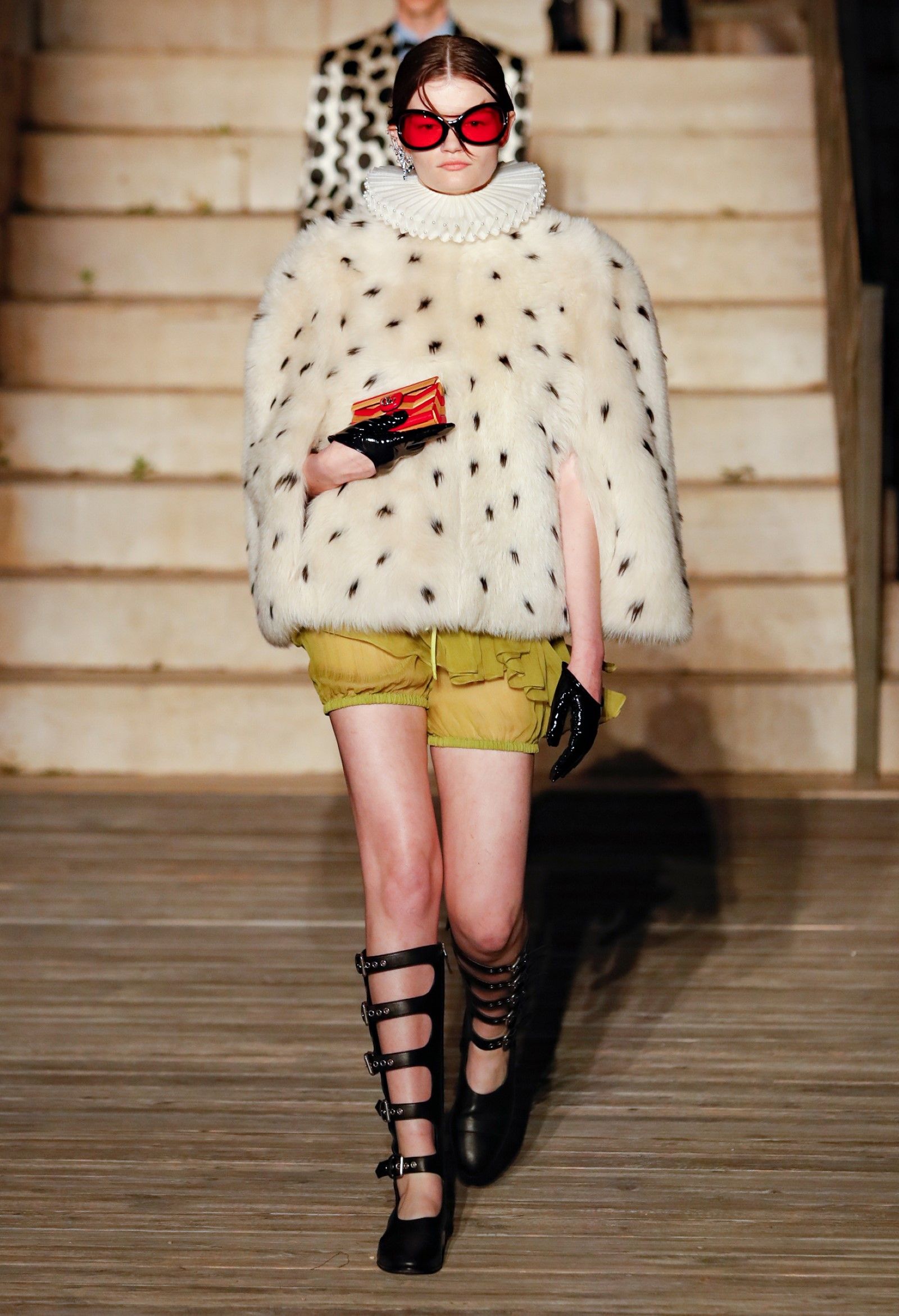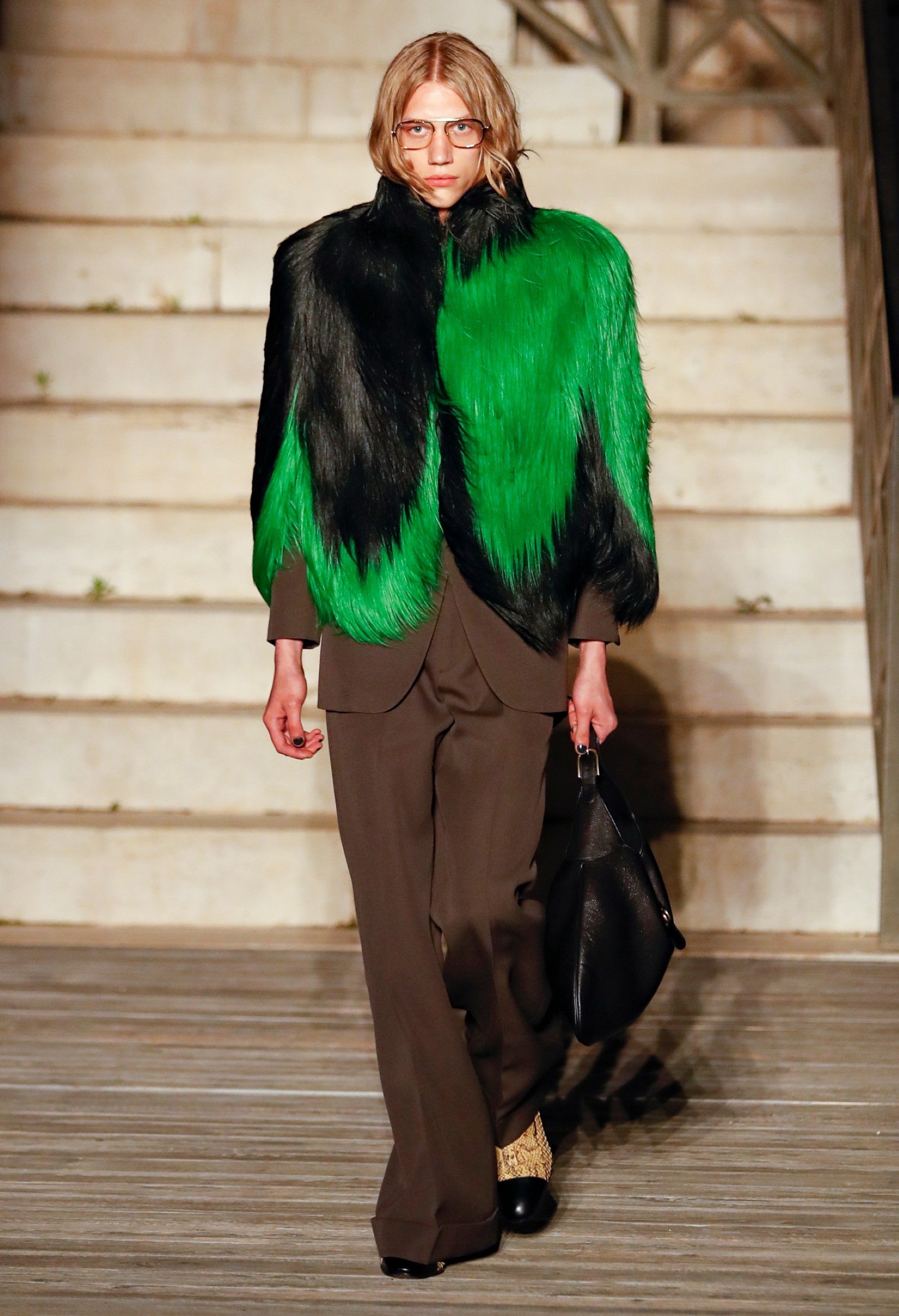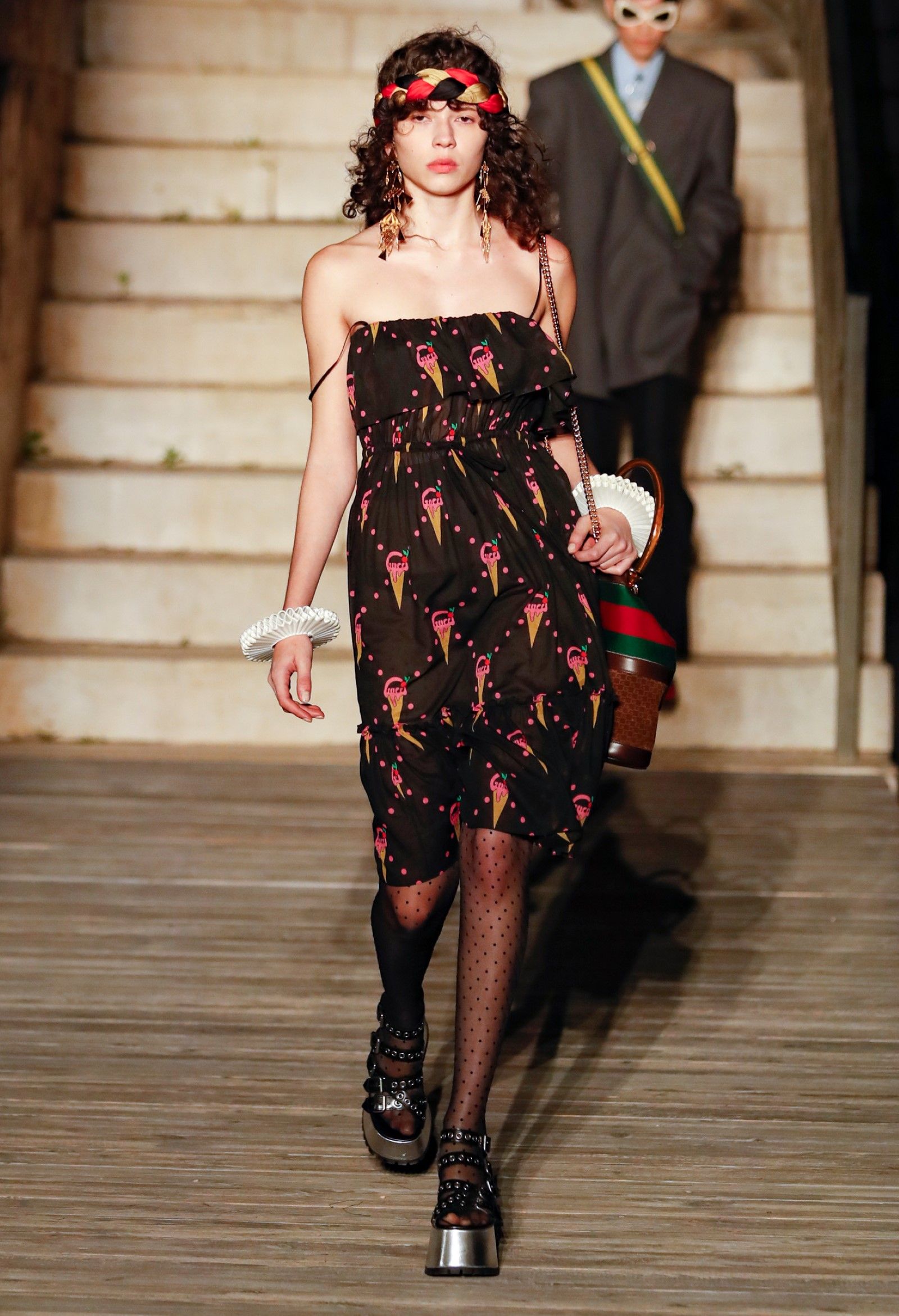 È chiaro, potremmo aggiungere, che Michele si è trovato pienamente a suo agio nel creare questa nuova collezione, sbizzarrrendosi insieme al suo team per esplorare non solo location diverse ma anche messe in scena spettacolari – che sono poi il fondale migliore per lo specifico tipo di reverie in cui Michele si è specializzato. Questa collezione, ad esempio, proprio come Gucci Love Parade, possedeva un respiro più ampio, un numero di look superiore al centinaio e un qualcosa di monumentale: tutti segni di una fantasia che si realizza non solo per merito della collezione in sé, ma anche della location, della vision che la ispira, della sintonia delle tanti parti mobili che stanno dietro al “momento” dello show come punto più alto della comunicazione/espressione del brand. Parlando con WWD, Michele ha paragonato la moda a «un grande coro», un richiamo alla collettività, ai vari elementi che, per citare il salmo, convenerunt in unum – esattamente come i molti astri diversi che compongono la medesima costellazione.