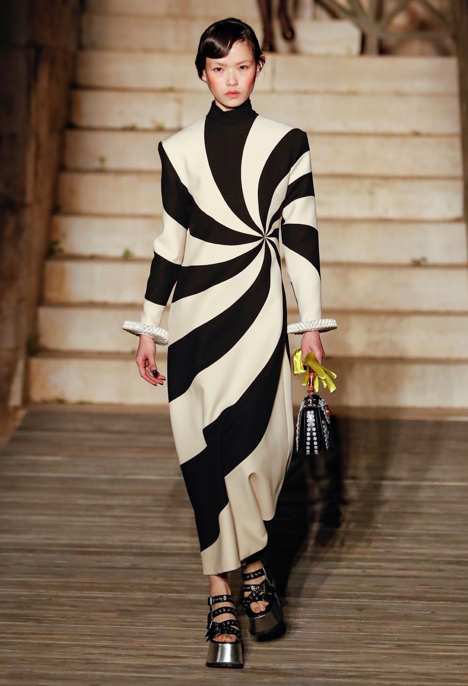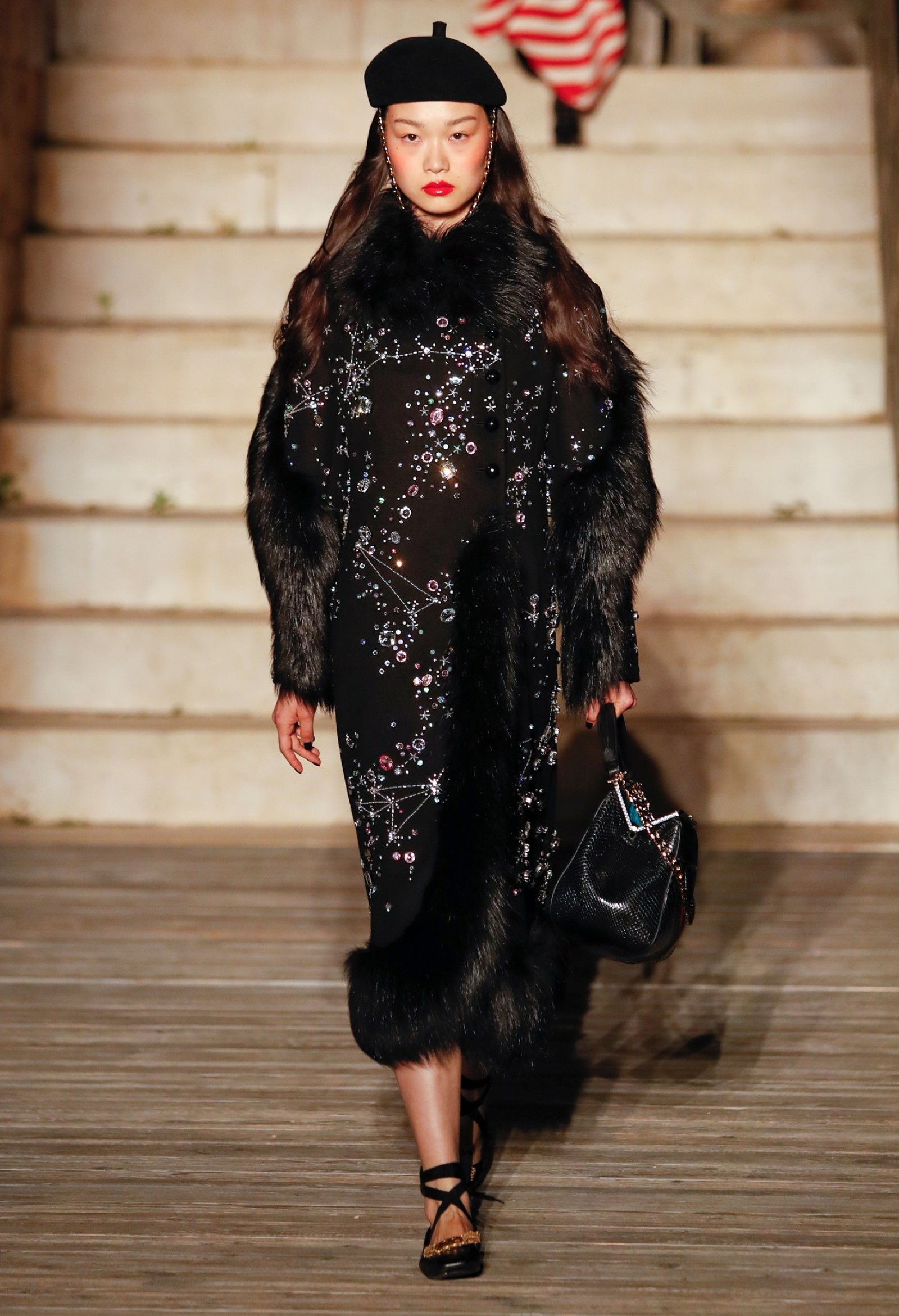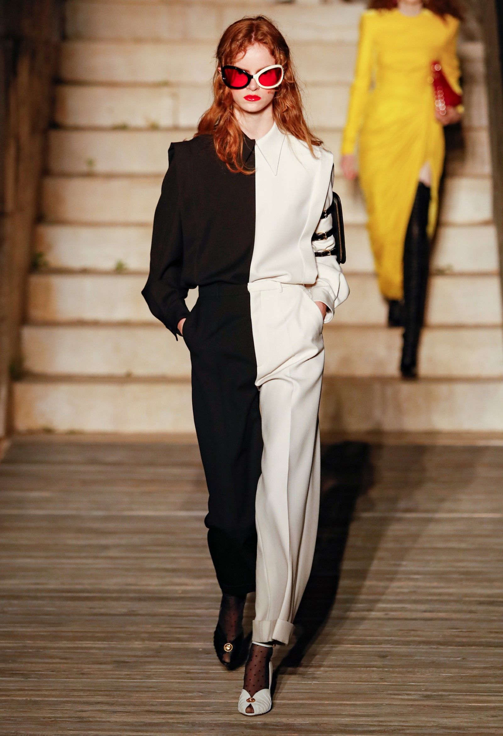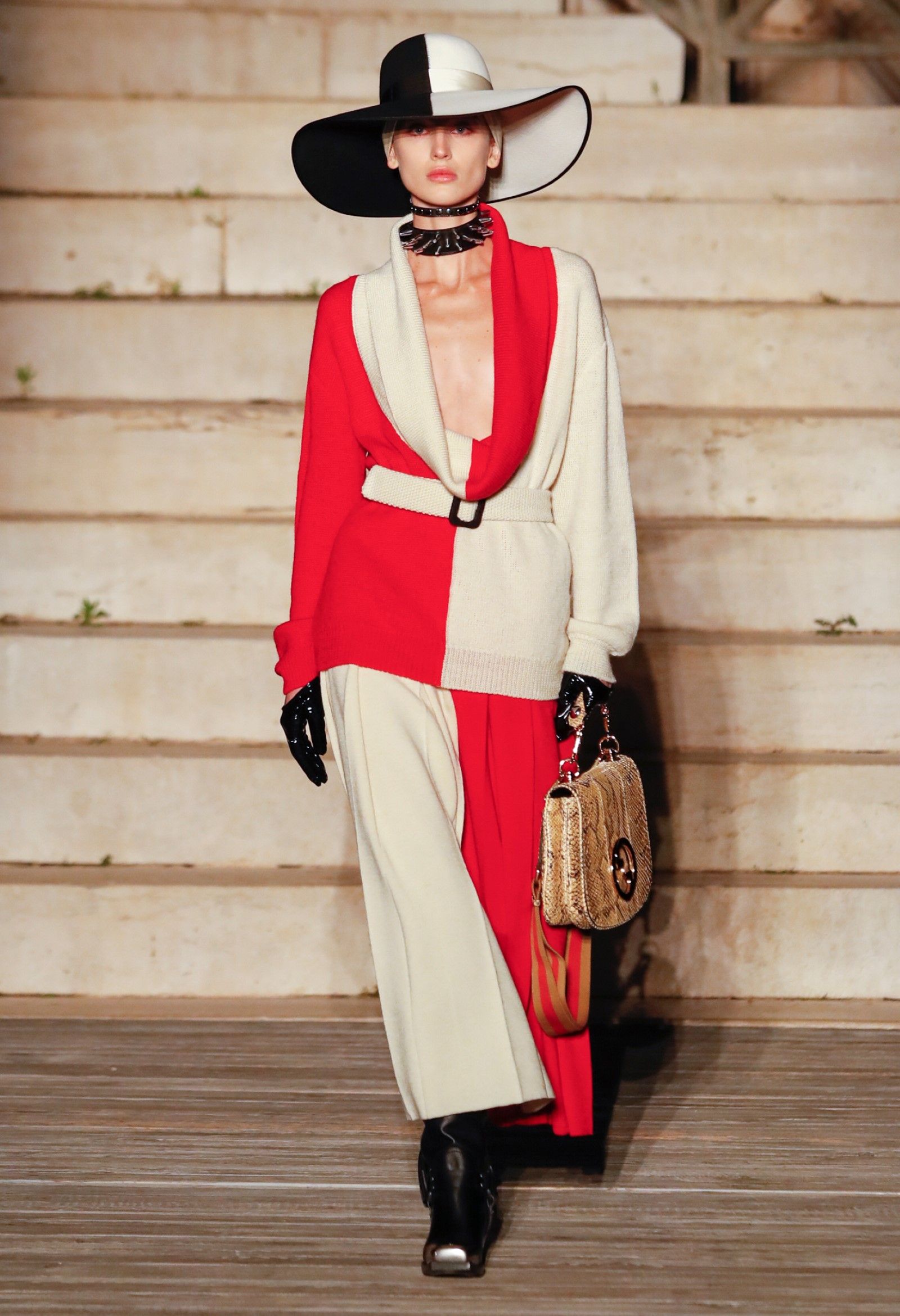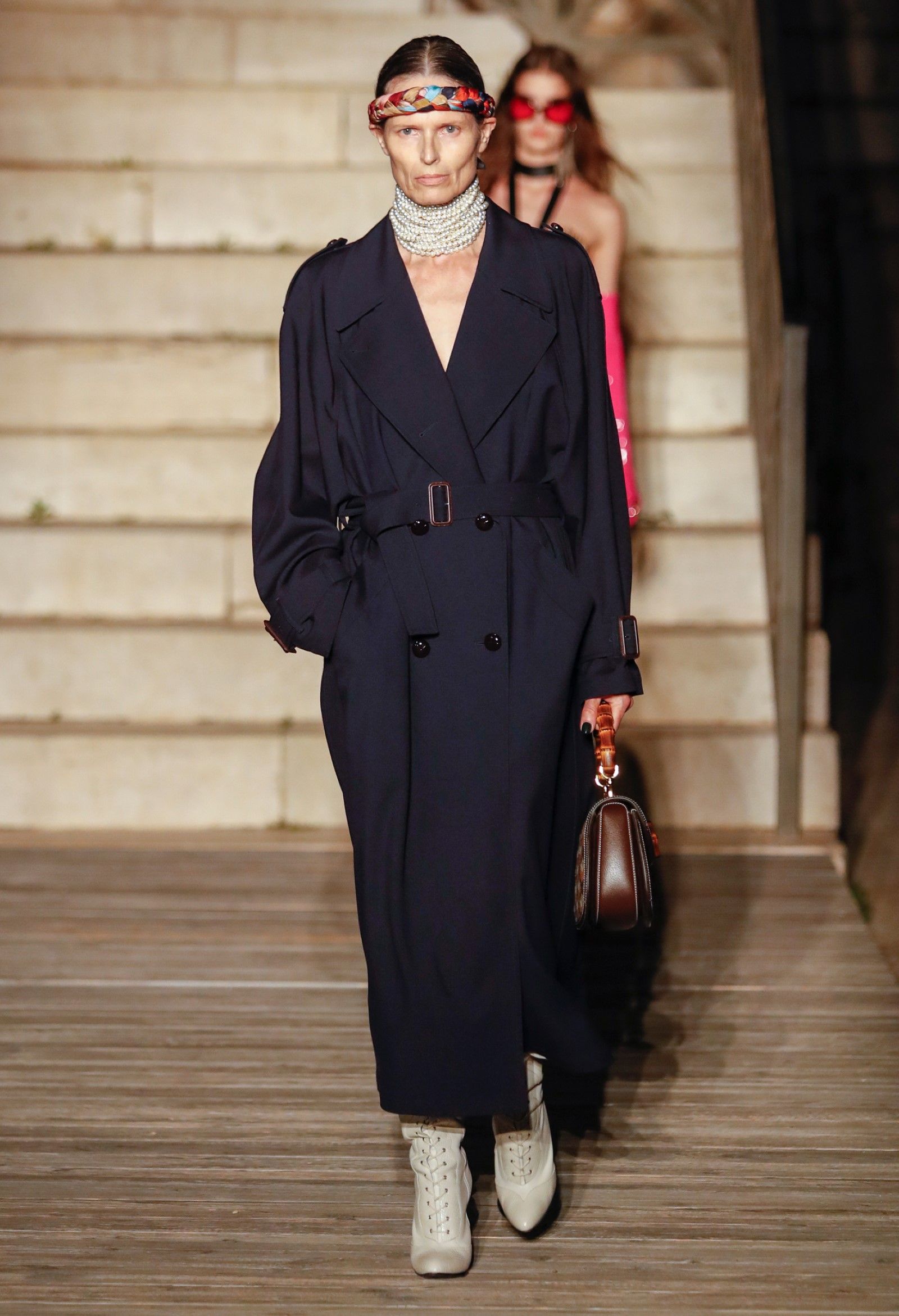 È chiaro, potremmo aggiungere, che Michele si è trovato pienamente a suo agio nel creare questa nuova collezione, sbizzarrrendosi insieme al suo team per esplorare non solo location diverse ma anche messe in scena spettacolari – che sono poi il fondale migliore per lo specifico tipo di reverie in cui Michele si è specializzato. Questa collezione, ad esempio, proprio come Gucci Love Parade, possedeva un respiro più ampio, un numero di look superiore al centinaio e un qualcosa di monumentale: tutti segni di una fantasia che si realizza non solo per merito della collezione in sé, ma anche della location, della vision che la ispira, della sintonia delle tanti parti mobili che stanno dietro al “momento” dello show come punto più alto della comunicazione/espressione del brand. Parlando con WWD, Michele ha paragonato la moda a «un grande coro», un richiamo alla collettività, ai vari elementi che, per citare il salmo, convenerunt in unum – esattamente come i molti astri diversi che compongono la medesima costellazione.