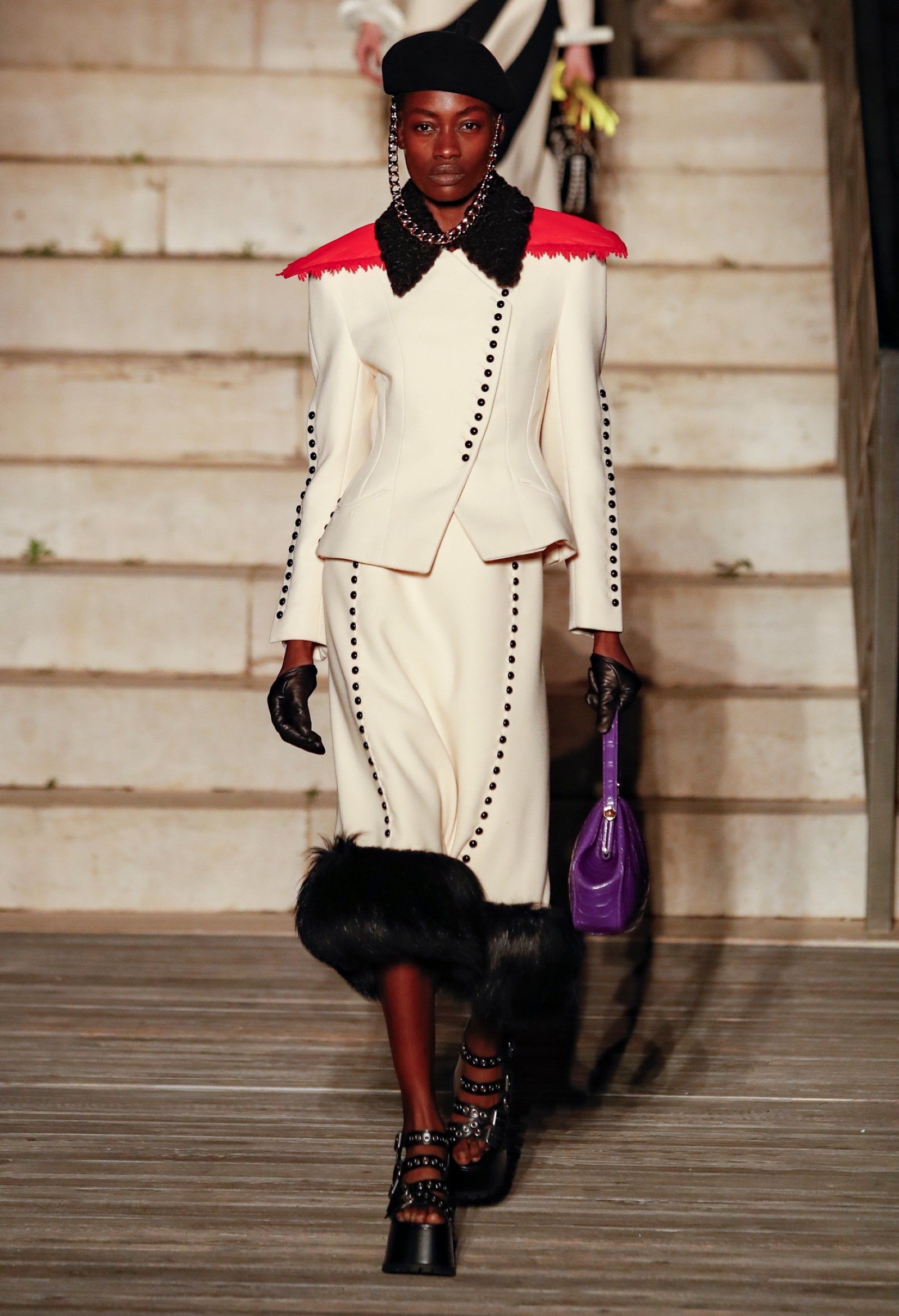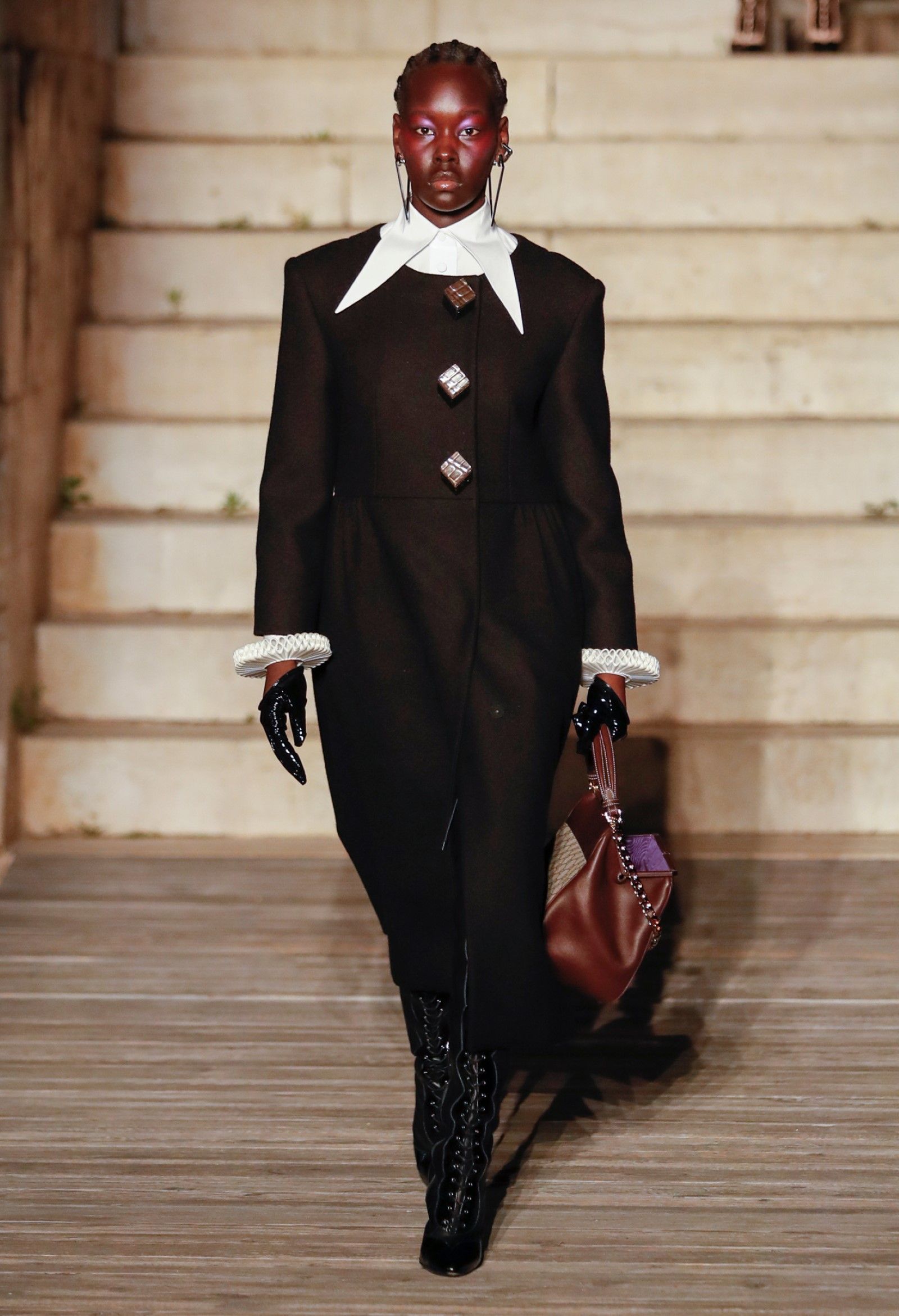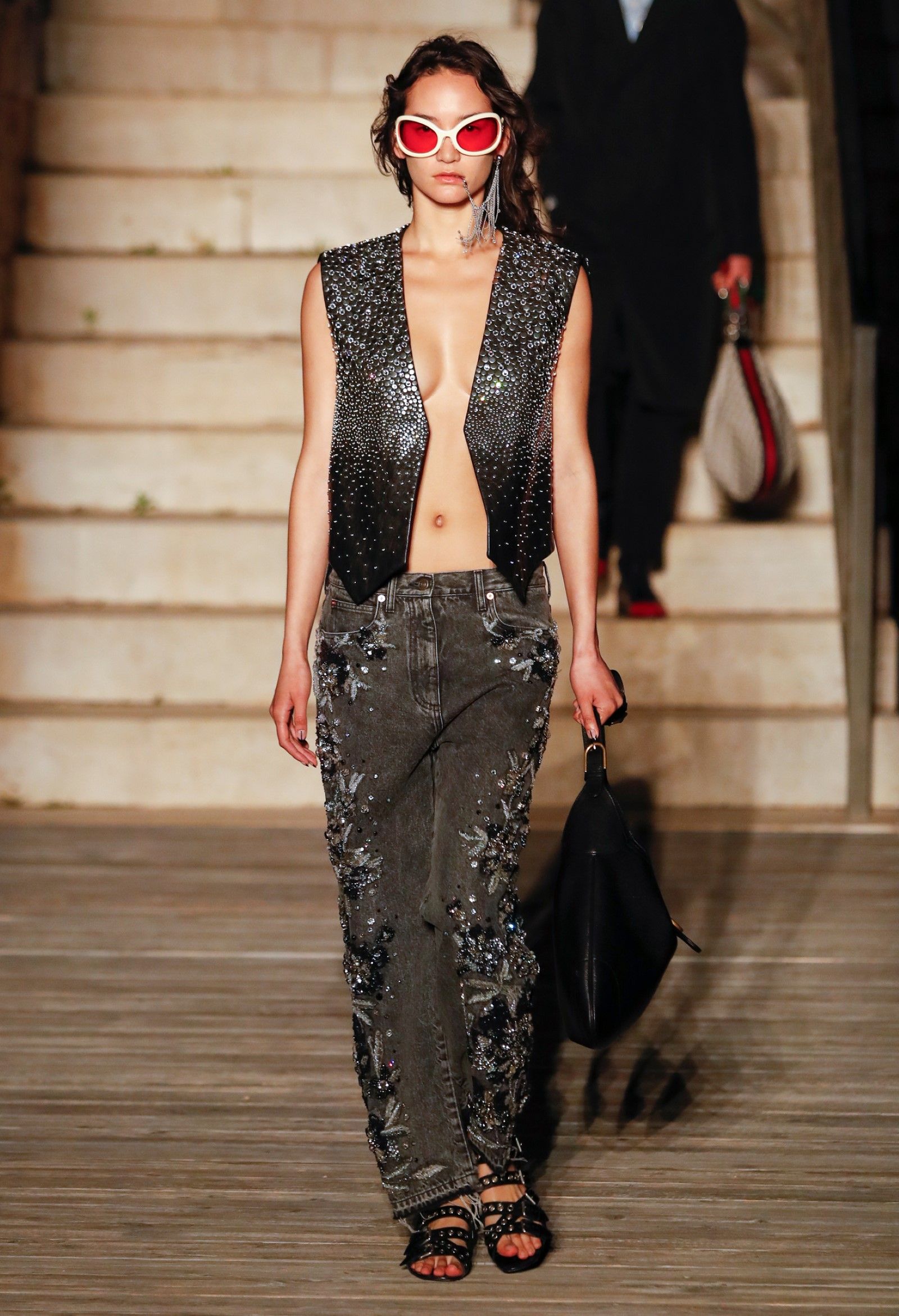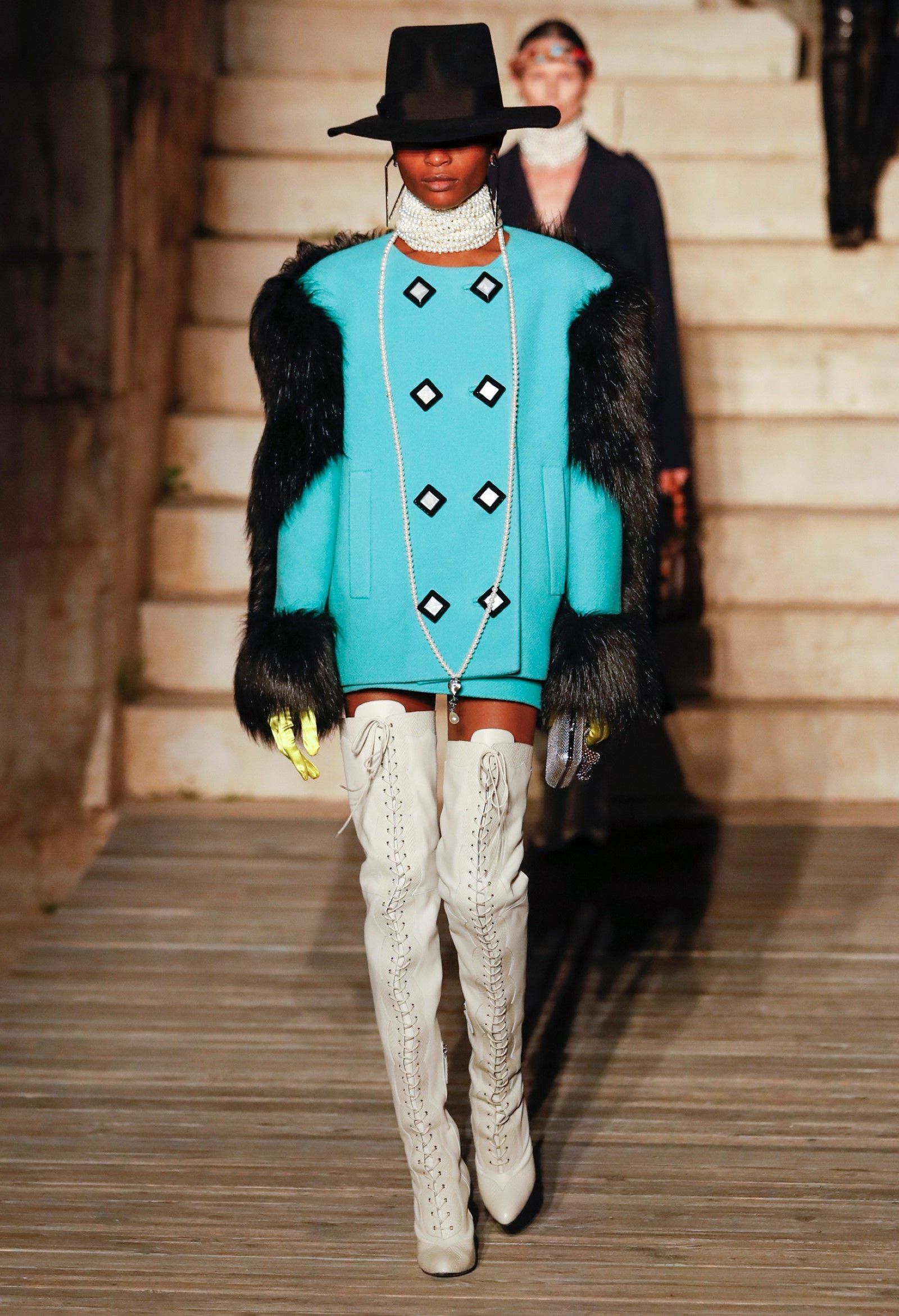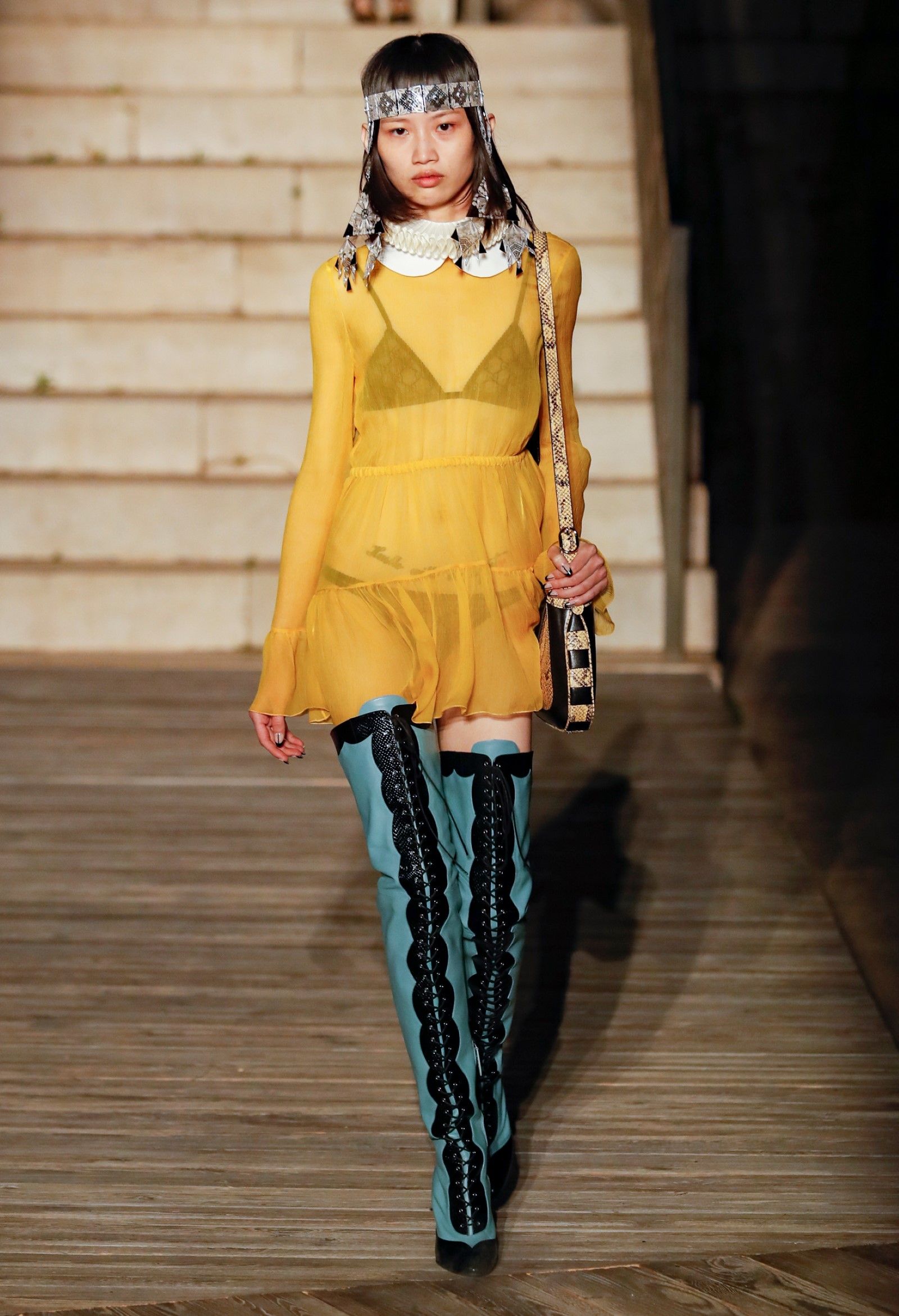 È chiaro, potremmo aggiungere, che Michele si è trovato pienamente a suo agio nel creare questa nuova collezione, sbizzarrrendosi insieme al suo team per esplorare non solo location diverse ma anche messe in scena spettacolari – che sono poi il fondale migliore per lo specifico tipo di reverie in cui Michele si è specializzato. Questa collezione, ad esempio, proprio come Gucci Love Parade, possedeva un respiro più ampio, un numero di look superiore al centinaio e un qualcosa di monumentale: tutti segni di una fantasia che si realizza non solo per merito della collezione in sé, ma anche della location, della vision che la ispira, della sintonia delle tanti parti mobili che stanno dietro al “momento” dello show come punto più alto della comunicazione/espressione del brand. Parlando con WWD, Michele ha paragonato la moda a «un grande coro», un richiamo alla collettività, ai vari elementi che, per citare il salmo, convenerunt in unum – esattamente come i molti astri diversi che compongono la medesima costellazione.