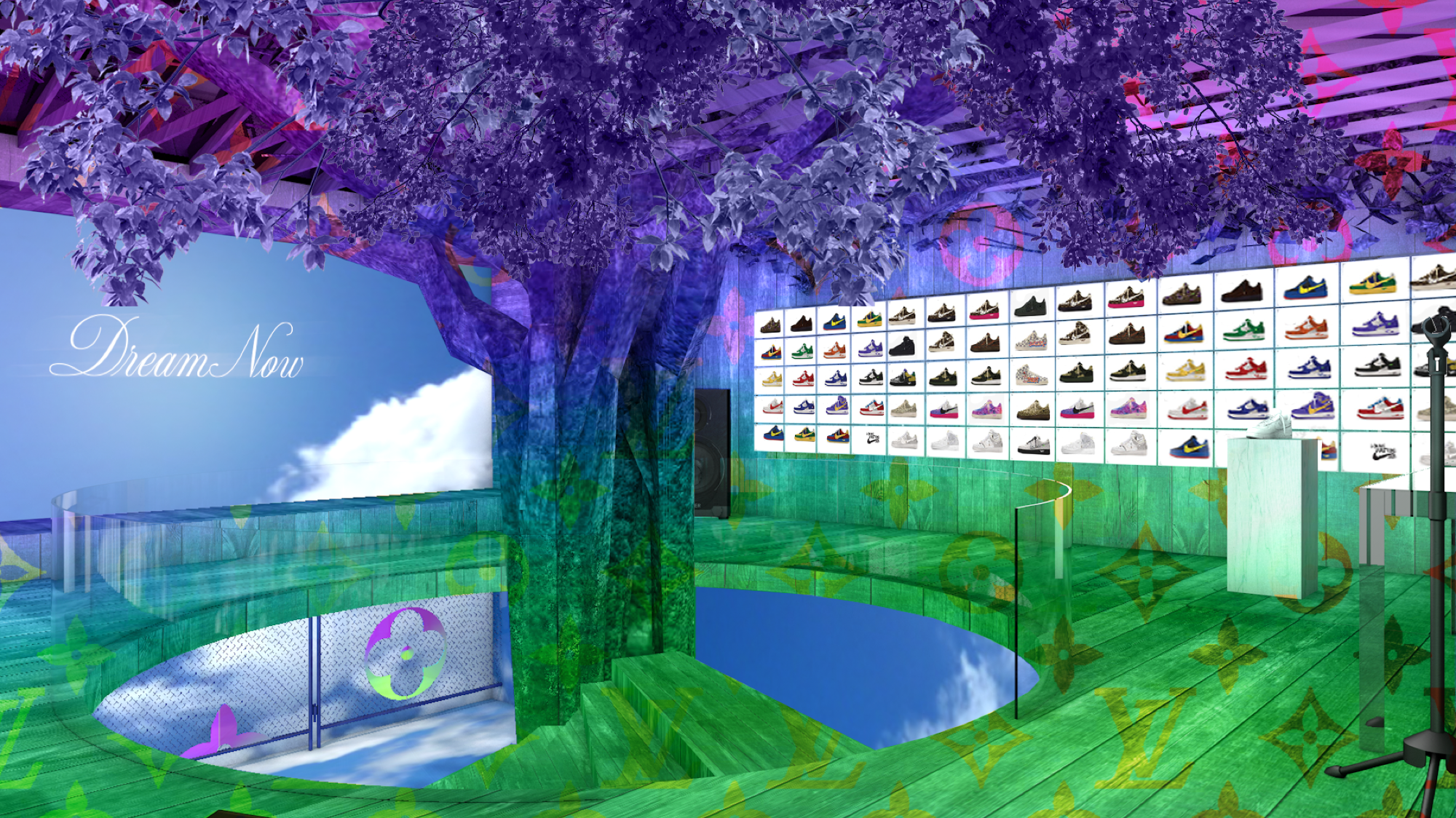 La mostra sarà aperta al pubblico nel Greenpoint Terminal Warehouse di New York e, con una contaminazione tra forma fisica e virtuale, racconterà il dialogo creativo tra Nike e Louis Vuitton immaginato dal celebre direttore creativo prima della sua scomparsa. Passeggiando per la mostra, gli ospiti, circondati da statue stampate in 3d simili a quelle costruite da Virgil Abloh, avranno la possibilità di vedere una versione gigante del logo riflessa in un soffitto a specchio.