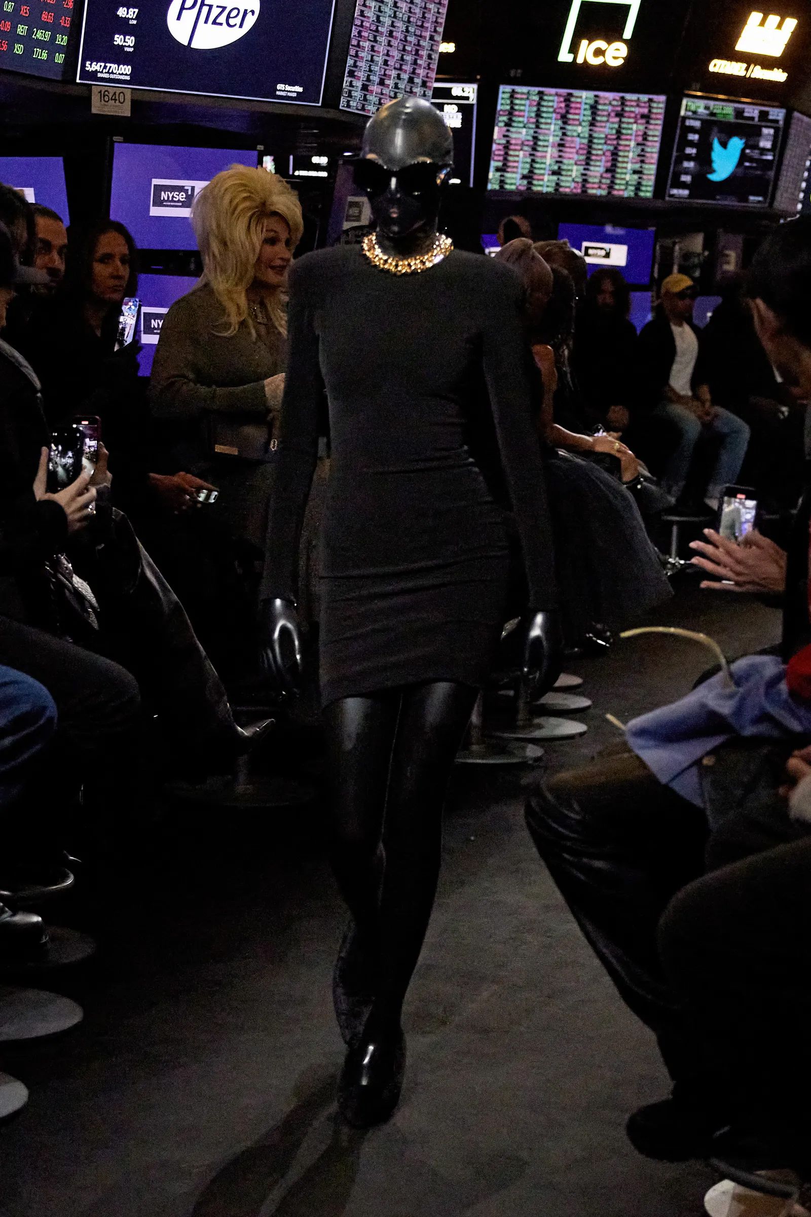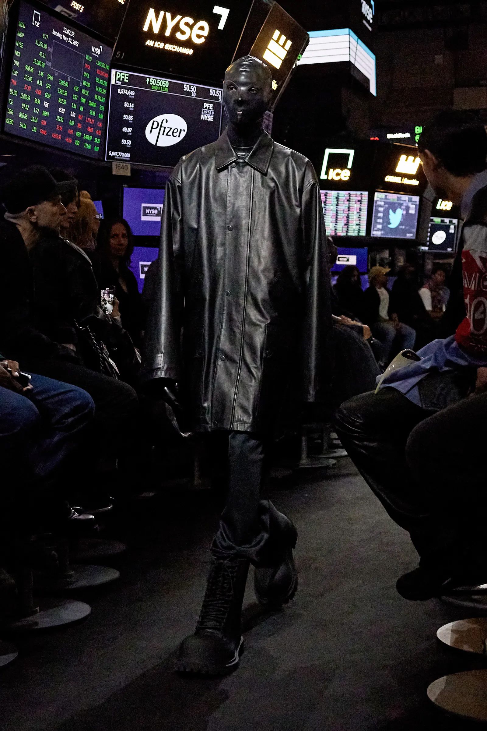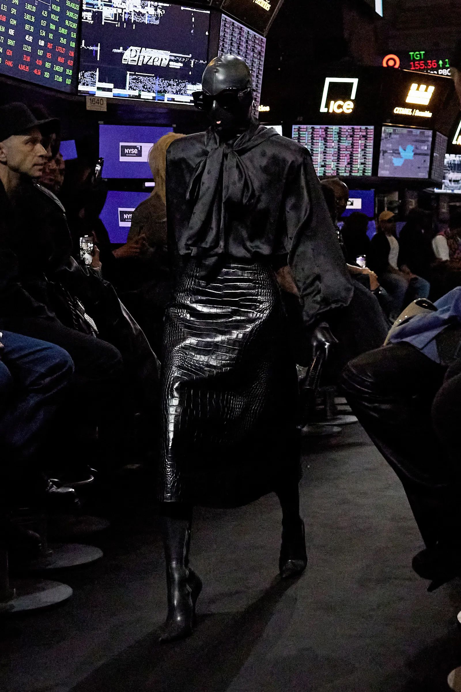 Solamente due settimane fa CNN Business titolava «A recession may be around the corner. Don’t panic» aprendo idealmente le porte a quello che è stato, almeno all’apparenza, il tema centrale dello show Spring 23 di Balenciaga. La Borsa di New York si è svuotata per l’occasione, aprendo le porte al solito parterre de rois composto da Anna Wintour, Kanye West, Pharrell e Frank Ocean, ma soprattutto per accogliere quello che nelle intenzioni di Demna è stato uno show diviso in tre parti, scandite in modo netto dalla musica ma accomunate dal look dei modelli e delle modelle, i cui volti erano completamente coperti da una serie di maschere di latex che ne facevano scomparire qualsiasi lineamento - anche se Eliza Douglas in apertura era facilmente riconoscibile. «Volevo rappresentare l’idea della moda capace di cancellare l’identità delle persone. Tutti saltano su un trend e finiscono per somigliarsi» ha dichiarato il designer georgiano nel presentare quello che a tutti gli effetti protremmo definire l’atto conclusivo del suo lungo flirt con la cultura americana, passata dai Simpson fino alla celebrity culture di Kim Kardashian e arrivata al suo capitolo finale con lo sbarco di Demna proprio negli Stati Uniti.