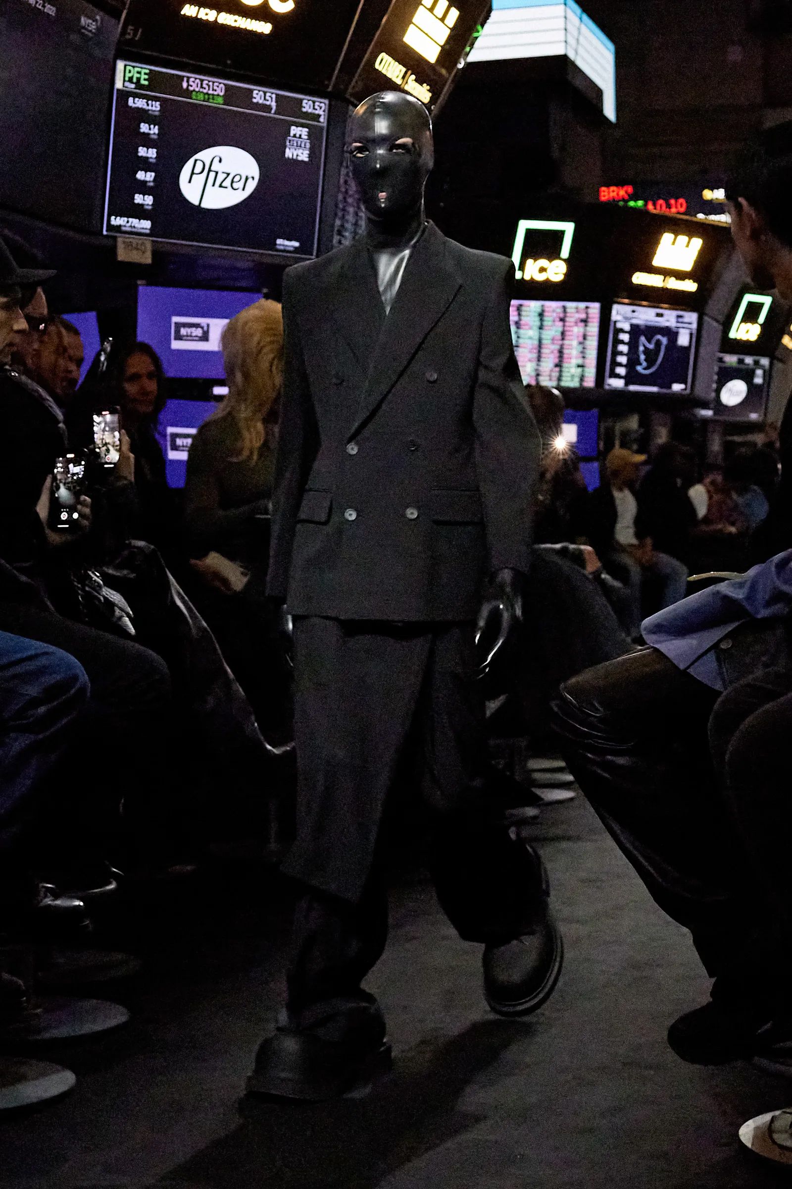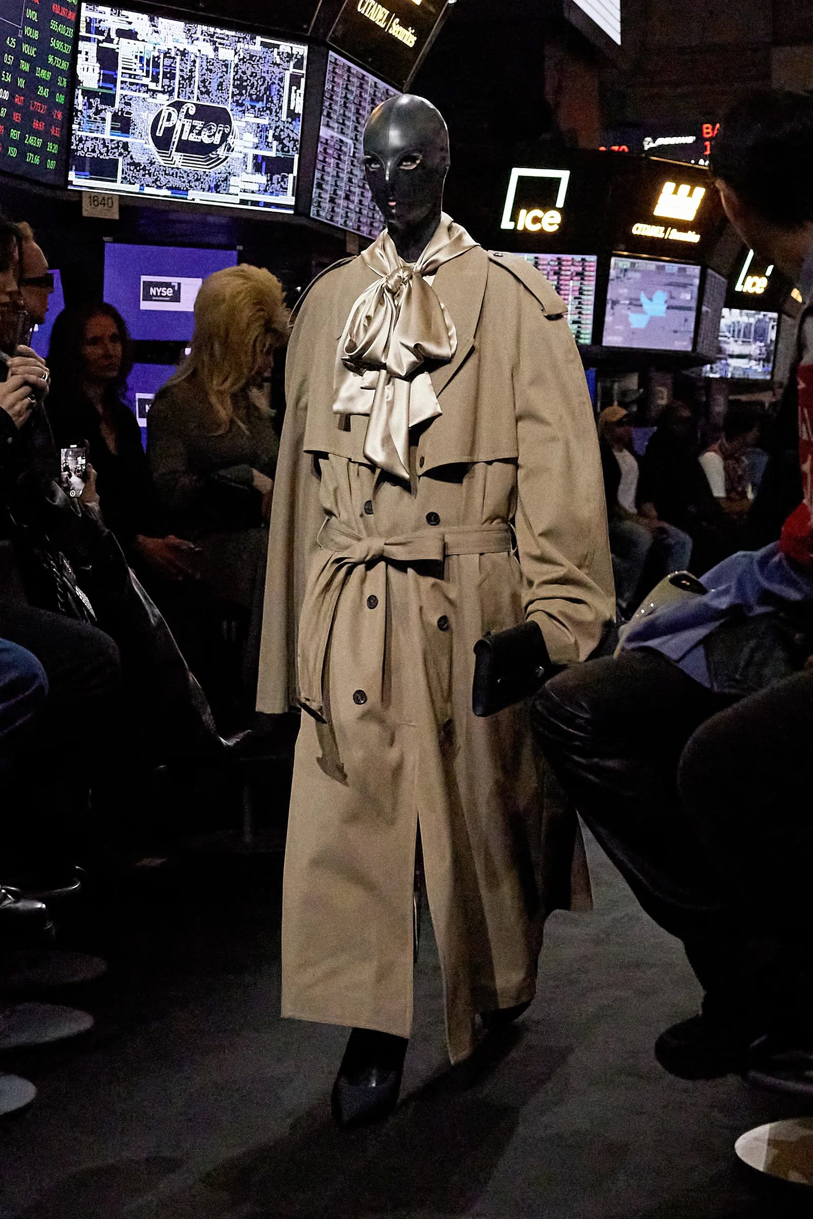 Se qualcuno però si aspettava una critica al capitalismo fatta di hoodie ironiche e slogan ammiccanti sarà sicuramente rimasto deluso. «I soldi sono il più grande fetish al mondo» ha detto Demna parlando dello show in cui Balenciaga ha letteralmente hackerato la borsa di New York a suon di glitch e musica techno - fatta eccezione per la cover di New York New York cantata da Carey Mulligan - raccontandoci ancora della forza comunicativa di un brand in grado di trasportare la propria estetica in qualsiasi contesto, che sia fisico o tematico, portando avanti una narrazione coerente nella sua estetica e nelle sue idee. Qualcuno urlerà alla noia davanti a uno show in cui dei modelli senza volto indossano degli abiti neri e poco appariscenti, ma se dopo tutto questo tempo ancora fate fatica a cogliere i dettagli nascosti e non sbandierati allora forse è il caso di guardare altrove.