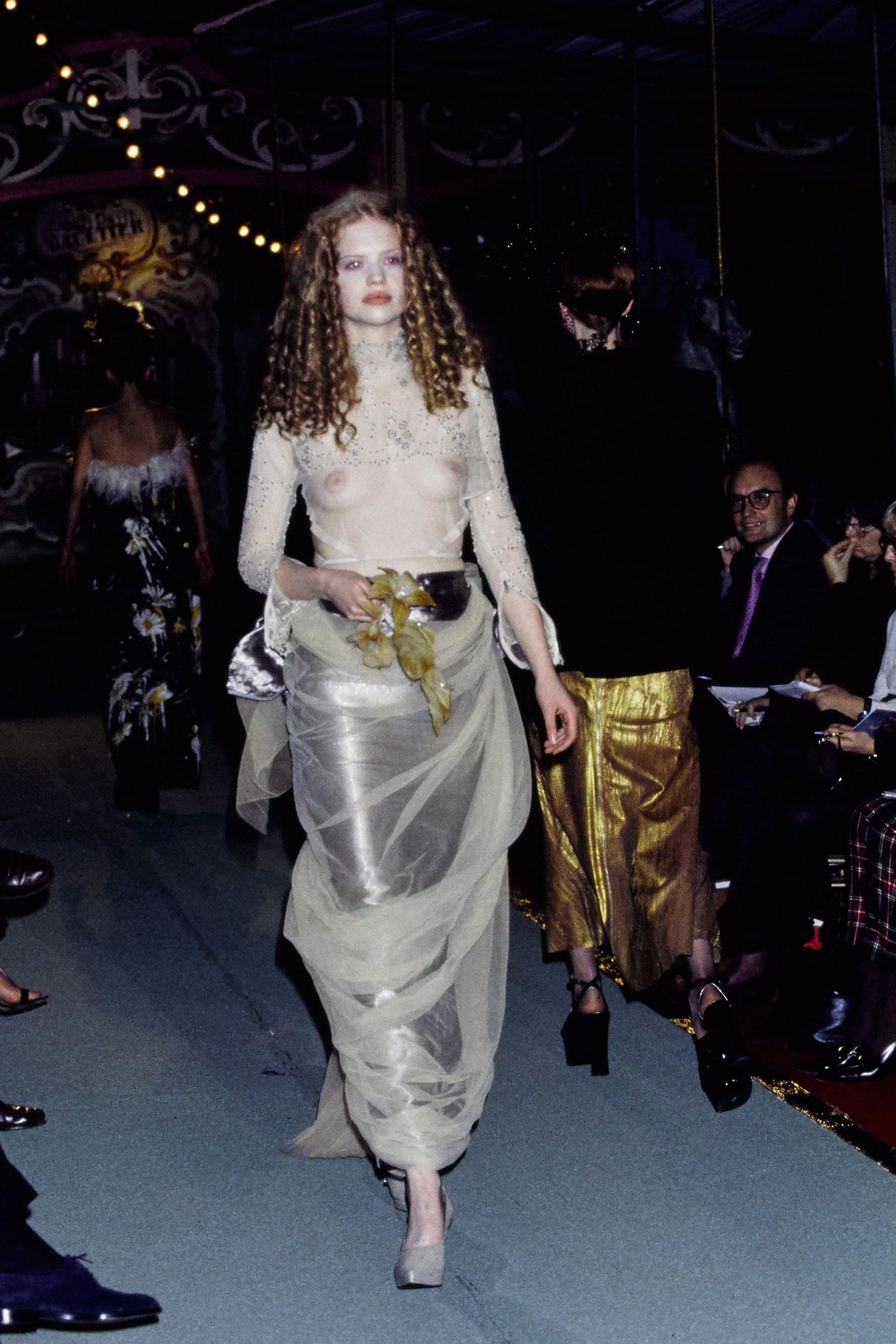 Ieri pomeriggio, sulle pagine di @ideservecouture e @fashionfaguette si è svolta una breve opera buffa che ha dimostrato i limiti e le criticità della moderna call-out culture nei social media. Tutto è iniziato quando l’account del brand Jean-Paul Gaultier ha pubblicato la foto di una versione moderna del Trompe-l'œil Dress co-firmato da Lotta Volkova. Immediatamente sotto al post sono apparsi una serie di commenti che accusavano la storica maison di aver copiato un designer spagnolo contemporaneo di nome Sergio Castaño Peña. Come spesso succede con la mob mentality di Internet, i primi commenti ne hanno attirati sempre di più in una specie di frenesia di gruppo durante la quale i proprietari di piccoli account sparsi per il mondo hanno iniziato ad accusare Gaultier di plagio. Ovviamente nel giro di poche ore i principali giornalisti e creator indie di contenuti sulla moda (specialmente i due citati all’inizio del pezzo) hanno deriso gli hater sui social facendo notare come Gaultier fosse praticamente l’inventore del naked dress: nello specifico l’abito in questione era ispirato a un pezzo d’archivio disegnato da Gaultier nel 1984, che è stato replicato in poliammide invece che nella sua originale fabbricazione jacquard. Nel corso degli anni ’90, poi, Gaultier ha firmato variazioni sul tema come il look dello show SS93 famosamente indossato da Ève Salvail e il Goddess Dress della collezione SS99 oggi conservato al Met di New York. Altre iterazioni dell’abito si ebbero nella collezione SS95, nella SS96, nella SS98 e nella FW04 solo per citarne alcune.