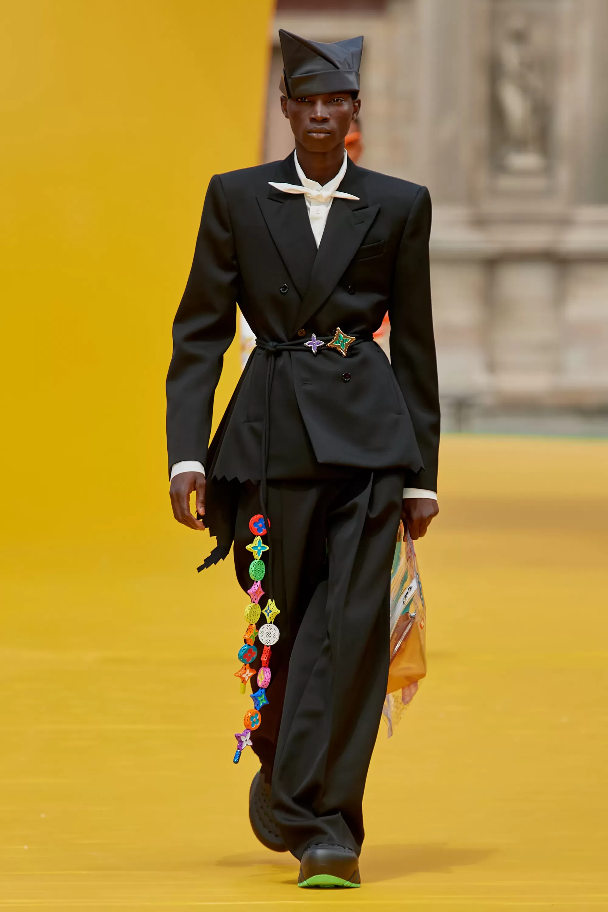 L’ultima collezione di Louis Vuitton svelata presso la Cour Carré del Louvre, creata dallo Studio Prêt-à-Porter Homme che Abloh aveva scelto e formato, è stata all'insegna del tributo e del ricordo. Dall’omaggio di Kendrick Lamar, coronato di spine firmate Tiffany & Co., alla location che riproduceva il circuito di un treno giocattolo, la legacy di Virgil Abloh non è stata riproposta con tristi ombre di nostalgia, ma in una chiave fresca e gioviale in cui il ricordo del designer di Chicago ha assunto le tinte della "visione incontaminata di un bambino, non ancora viziata dalla programmazione sociale", per usare le sue stesse parole. Aeroplanini di carta atterrati su un abito nero, un cappotto decorato con il contenuto di una cassetta degli attrezzi, il monogram a forma di fiore multicolore: voli pindarici all’interno di codici giustapposti. La collezione ha condensato tutti gli elementi che hanno portato il brand a diventare il marchio di punta di LVMH sotto Abloh, senza tuttavia apportare nulla di nuova all’immaginario del brand, con quella che stata la quarta collezione tributo in soli otto mesi.