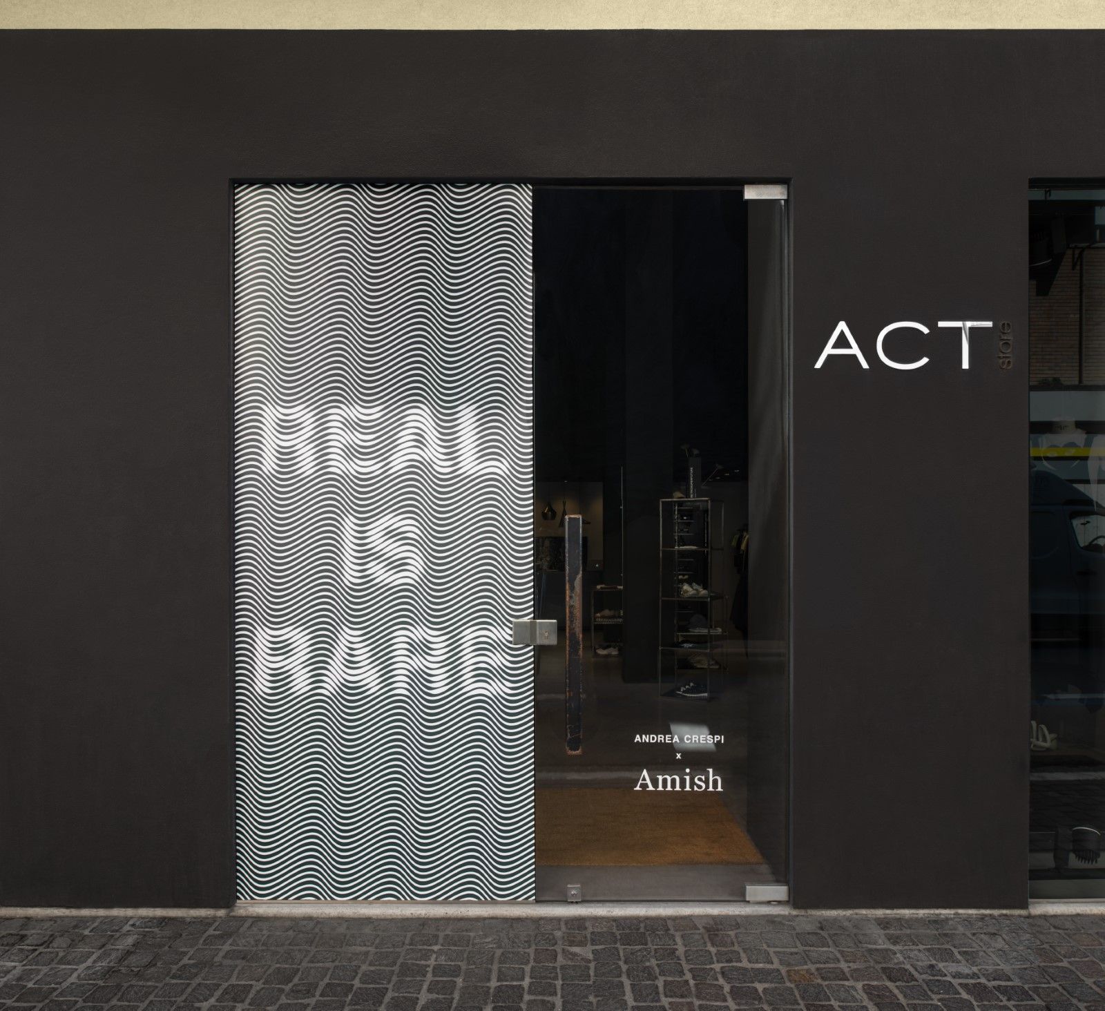 Il progetto, inoltre, prosegue quell’impegno che Amish aveva posto nell’ottimizzazione e personalizzazione dell’esperienza retail, stringendo un dialogo più vicino con la propria community locale – un elemento cruciale per il successo di qualunque brand che sviluppando un rapporto diretto con il pubblico può crescere in maniera organica. Proprio questa crescita organica si riflette, inoltre, nel motto «Real is Rare» che domina le vetrine d’artista di questa edizione.