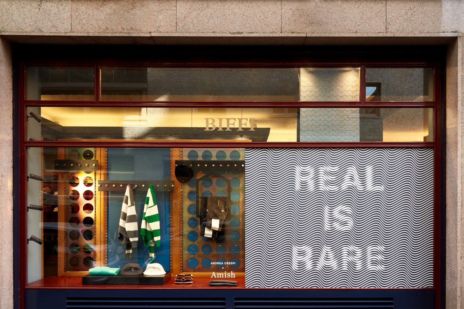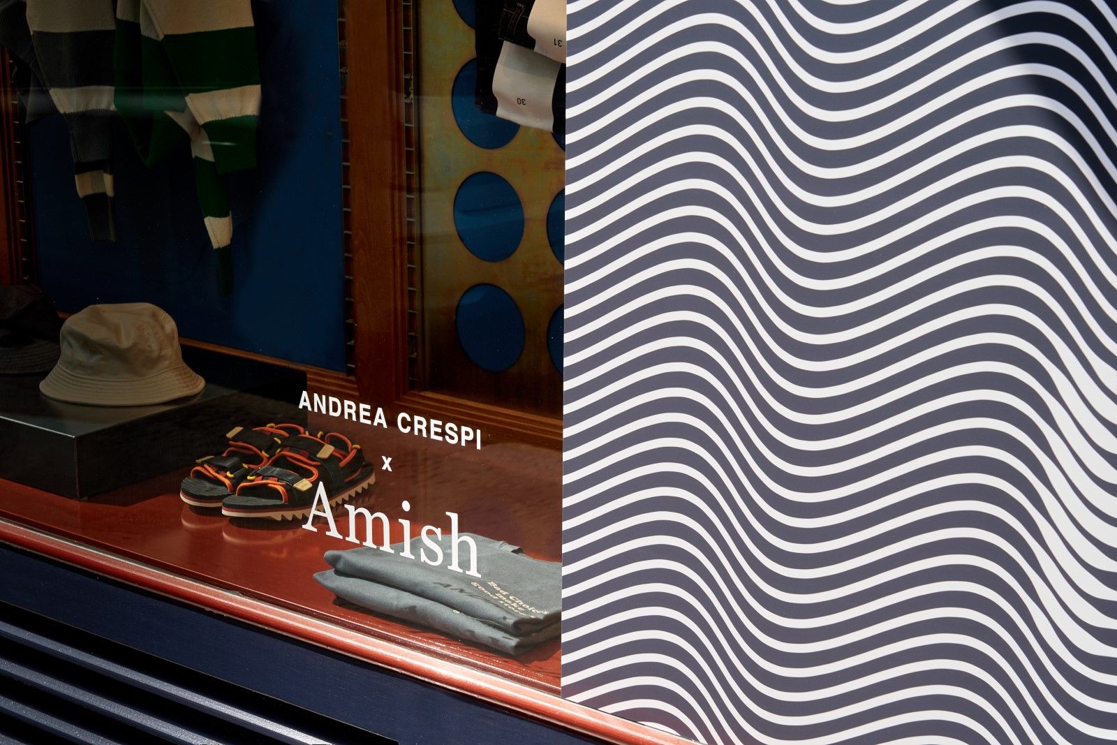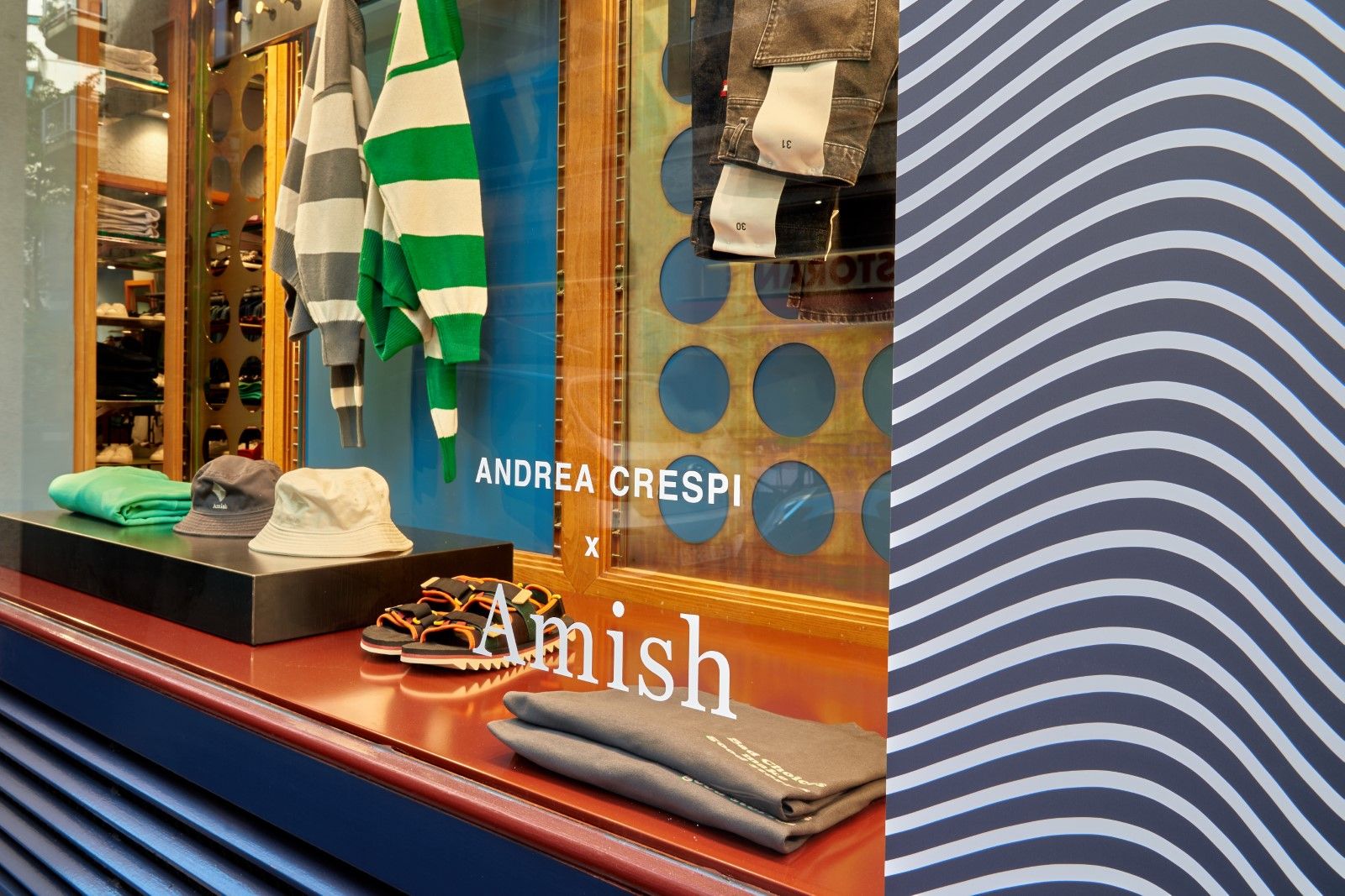 Amish ritorna con le vetrine d'artista firmate da Andrea Crespi La seconda edizione della collaborazione artistica del brand con i principali multimarca italiani