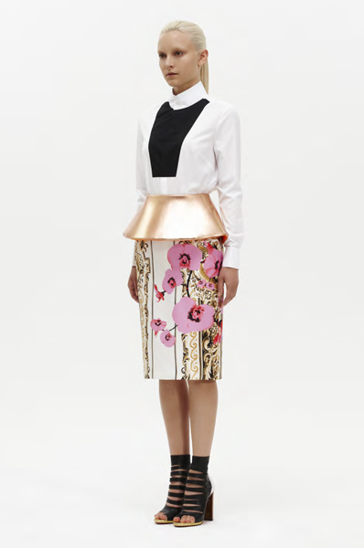 Josh Gott è uno dei designer di moda australiani più interessanti degli ultimi tempi. Dopo il diploma in Media Art & Production alla University of Technology di Sydney nel 1999 e diversi premi, come quello per miglior giovane designer secondo Tyffany & Co, Josh inizia ad attirare l’attenzione dei media. Caratteristica del suo fare moda è la capacità di immaginare il futuro, di suggerire un’idea di avanguardia, senza sconfinare nel grottesco. Infatti la sua collezione estiva non fa eccezione: la silhouette si concentra sulla parte superiore del corpo, le spalle delle giacche sono oversized, sagomate, quasi robotiche. Gli abiti, anche essi strutturati, sono una specie di sportswear di lusso, in cui l’arancione si mischia con il blue elettrico, il giallo con il bordeaux, il bianco con l’oro, il color blocking con le fantasie floreali, rose, gigli ed orchidee. Quello di Goot è un continuo gioco di mix & match fra soluzioni diverse: tubini a vita alta, corpetti rigidi con la linea dei fianchi generosa, bombers con abitini scultorei, la simmetria delle proporzioni con l’asimmetria delle lunghezze. Il neoprene è il tessuto principe di questa collezione, futuristica e barocca. Josh Goot è decisamente uno designer da tenere d’occhio perché ci indica possibili territori da esplorare e ci veste, con gusto, per in maniera inusuale.