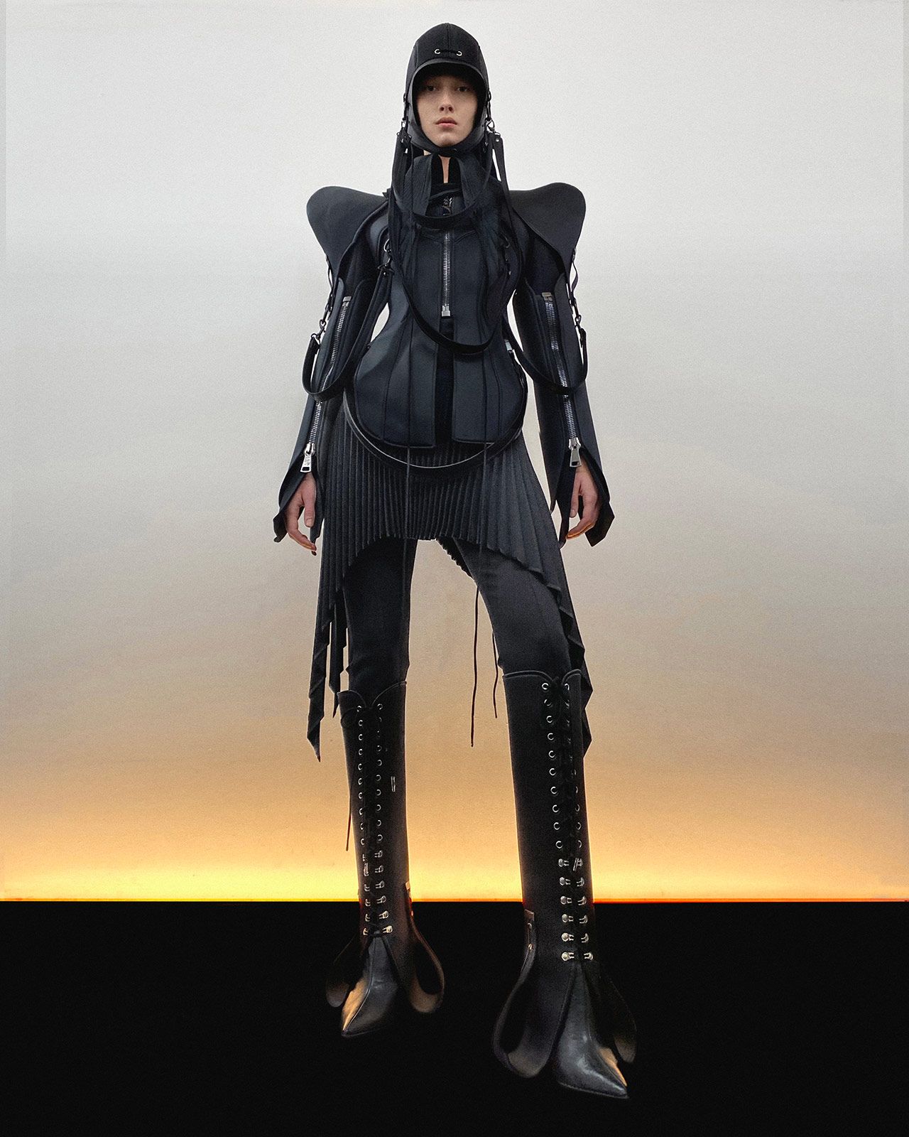 "Volevo creare un esercito per andare in paradiso con lei", è così che Robert Wun ha motivato la i suoi modelli che tanto ricordano le armature di 'angeli venuti dal futuro', un personalissimo modo per elaborare il lutto della nonna materna, nonché una celebrazione del femminismo e della femminilità. Negli anni, Robert Wun, si fa notare grazie ad alcune collaborazioni di successo con Lady Gaga e Cardi B, oltre ad aver realizzato un abito dell’attrice Elisabeth Banks nel film The Hunger Games: Mockingjay seconda parte. Il 2016, invece, lo vede impegnato in un gemellaggio con la Royal Opera House di Londra, che lo sceglie per creare i costumi del balletto. Il tessuto viene lavorato per creare l'illusione di indossare un'armatura, arricchita con un tessuto plissè, spalle rigide e cinghie a profusione, l'uniforme post apocalittica per eccellenza ma con un allure decisamente sofisticato.