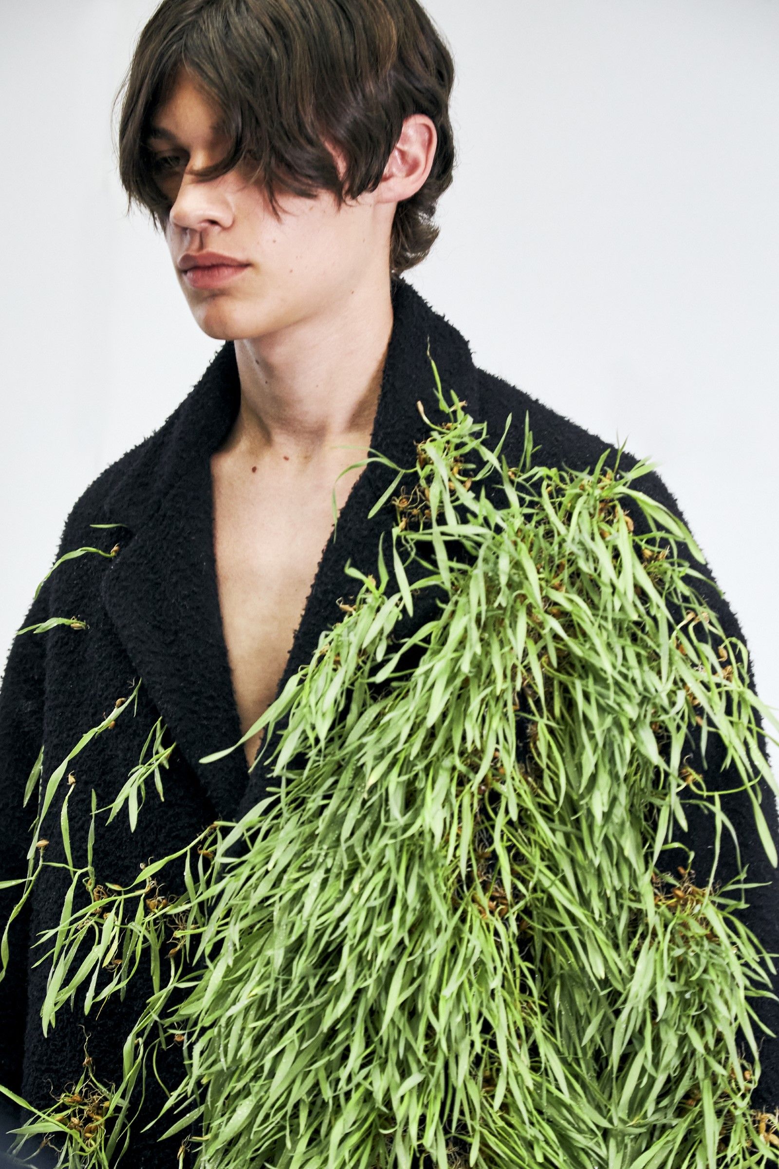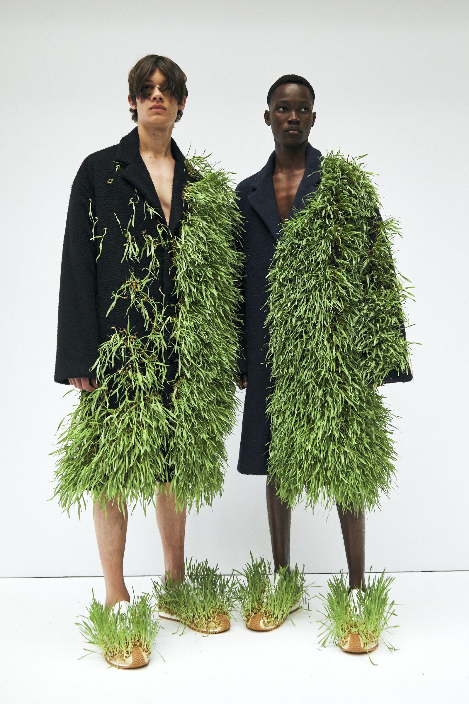 «Quando coltivo le piante mi preoccupo di ogni dettaglio – loro sono delicate, ma la natura è più forte di quanto pensiamo», mi dice Paula Ulargui Escalona dalla sua casa di Madrid, dove risiede. Paula è la designer dietro gli abiti ricoperti d’erba e vegetazione visti all’ultimo show di Loewe a Parigi – collaborazione che ha portato lei e le sue ricerche alla ribalta del pubblico internazionale. «Ho sviluppato questa tecnica durante il mio ultimo anno di università», ha raccontato Paula, che è una ex-studentessa di IED e ha anche passato un periodo dei suoi studi a Milano. «Ho creato un intero progetto basato sull’idea di fabbricare capi a partire dalla natura. Ho coltivato piante, ho coltivato funghi. E ho anche trovato un modo di intrecciare le piante in un tessuto per gli abiti – un tessuto che è vivo e interamente vegetale». I risultati di questo progetto, che ovviamente nel tempo si è ramificato e arricchito di nuove varianti e sperimentazioni possono essere osservati sul sito web di Paula che è stato anche il punto di contatto tra lei e Loewe durante le fasi di sviluppo della collezione. «Quello che cercavano era raccontare l’idea di natura nel proprio show, di veicolare un messaggio sulla contraddizione tra tecnologia e natura, e di come potremmo tornare ad essa», dice Paula. «All'inizio stavano sviluppando materiali che sembravano piante vive, ma erano solo normali tessuti. […] Ho continuato a inviare loro file ed esperimenti in modo che Jonathan potesse vederli e scegliere quello che gli piaceva. Ho continuato a dare loro idee finché non abbiamo deciso quali piante usare e come».