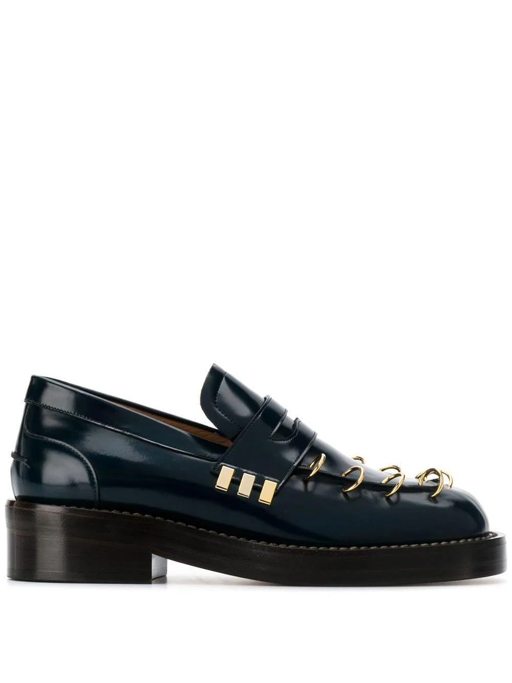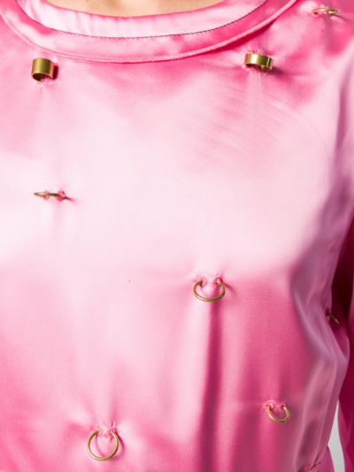 Mentre gran parte della fashion industry si rivolge a professionisti come J. Colby Smith, Kate e Laura Mulleavy hanno arricchito le sopracciglia delle modelle con file di piccoli orecchini a cerchio per la sfilata di Rodarte della primavera 2015 e Dries Van Noten ha presentato a Parigi il suo beauty look con piercing finti: una linea metallica dorata tracciata al centro del labbro inferiore per simulare un vertical labret. Tra i designer che hanno preferito ricollocare i piercing dai volti ai capi invece, una menzione d’onore va a Marni by Francesco Risso, fonte infinita di mocassini, mary jane, stivali e dall’ultima collezione anche camicie di seta ricoperte di anelli sottili, allo stesso modo Balenciaga ha spesso utilizzato i piercing come il septum o il nostril per decorare cappelli da baseball e camicie. Con il revival Y2K invece la moda ha riscoperto le Piercing bag di Galliano per Dior, che oggi al retail hanno visto duplicato il loro prezzo originario, simbolo di in un periodo in cui il brand francese aveva un allure dark e hardcore e la classica saddle bag ricoperta di catene e metallo sembrava l’accessorio perfetto per un concerto metal.