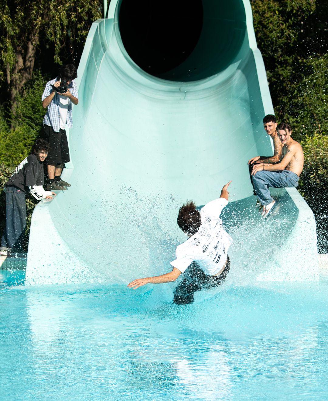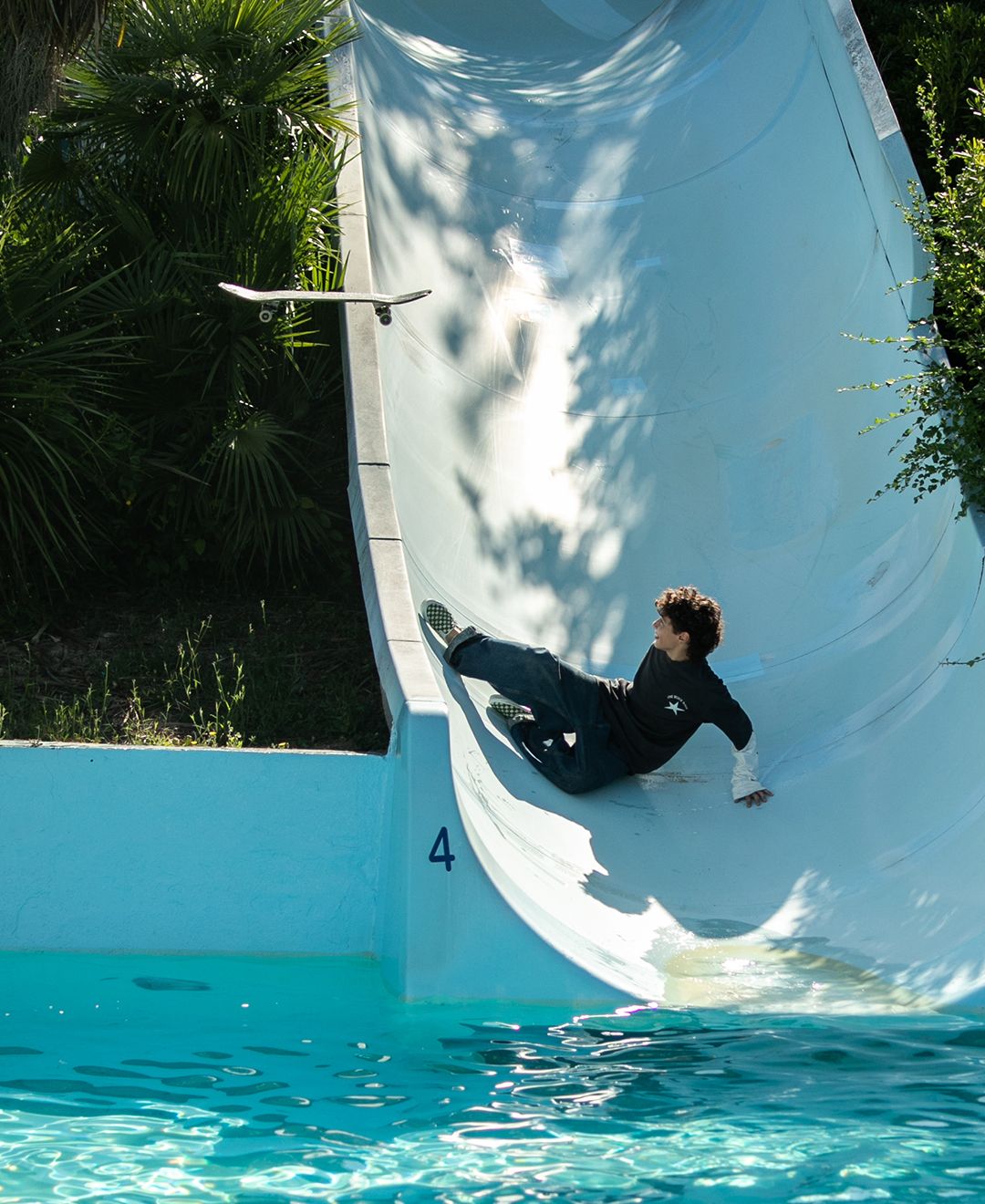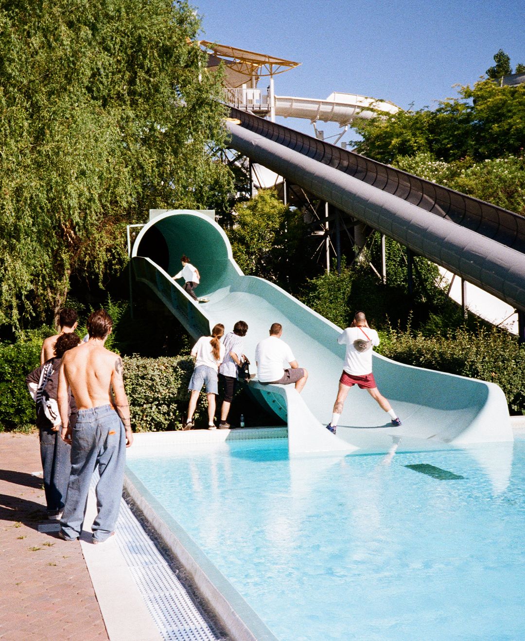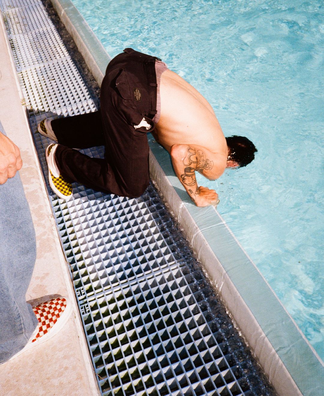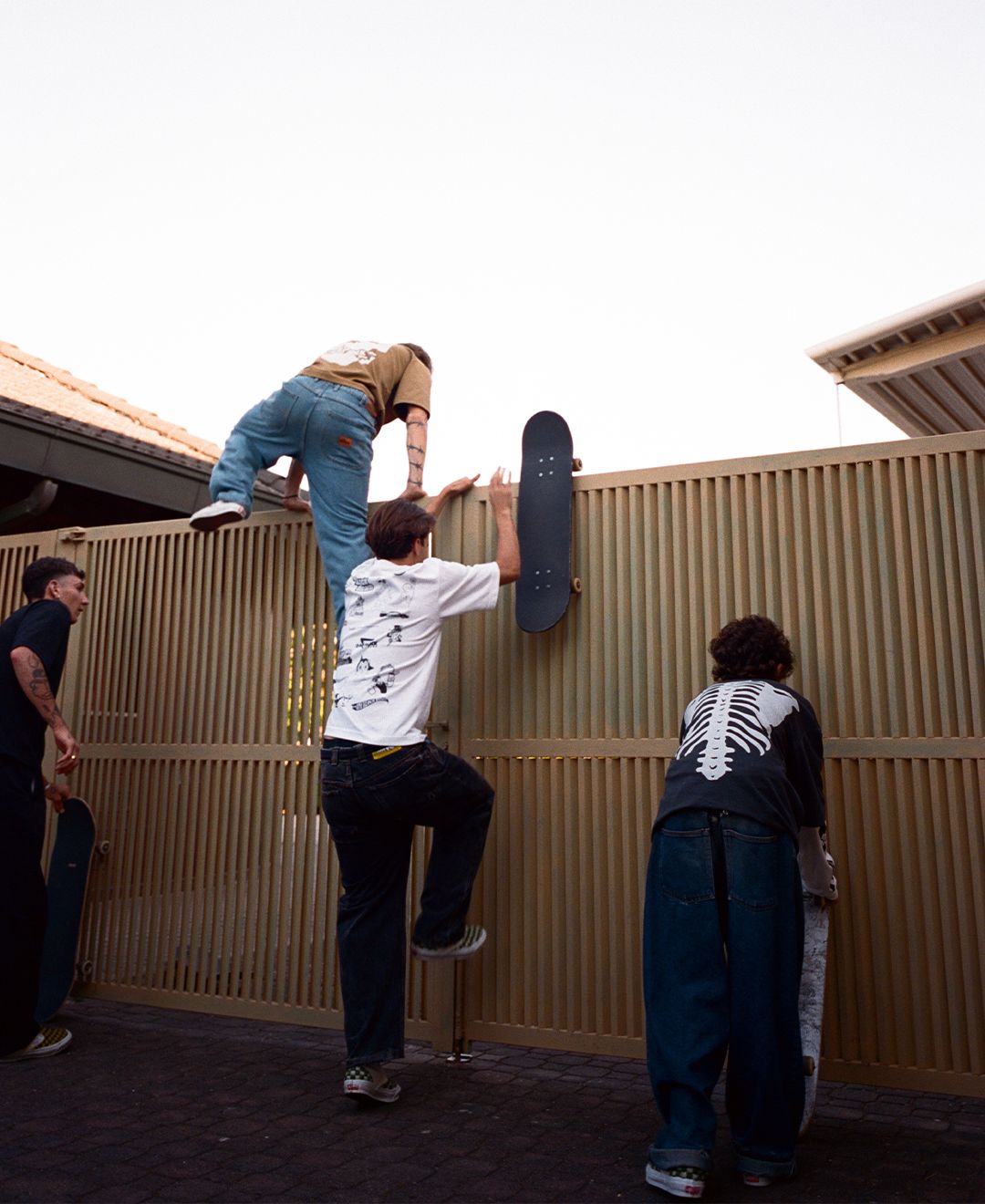 Per il suo ultimo progetto, One Block Down ha esplorato l'impatto di Vans nella storia dello skateboard. Intitolato "Dog Days", il progetto celebra la slip-on a scacchiera del brand californiano, icona onnipresente della scena skate dagli anni '70, quando lo skateboard divenne iper-popolare insieme a tutto il mondo dei surfisti californiani che, dopo una grave siccità che colpì la regione, si intrufolarono nei cortili dei sobborghi per praticare i loro trick nelle piscine prosciugate. Man mano che la disciplina si diffondeva, le Vans divennero parte dell’uniforme degli skater – e specialmente quelle decorate dal motivo a scacchiera, che nacque a partire dalla maniera in cui i giovani skateboarder coloravano le proprie sneaker bianche con il pennarello.