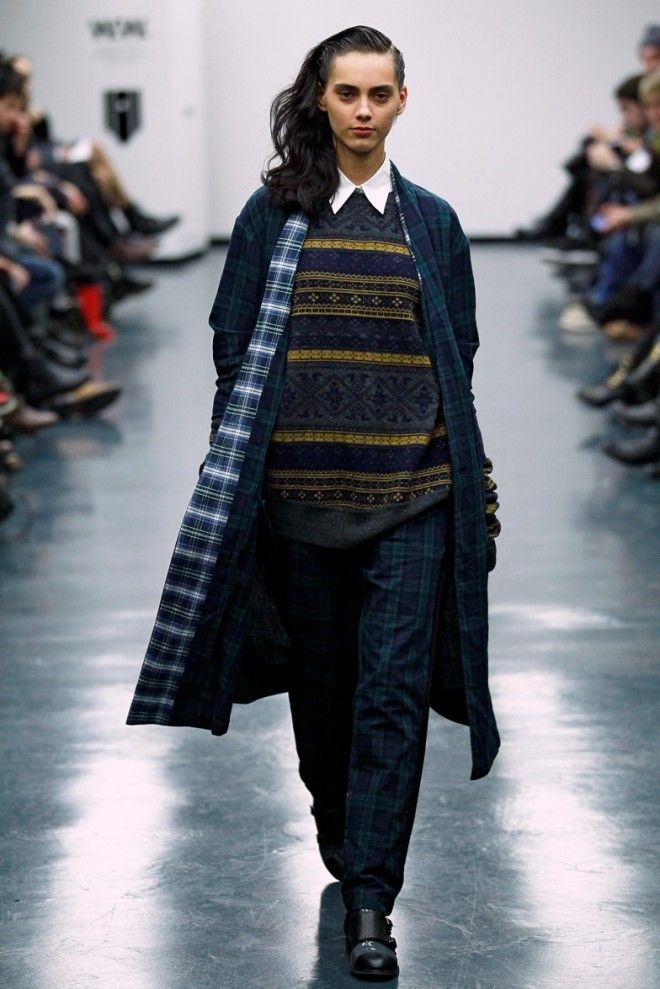 The Kingdom is the name of the collection for the next winter. In fact the inspiration comes from England. Wood Wood‘s boys and girls seem student in uniform, members of elitist club which shares the taste for style. Preppy and cool they wear college style jackets and blazer, tricot pullovers with Nordic patterns, sweaters, dresses, ponchos, skirts and maxi boots for the girls and suits, smooth trousers and bottom down shirts for the boys. The colors are classic, blue predominates with squirt of mustard, white, red and fuchsia. Wood Wood is a brand destined to muscle in, increasingly, between the young people of all the world.