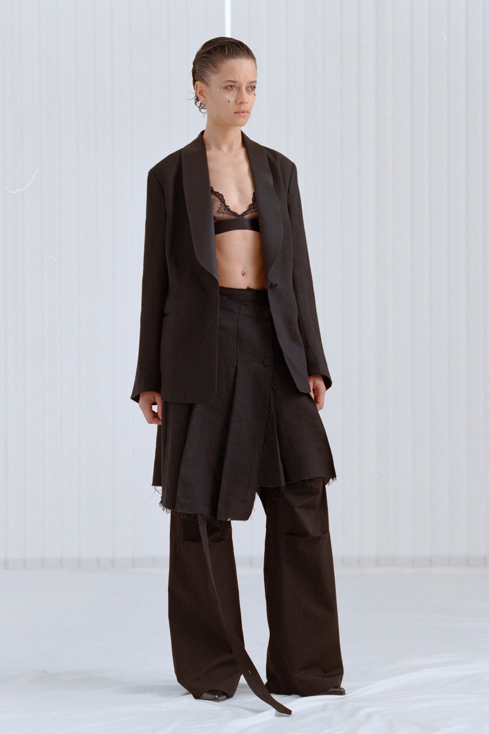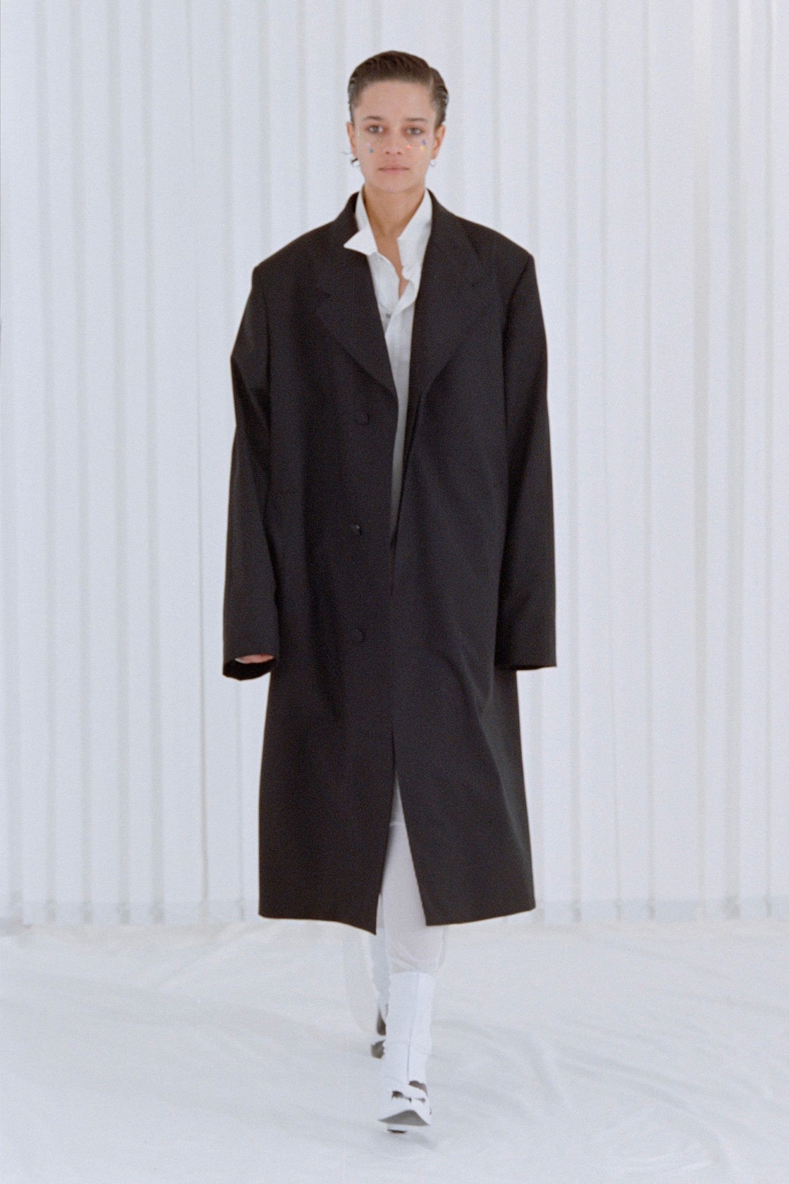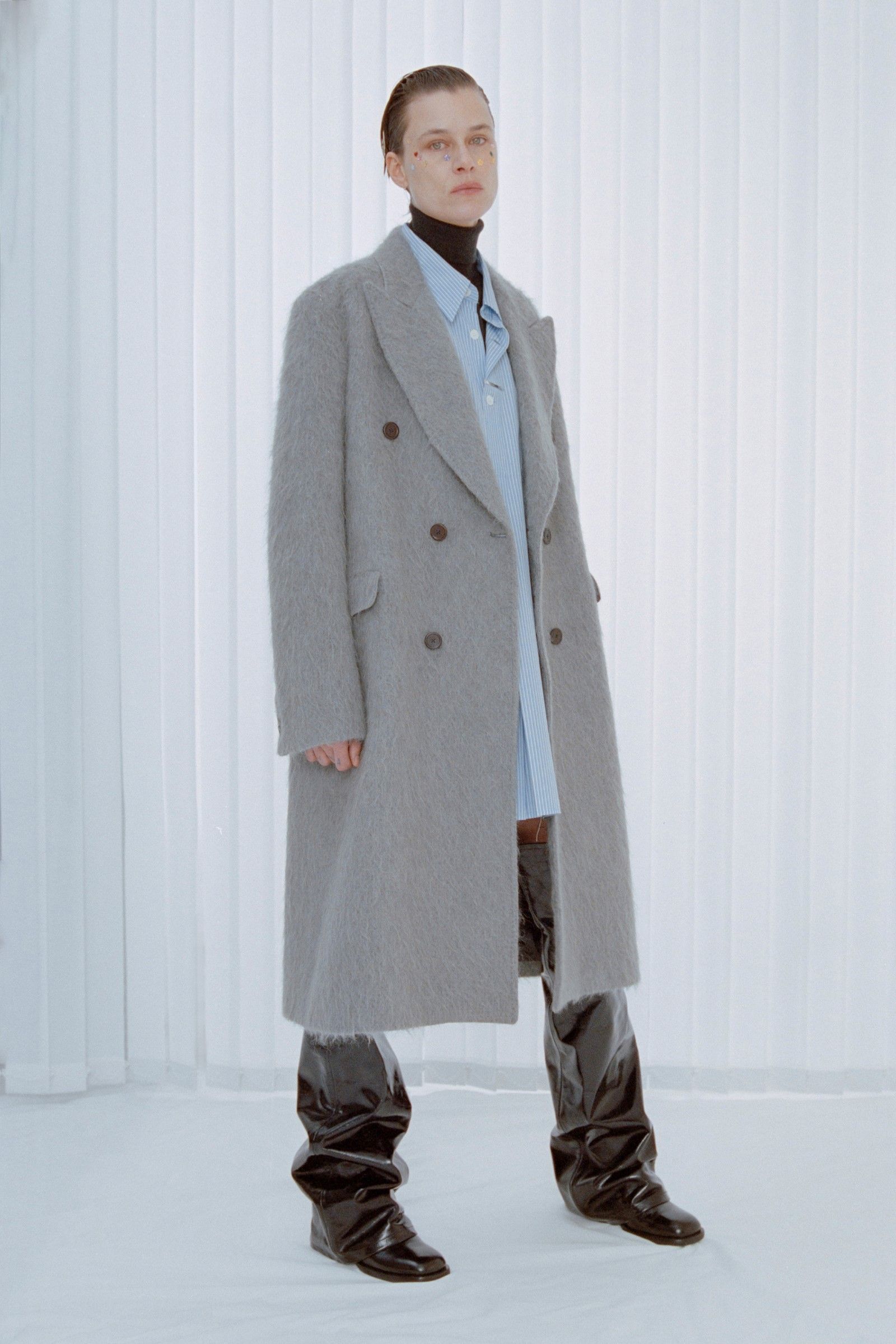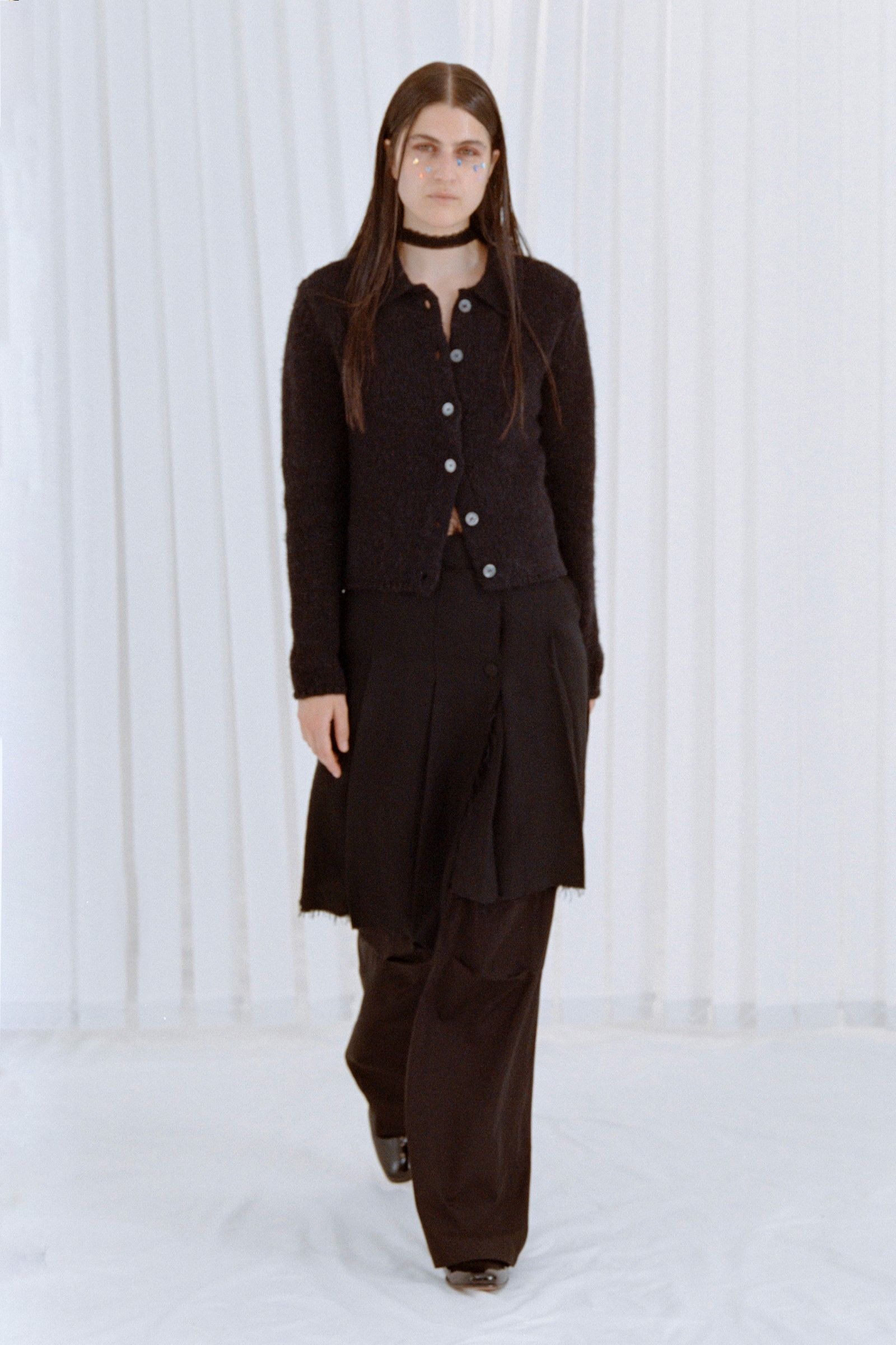 La collezione in sé porta avanti il discorso già avviato da anni dal brand, portando nella sua filosofia di basics dalle sfumature anarchiche una nuova impronta di essenzialità e decostruzione. Consistenze dei materiali, drappeggi ed elementi idiosincratici come stivali in vinile e tessuti piumosi ravvivano capi la cui classicità è messa in discussione da dettagli tecnici e proporzioni esagerate. Delicatezza che nasconde aggressività, dunque, ma anche un senso di ribelle insouciance che capovolge con freschezza i classici codici del vestire.