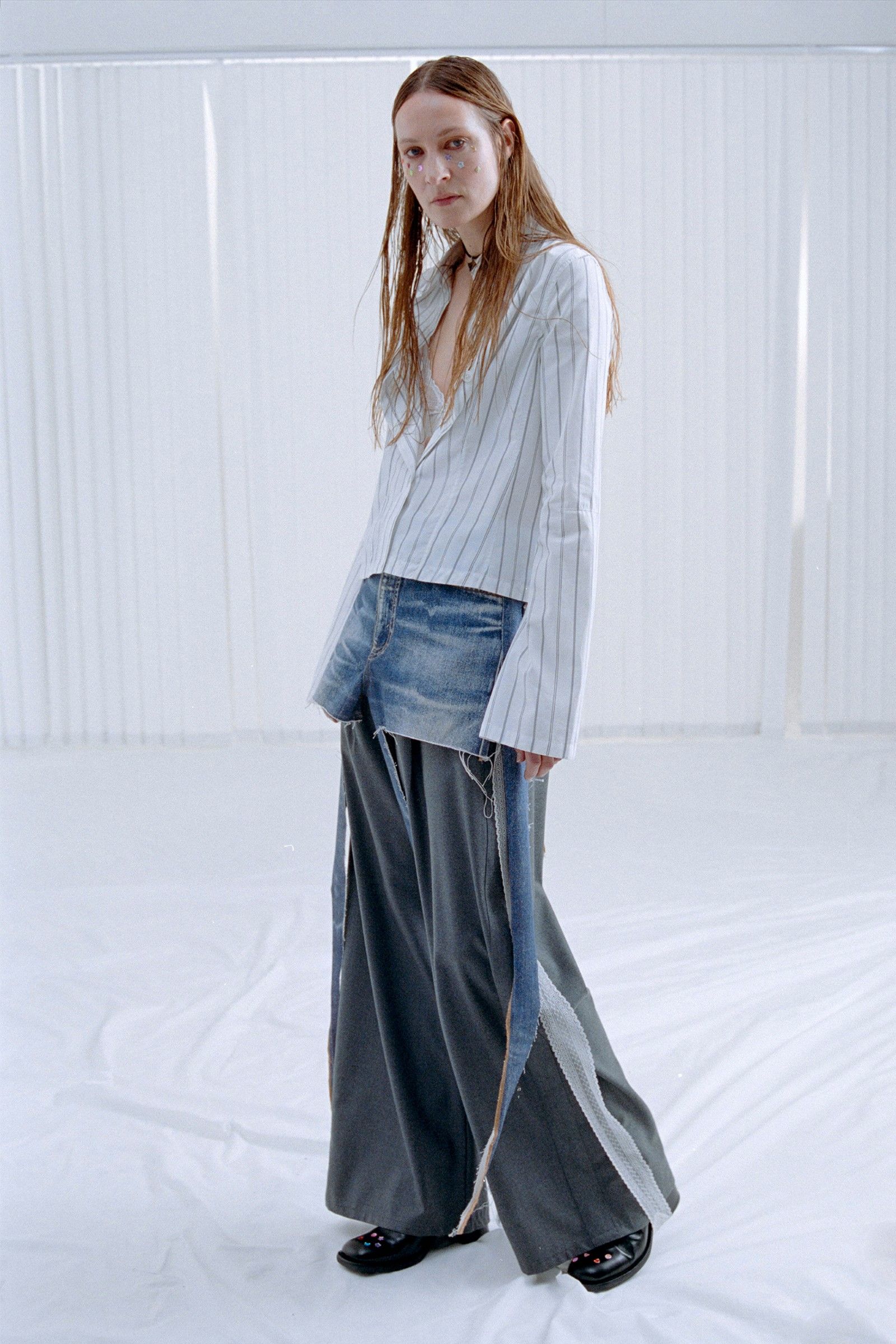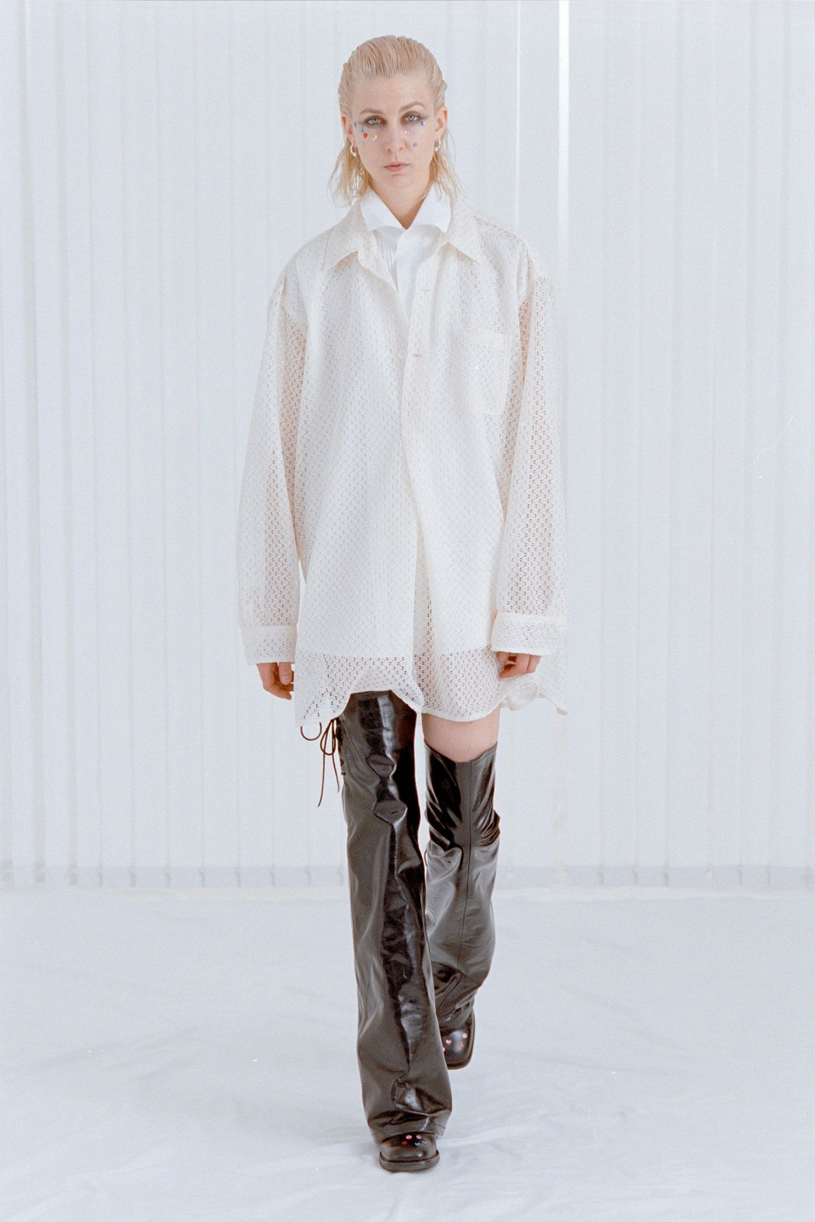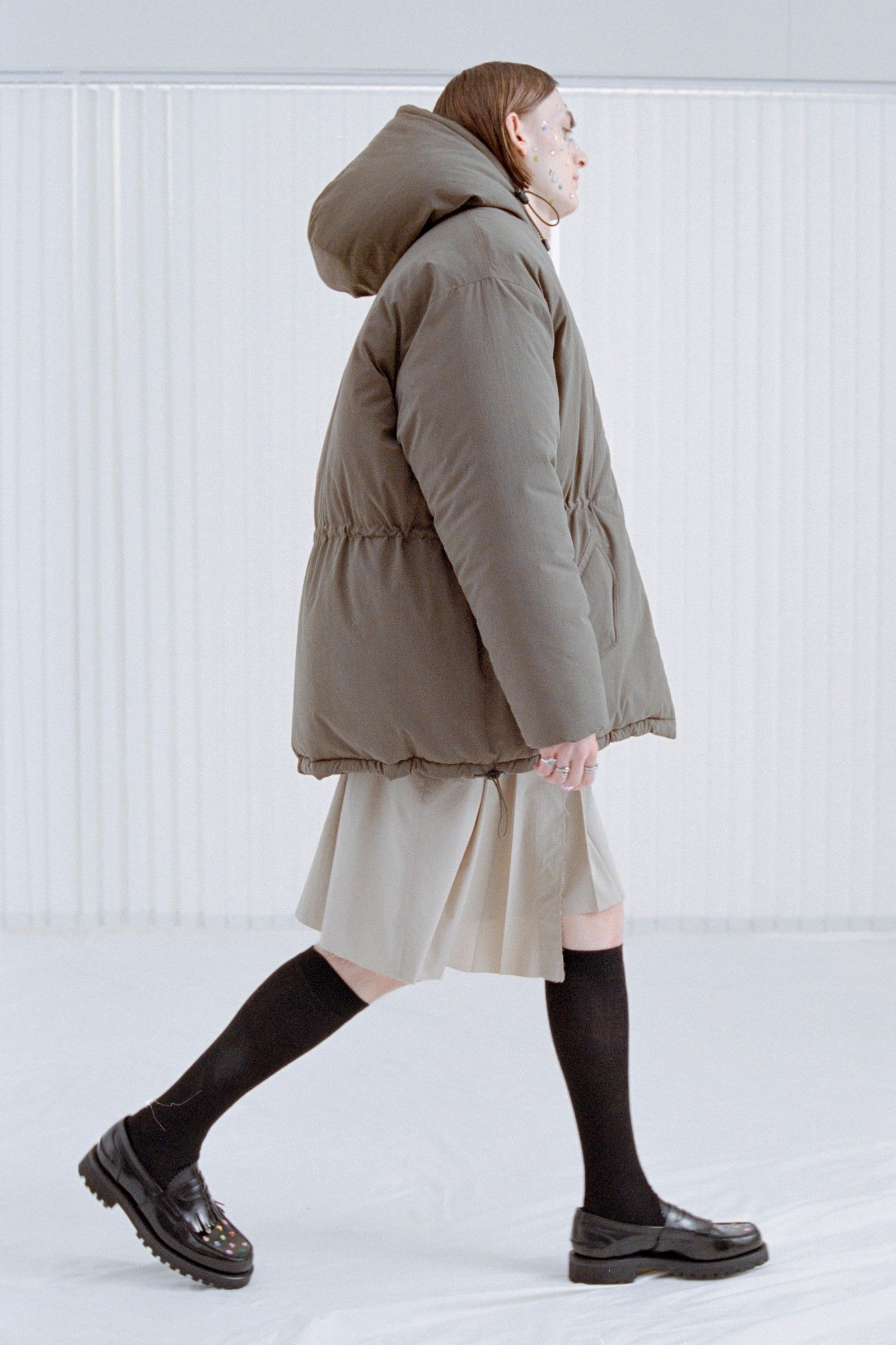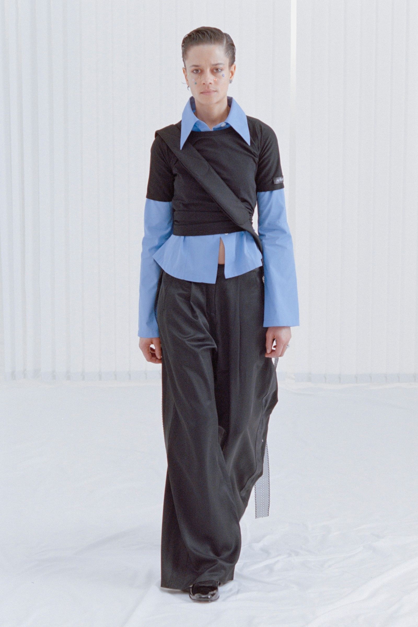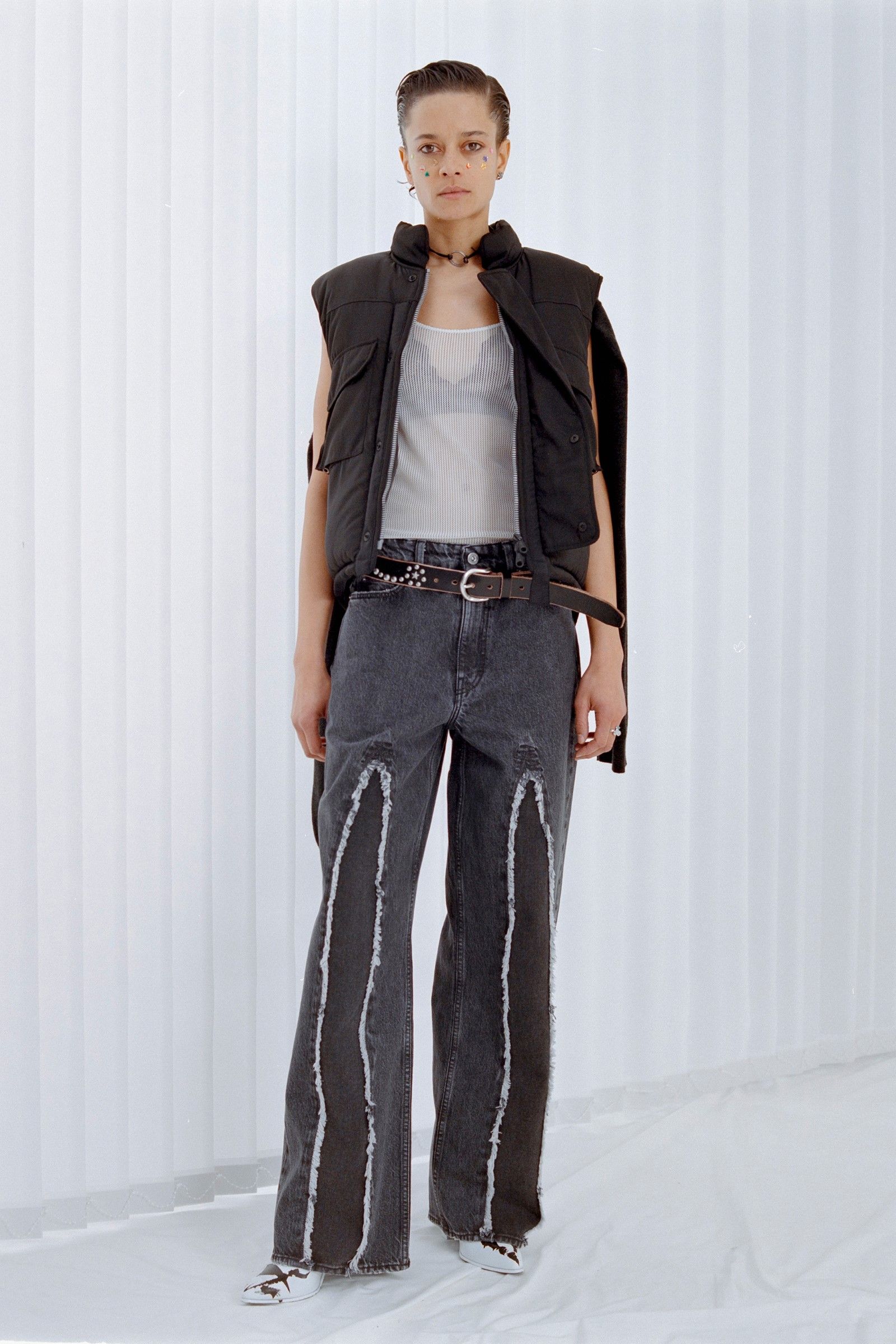 La collezione in sé porta avanti il discorso già avviato da anni dal brand, portando nella sua filosofia di basics dalle sfumature anarchiche una nuova impronta di essenzialità e decostruzione. Consistenze dei materiali, drappeggi ed elementi idiosincratici come stivali in vinile e tessuti piumosi ravvivano capi la cui classicità è messa in discussione da dettagli tecnici e proporzioni esagerate. Delicatezza che nasconde aggressività, dunque, ma anche un senso di ribelle insouciance che capovolge con freschezza i classici codici del vestire.